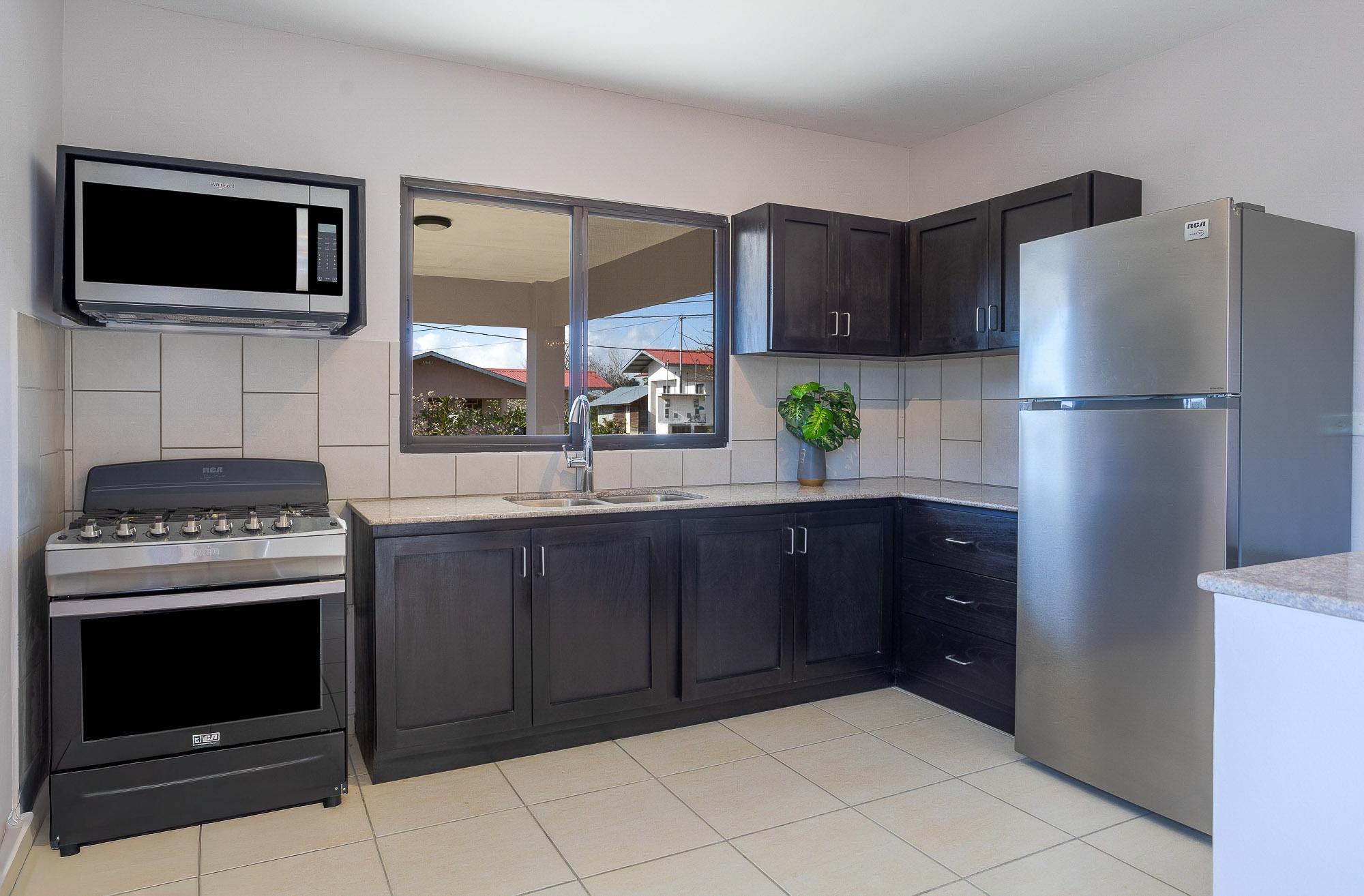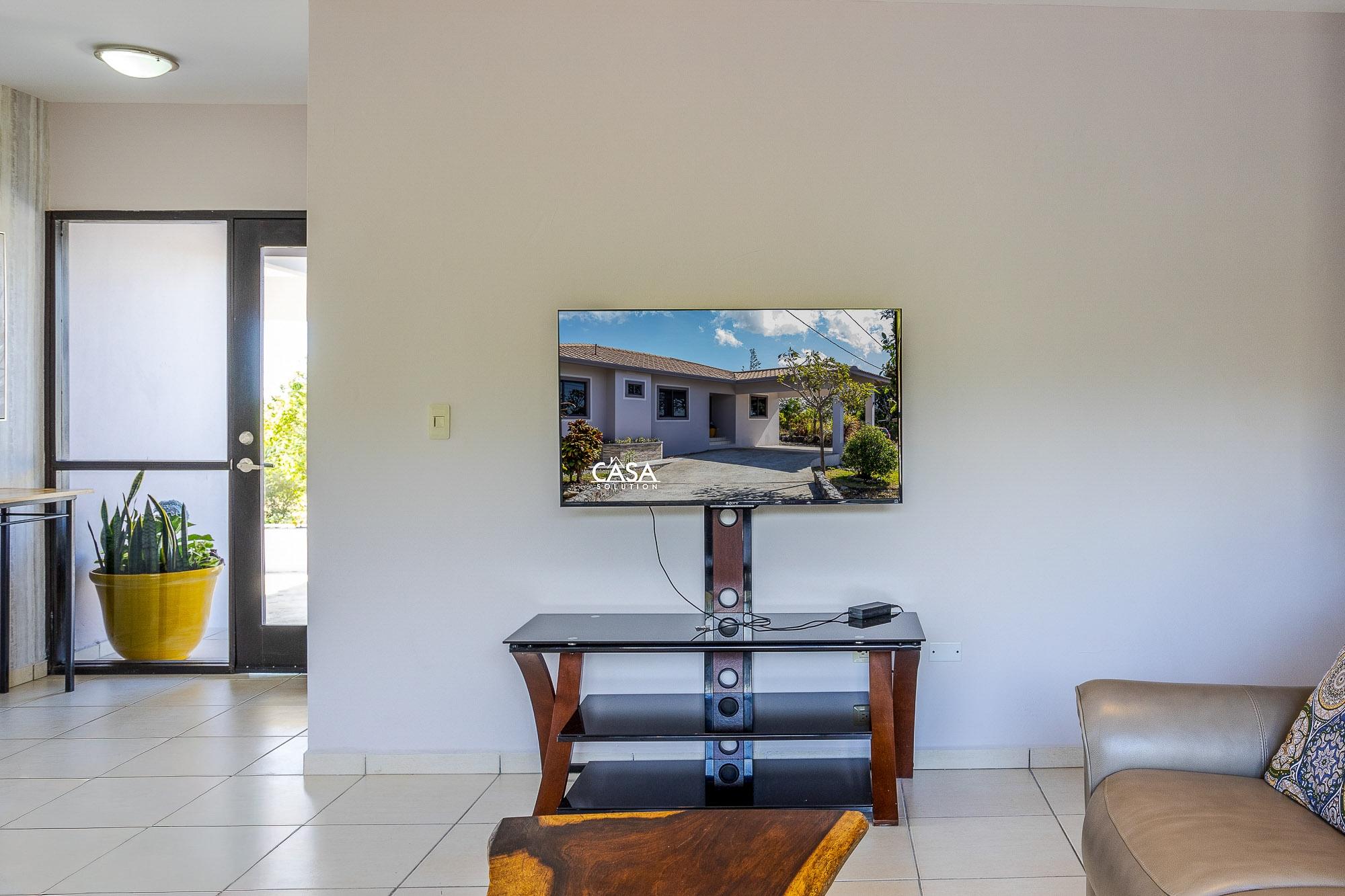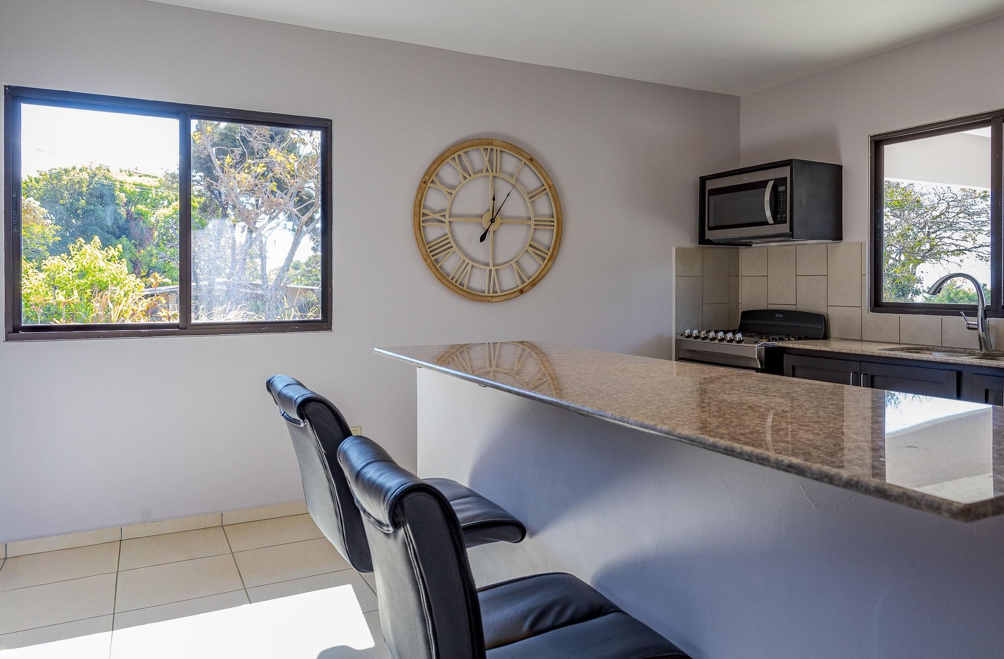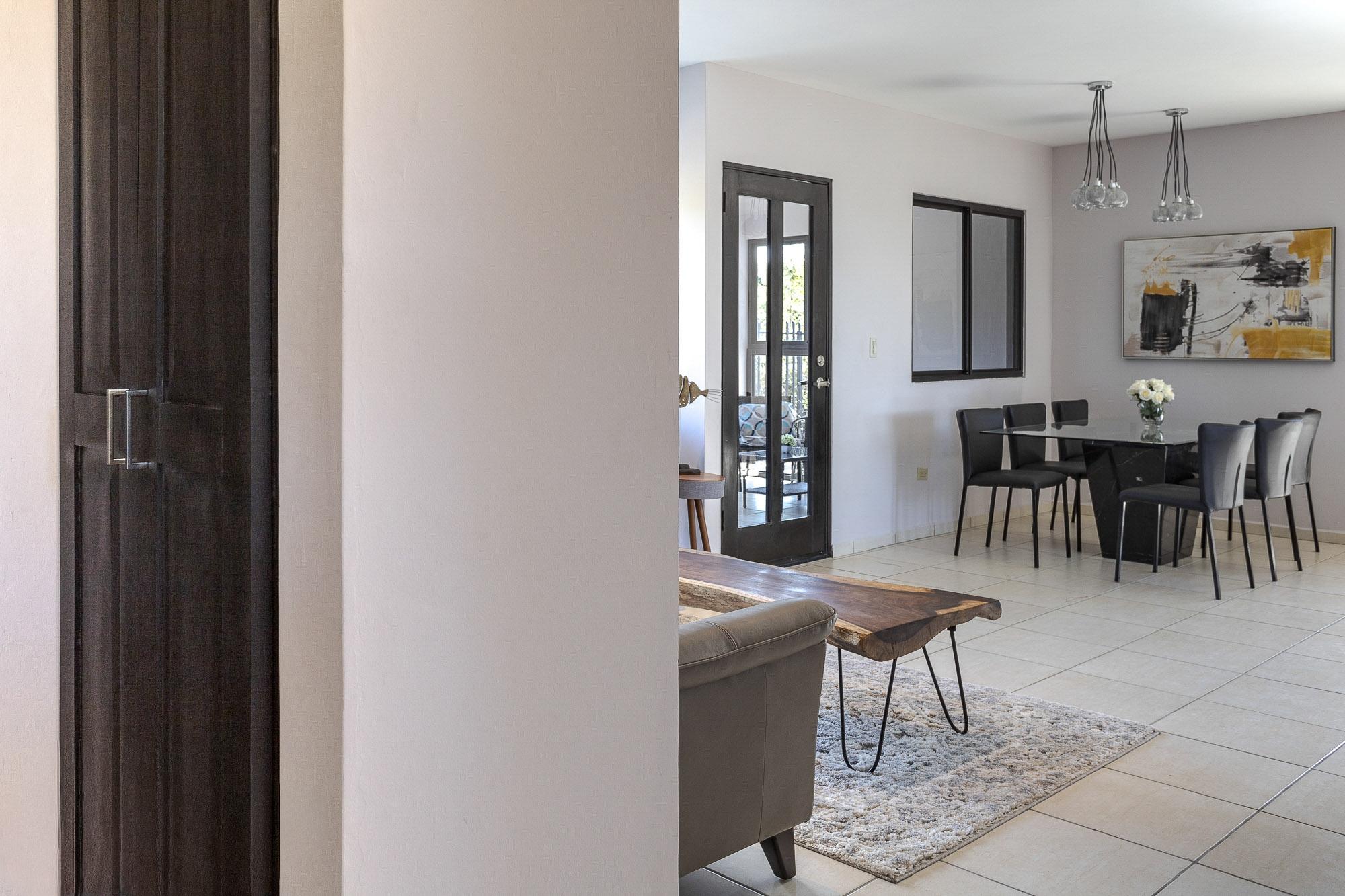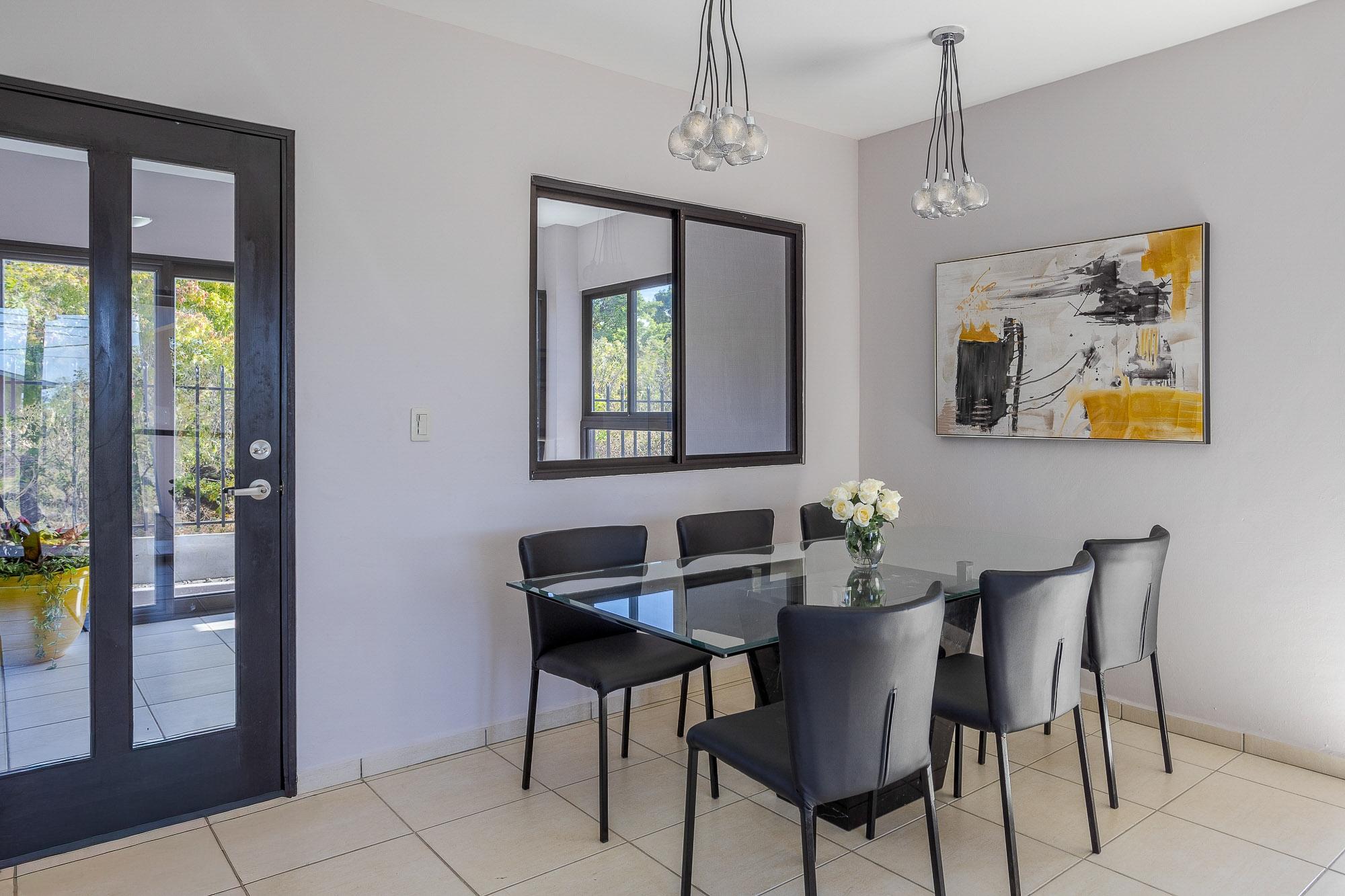 This stunning house for sale is located in the heart of Alto Boquete, Boquete, Chiriqui. The house offers the perfect combination of serenity and comfort. As you approach the house, you will be greeted by a paved driveway and the tranquil sounds of a babbling stream. The flat lot provides ample space for outdoor activities, gardening, and relaxation, while the small, quiet street well off the highway ensures privacy and a peaceful atmosphere. Once inside, you will be greeted by a warm and inviting interior, featuring large windows and the sliding glass doors leading to two beautiful patios. The natural light that floods the rooms creates a bright and airy atmosphere that is perfect for entertaining guests or simply relaxing with family. The 144.25 square meters of construction offer a comfortable and functional living space that is both elegant and practical. The open-plan living and dining area provides the perfect space for entertaining.