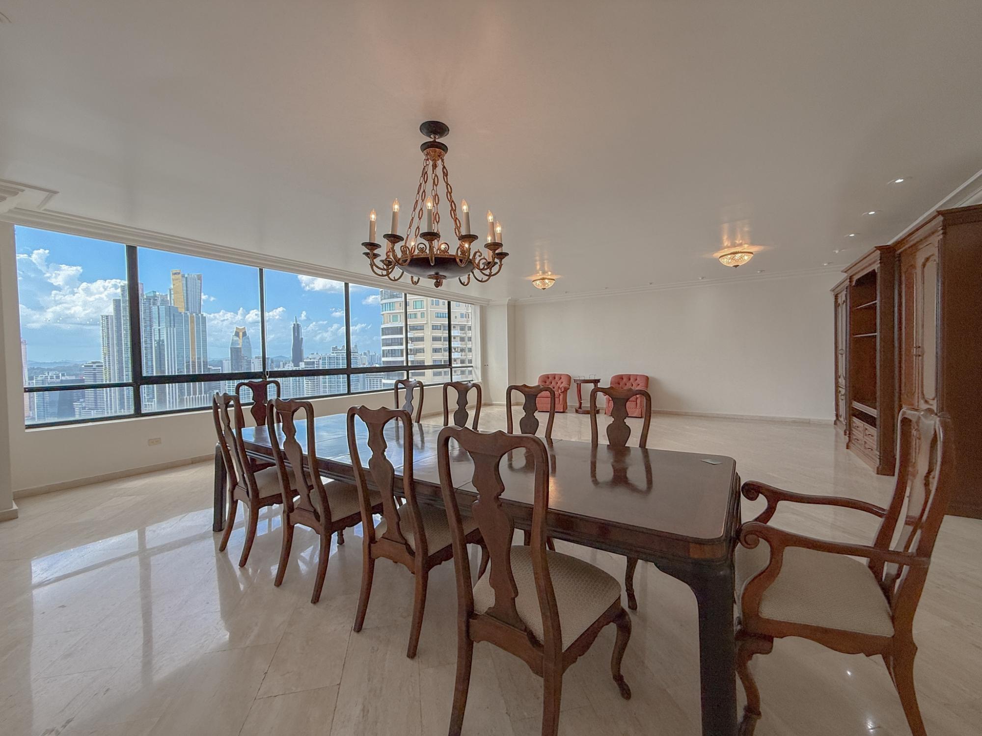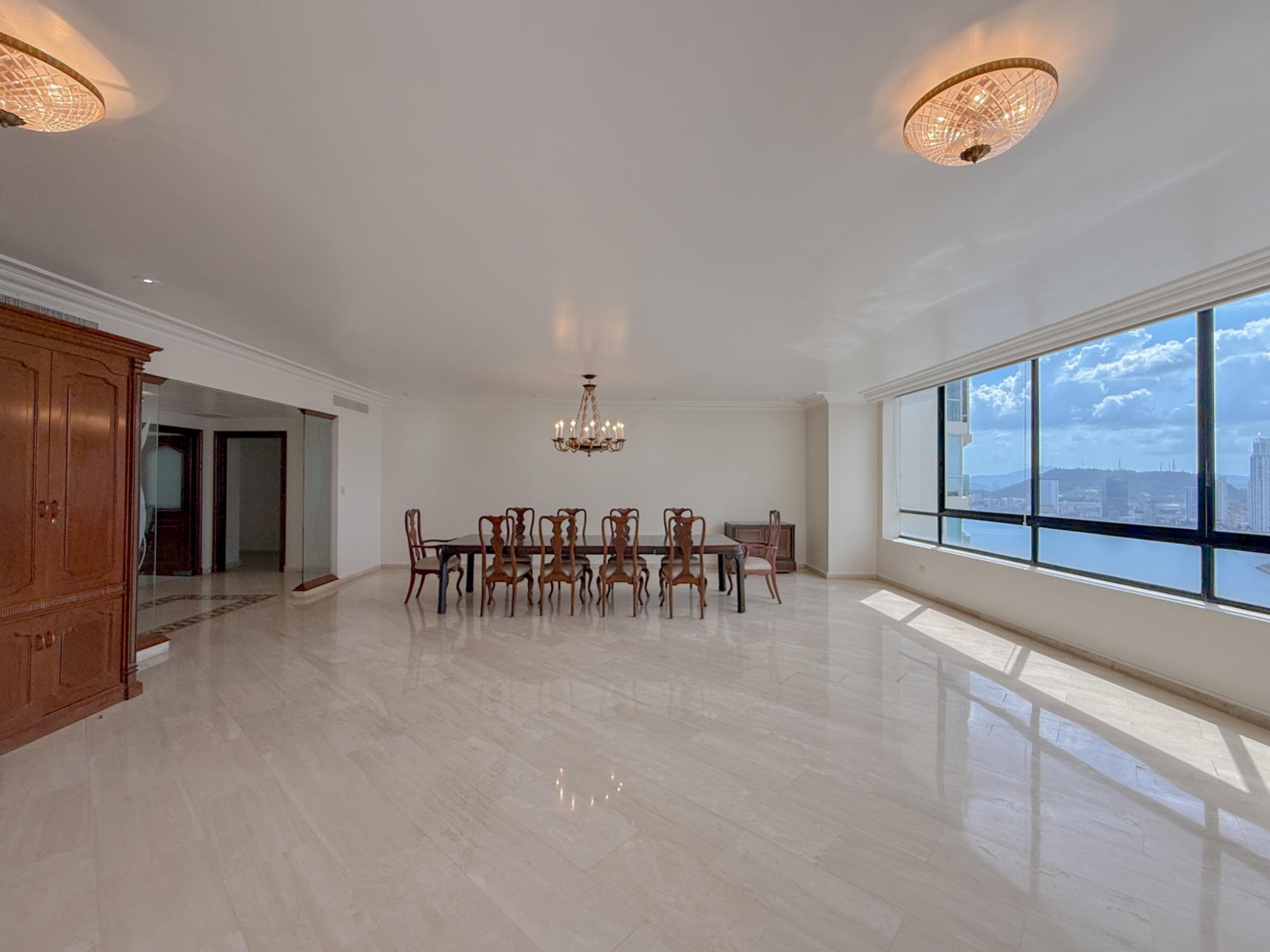 Luxury apartment for sale in the exclusive PH Villa Marina located in Punta Paitilla. This apartment has 337.94 m2 distributed in a spacious living-dining room with ocean views, a family den, a guest bathroom, 3 bedrooms with walk-in closets and private bathrooms, a kitchen with a breakfast area, a large laundry room, a service bathroom and 2 parking spaces. The building offers a luxurious double-height lobby, 2 high-speed main elevators and 1 service elevator. In addition, it has a completely remodeled social area that includes a swimming pool for children and adults, an event room, a full gym, a squash court, a basketball court, an aerobics room and a sauna. A unique opportunity in one of the best areas of Panama.