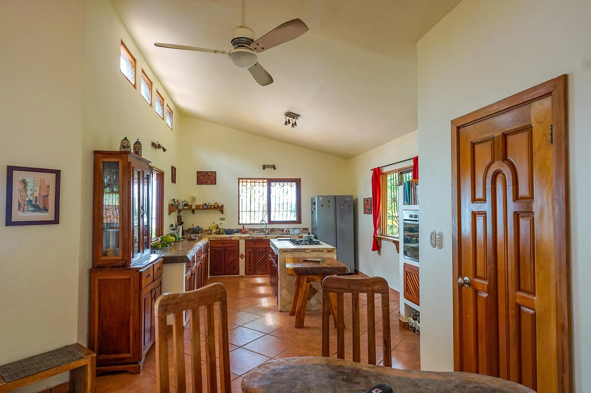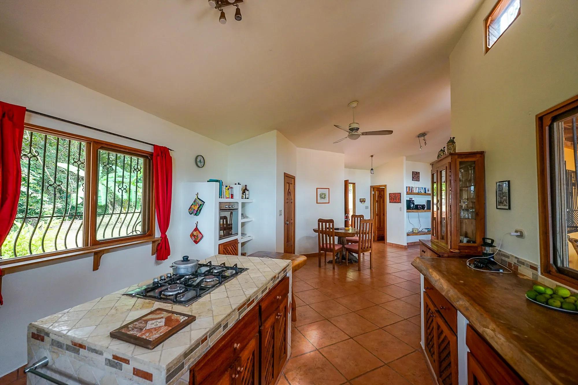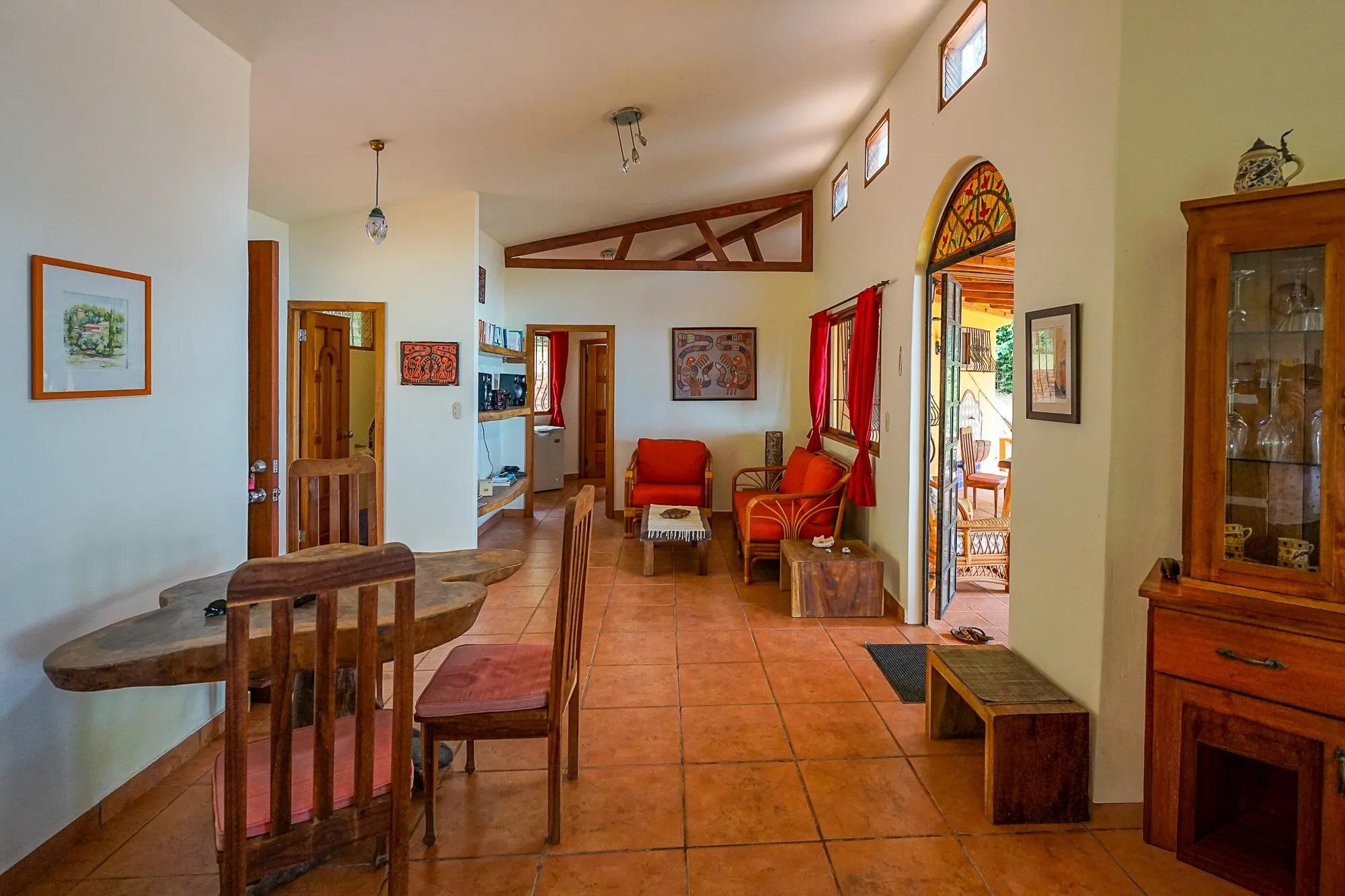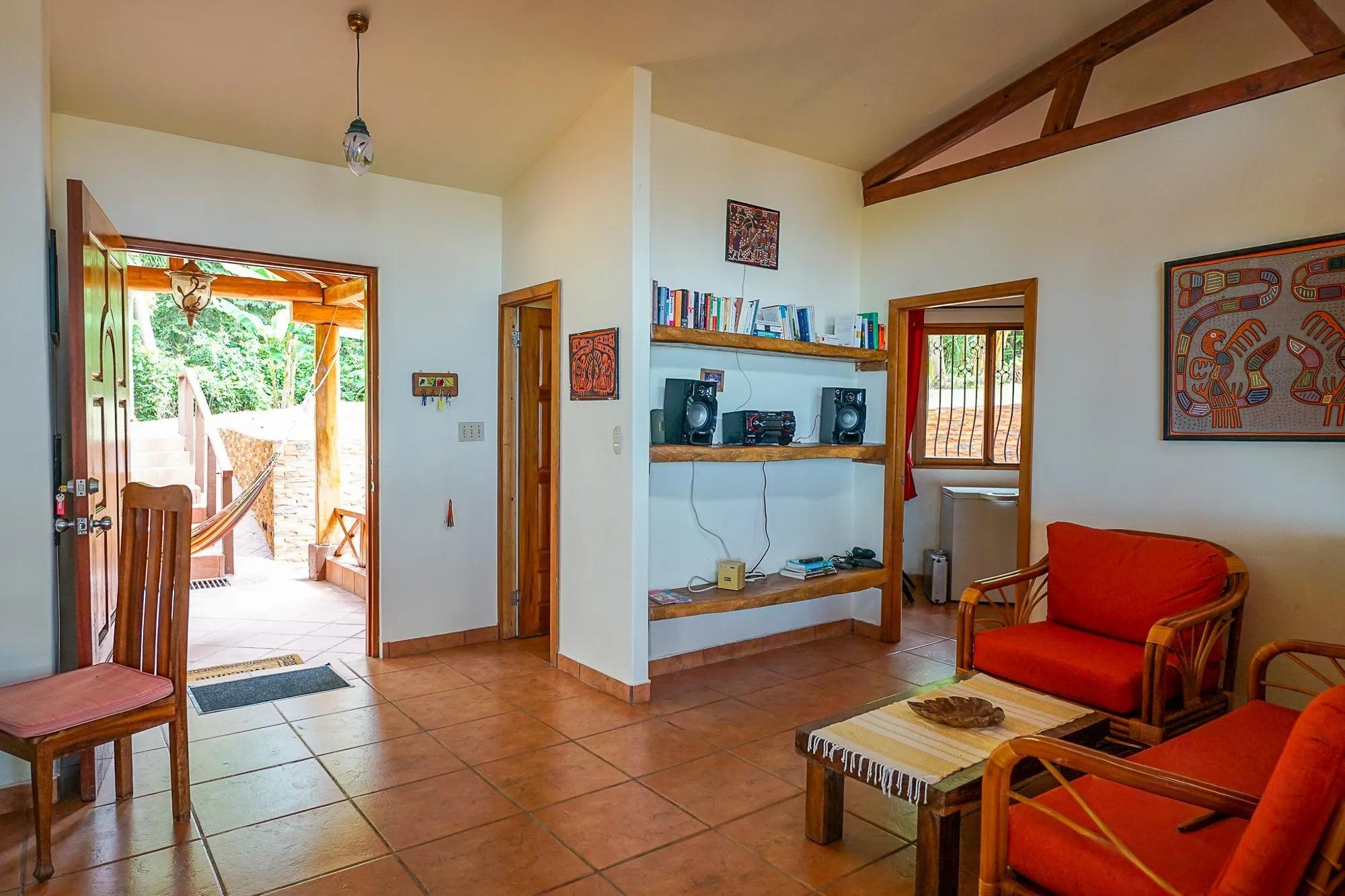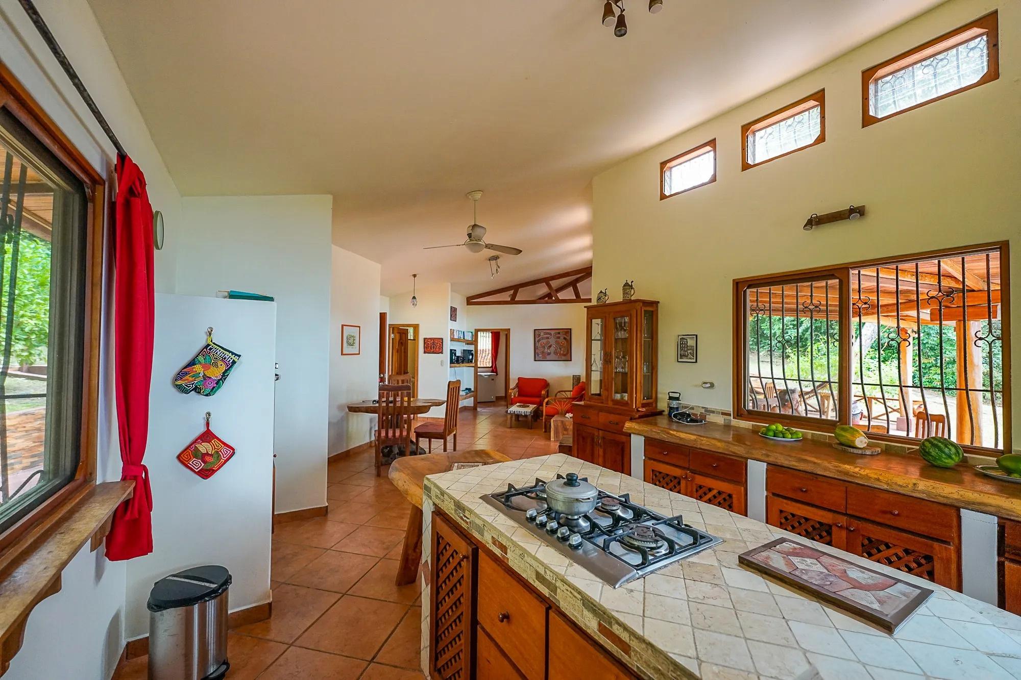 This beachfront property in Punta Vittoria, Boca Chica, Chiriquí, offers 4.94 acres (19,501 m²) of land with over 772 feet (235 meters) of beach frontage. The property is located on a bluff, providing stunning ocean views. It features two casitas, one designed in a traditional "hacienda" style. Upon entering, you'll find a spacious living, dining, and kitchen area, with a central island in the kitchen. One of the casitas has an expansive terrace where you can enjoy the beautiful beach view. The property connects to grid electricity and offers road access to a barge for vehicle transport. Occupancy is available starting in March 2025, with the possibility to secure the property with a deposit and intermediary payments.