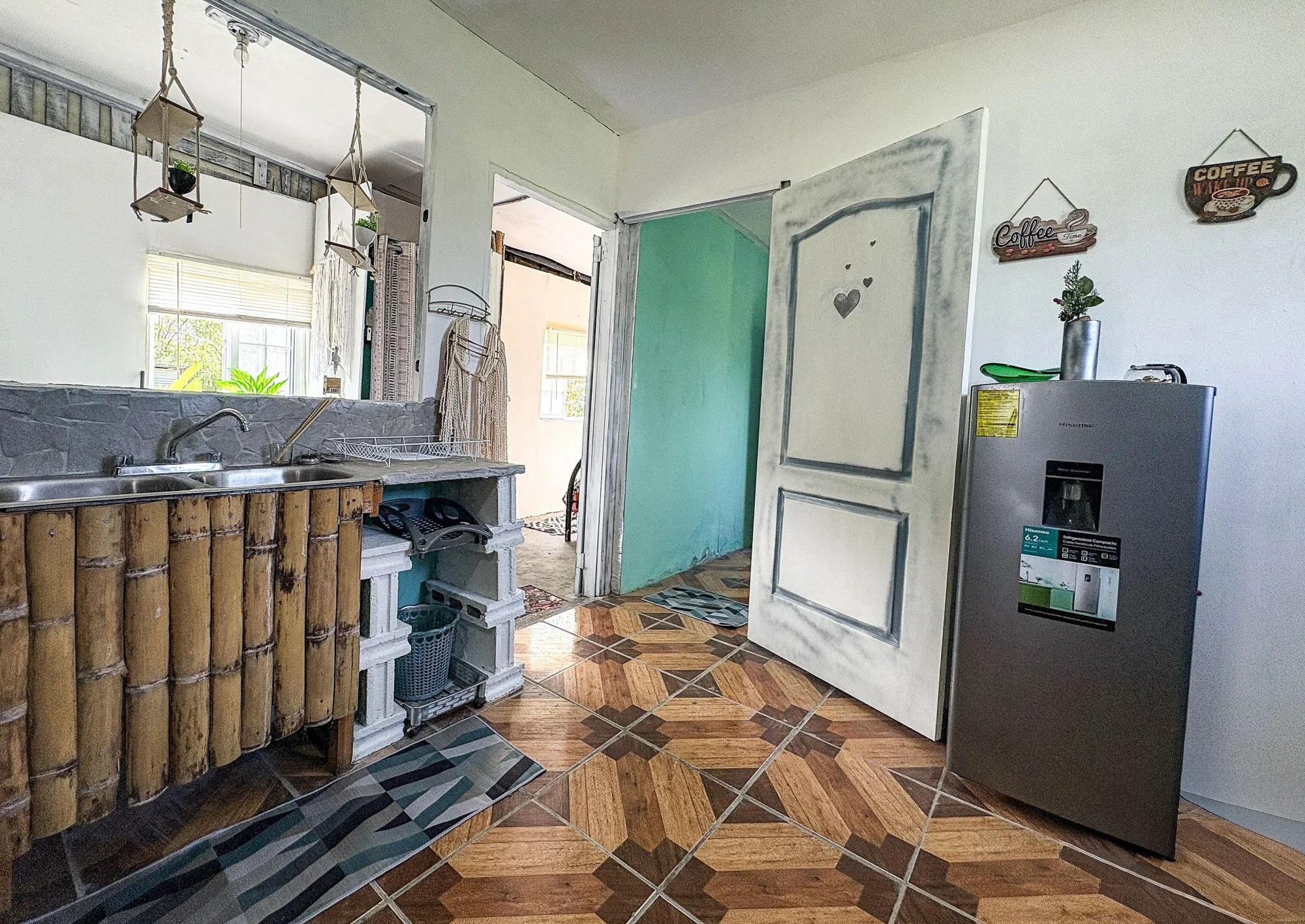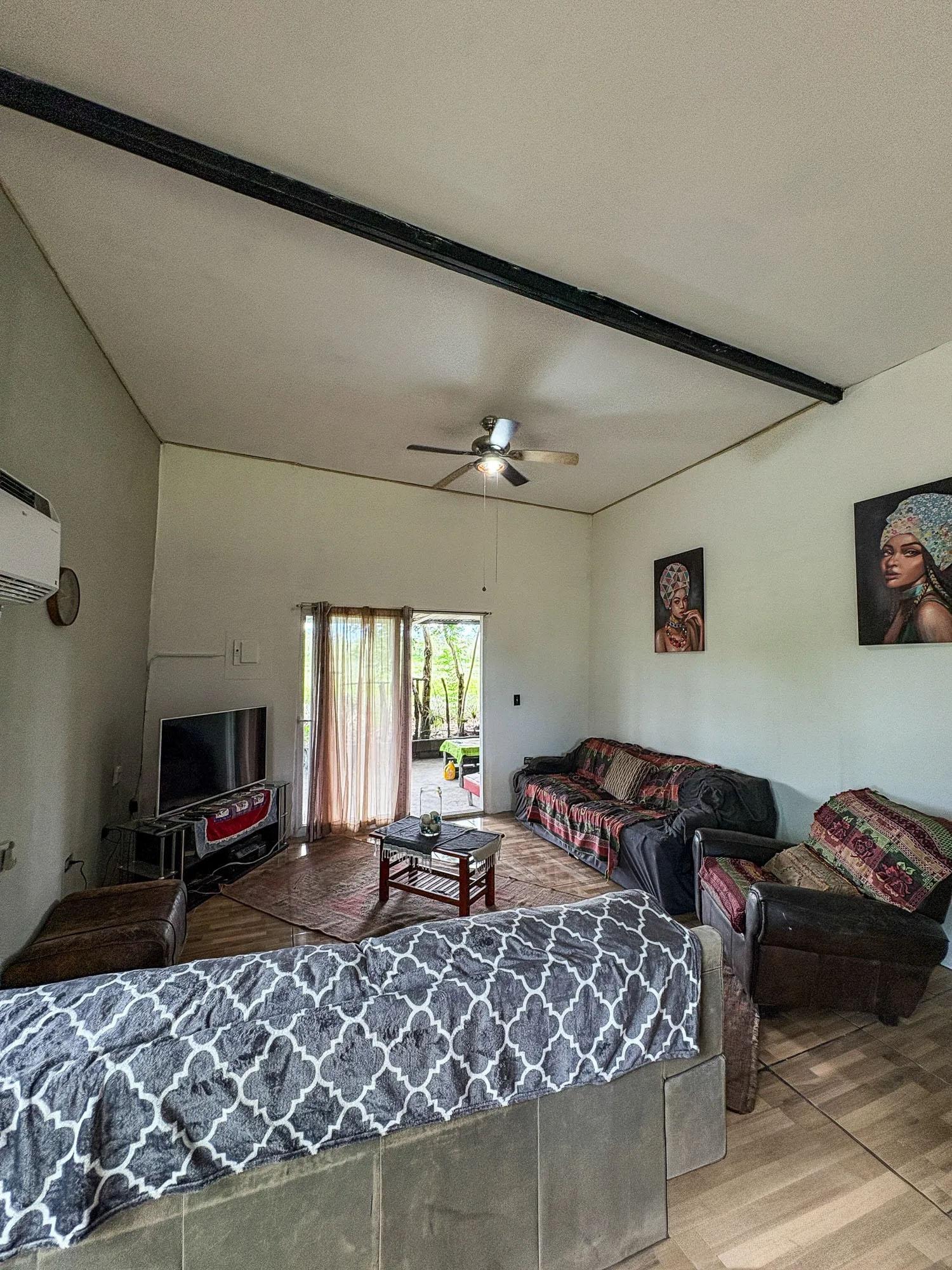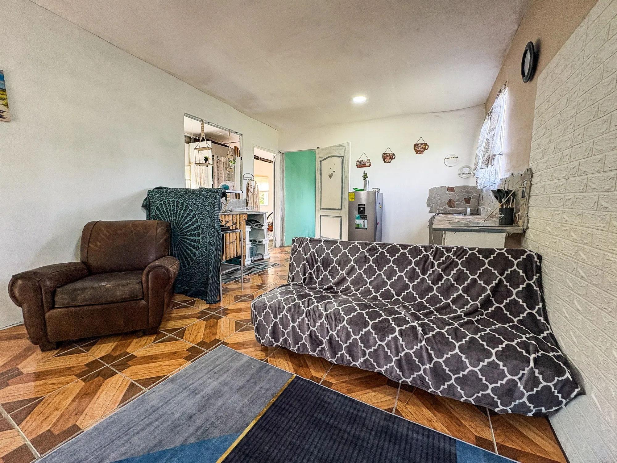 Esta propiedad de 2,000 m² ubicada en Dolega, Cochea, cuenta con un terreno plano y utilizable con dos estructuras existentes: una casa principal de 99 m² con cuatro dormitorios y dos baños, y una casa más pequeña de 52 m². El terreno es una de las principales fortalezas de la propiedad, ofreciendo flexibilidad para futuras mejoras o expansiones. Las estructuras existentes se beneficiarían de una renovación, lo que abre diferentes posibilidades para un futuro propietario. Una opción sería expandir la casa más grande para que sirva como residencia principal mientras se mantiene la casa más pequeña como casa de huéspedes. Otra posibilidad sería mantener ambas estructuras como alojamiento para huéspedes y construir una nueva residencia principal en la propiedad. Estos son solo ejemplos de cómo se podría utilizar el espacio. La propiedad ya cuenta con la infraestructura esencial, que incluye conexiones de agua y electricidad, un pozo de agua privado, un tanque de agua de respaldo y dos sistemas sépticos. Árboles frutales como plátano, papaya, lichi y piña ya están plantados en el terreno. Un pintoresco río ubicado a unos cinco minutos ofrece un lugar cercano para pescar, nadar o hacer senderismo, y el jardín y la terraza ofrecen vistas al Volcán Barú.
