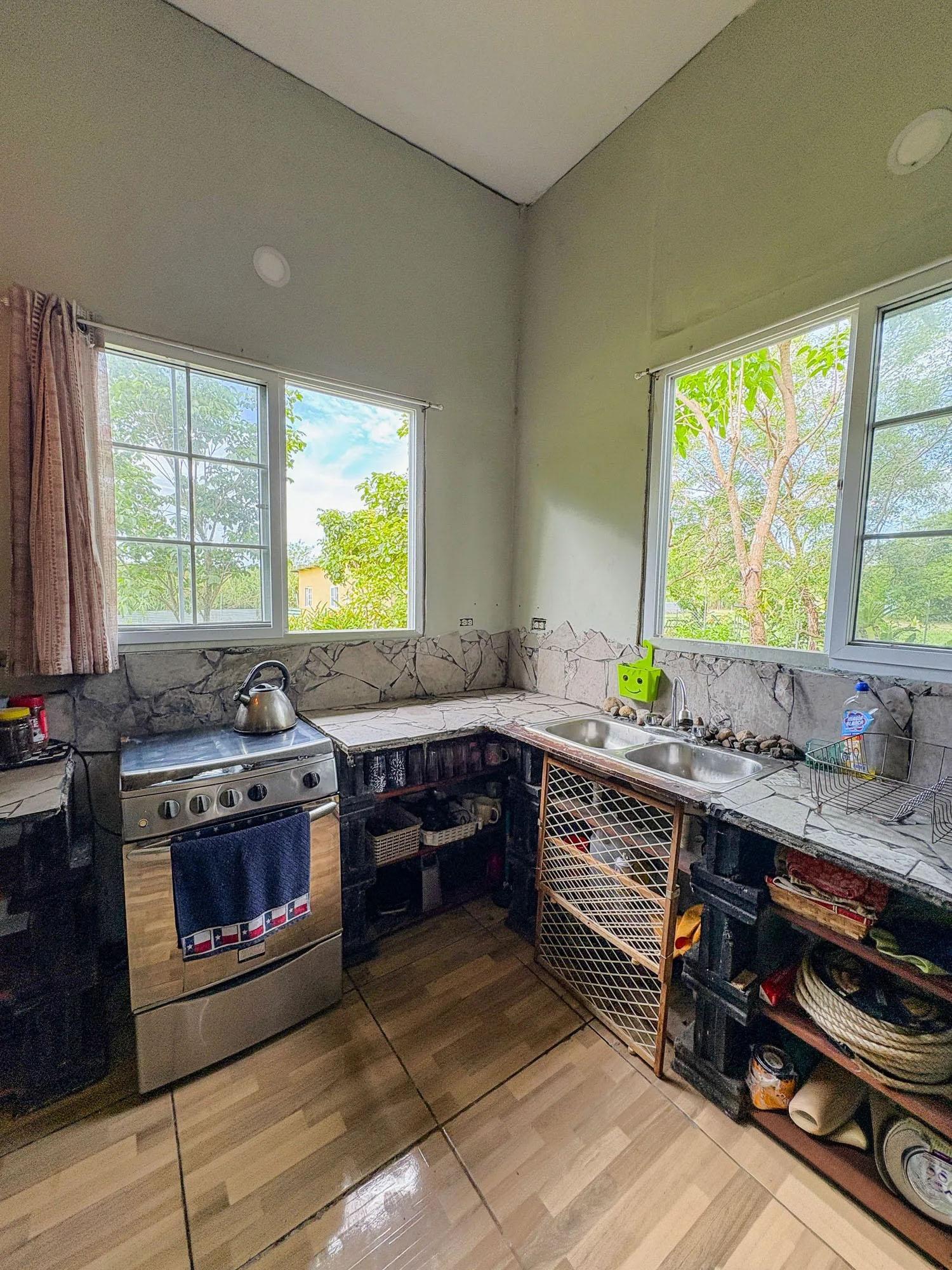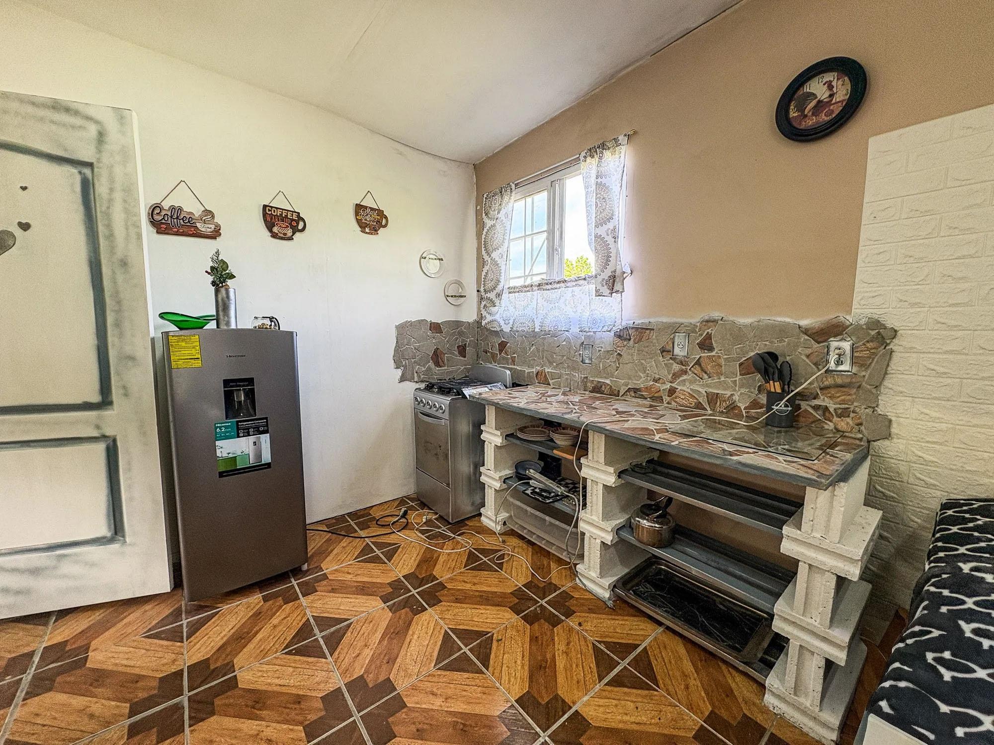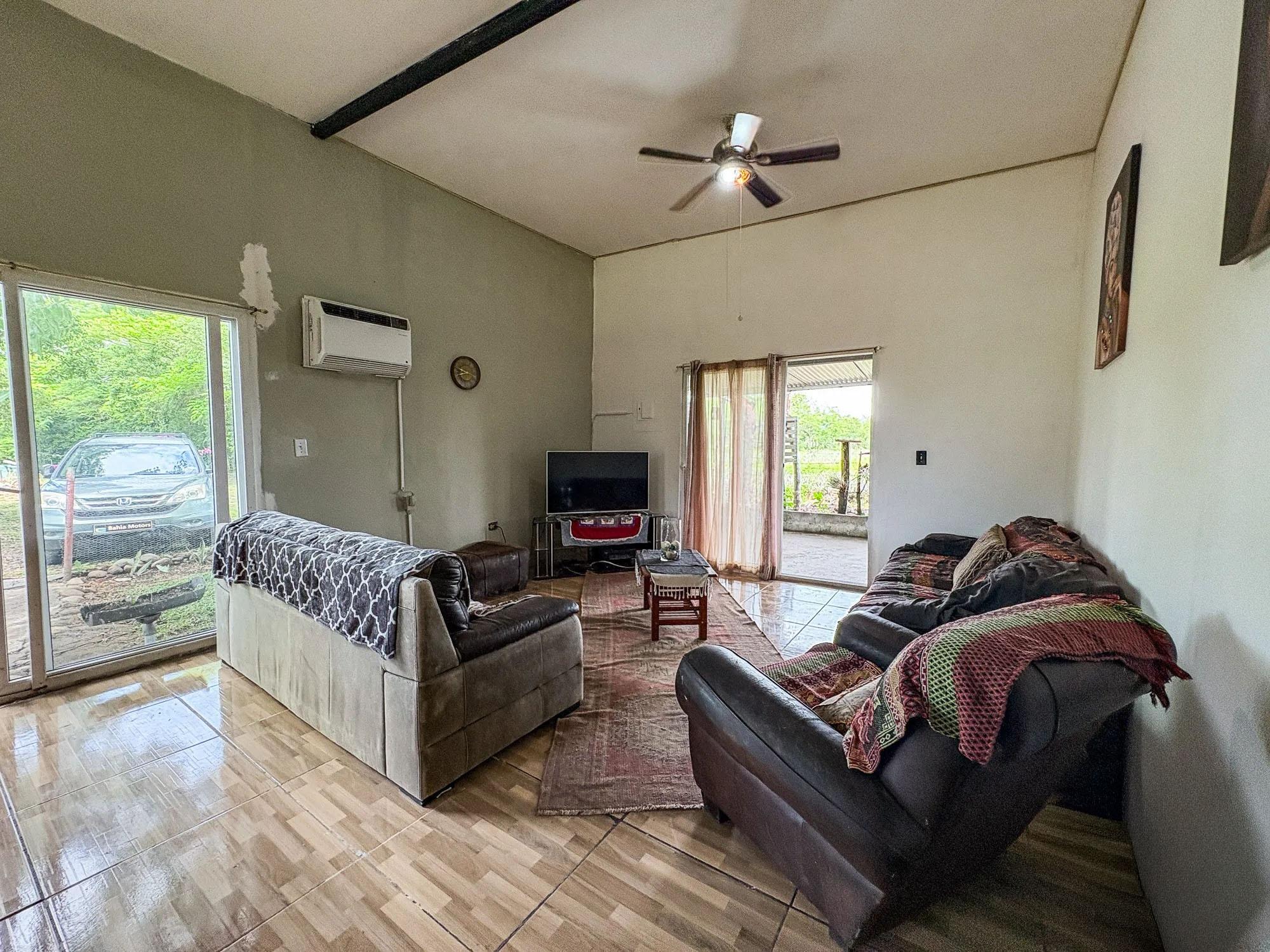 Esta propiedad de 2,000 m² ubicada en Dolega, Cochea, cuenta con un terreno plano y utilizable con dos estructuras existentes: una casa principal de 99 m² con cuatro dormitorios y dos baños, y una casa más pequeña de 52 m². El terreno es una de las principales fortalezas de la propiedad, ofreciendo flexibilidad para futuras mejoras o expansiones. Las estructuras existentes se beneficiarían de una renovación, lo que abre diferentes posibilidades para un futuro propietario. Una opción sería expandir la casa más grande para que sirva como residencia principal mientras se mantiene la casa más pequeña como casa de huéspedes. Otra posibilidad sería mantener ambas estructuras como alojamiento para huéspedes y construir una nueva residencia principal en la propiedad. Estos son solo ejemplos de cómo se podría utilizar el espacio. La propiedad ya cuenta con la infraestructura esencial, que incluye conexiones de agua y electricidad, un pozo de agua privado, un tanque de agua de respaldo y dos sistemas sépticos. Árboles frutales como plátano, papaya, lichi y piña ya están plantados en el terreno. Un pintoresco río ubicado a unos cinco minutos ofrece un lugar cercano para pescar, nadar o hacer senderismo, y el jardín y la terraza ofrecen vistas al Volcán Barú.