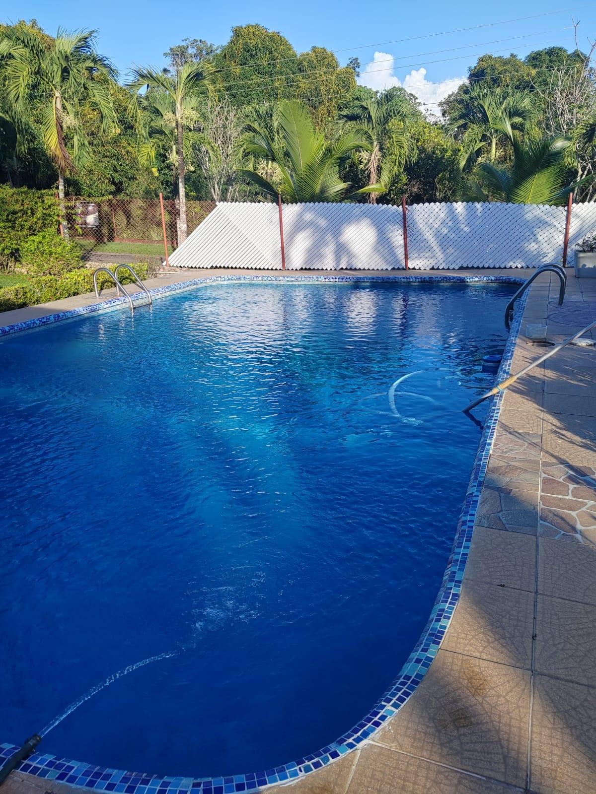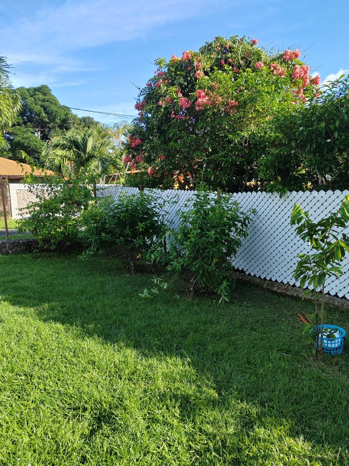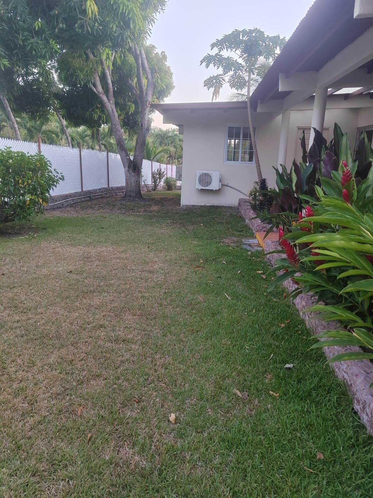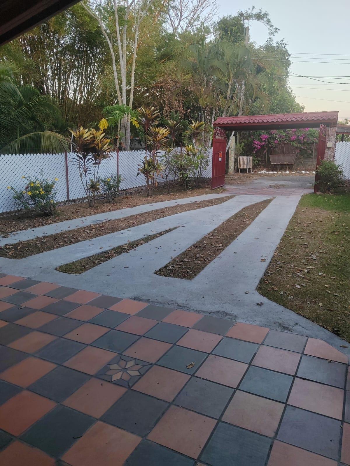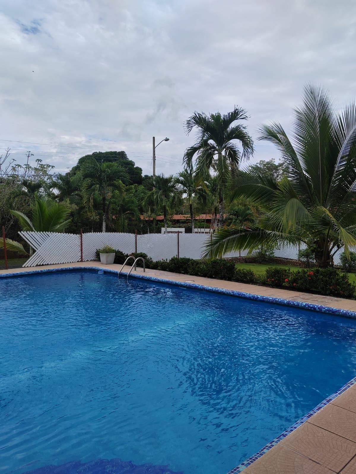300 sq m property with a pool and ample amenities. It features a terrace, a thatched gazebo, a storage room, a laundry room, and covered parking for 2-3 cars. The property is fully fenced, including an electric gate, an internal pet fence, and a water well. It has a 58.5 sq m pool, fruit trees, palm trees, and established gardens. The house offers 3 bedrooms with wooden closets and air conditioning, a kitchen with wooden cabinets, a living room, a dining room, and bathrooms with floor-to-ceiling ceramic tile. Located in Las Uvas, 3.9 km from beaches such as Playa Grande, Los Panamá, and Río Mar. The area has mini-markets, gas stations, pharmacies, clinics, restaurants, and schools nearby. Rent-to-own option: $1,500/month. Requirements: first month's rent, last month's rent, and two security deposits; proof of income. Sale with flexible payments: $250,000 with 10% annual interest on the outstanding balance.