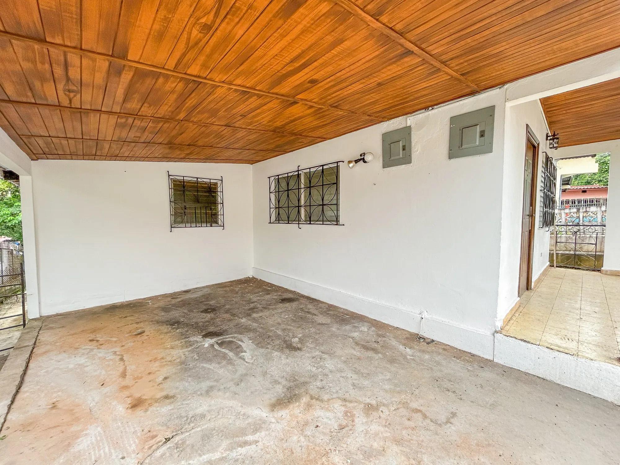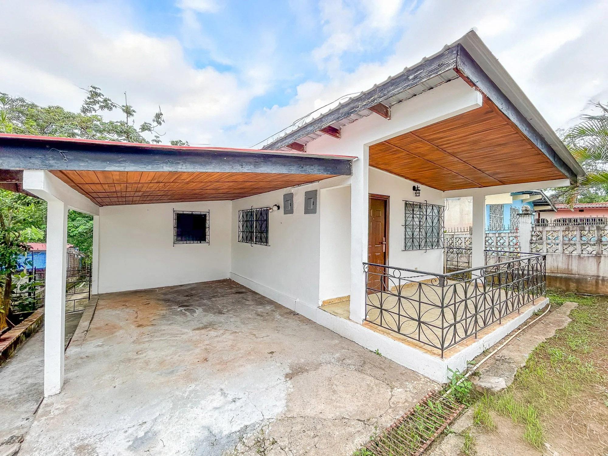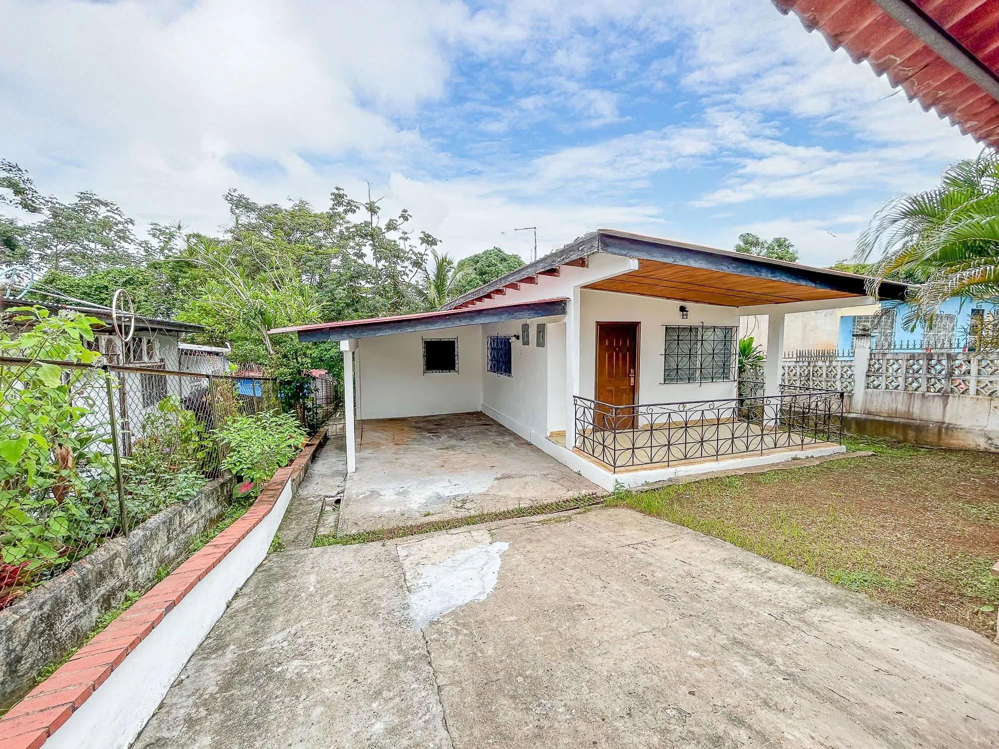 This 5-bedroom, 2-bathroom property is located on Calle 3 de Noviembre in La Chorrera, Panama West. The home sits on a sloped 322.84 square meter lot and offers 155.34 square meters of construction. It is available for both sale and rent, and pets are allowed under rental agreements. Layout and Features Upon entering the property, there is a covered parking area with direct access to the front portal. Inside, the main level features a connected living and dining room area. The kitchen has its own defined space and includes wood cabinetry and countertops. A small window with a breakfast bar connects the kitchen to the living area. The home also includes a covered laundry area. Both bathrooms include bathtubs, a practical choice for families with children.