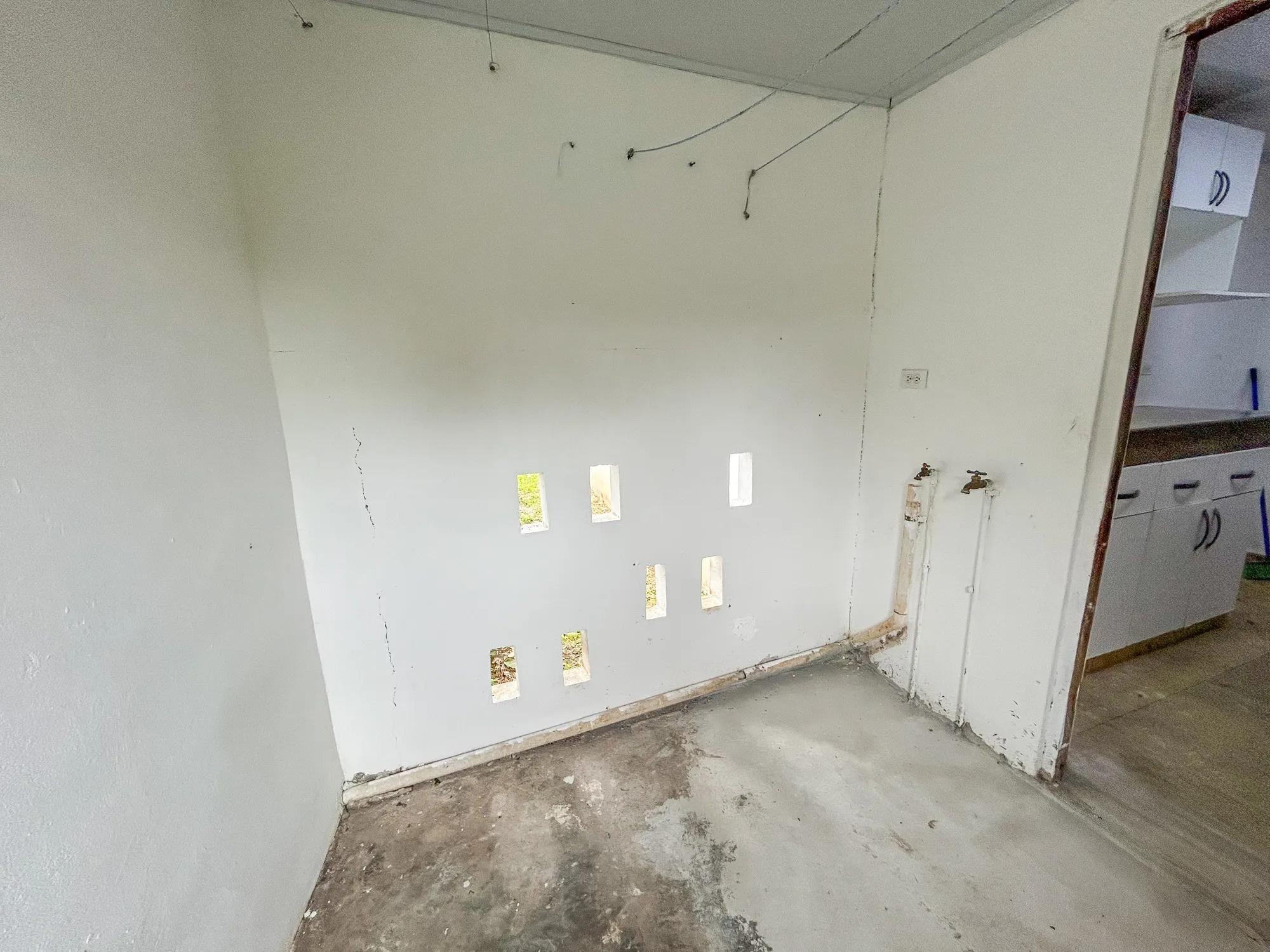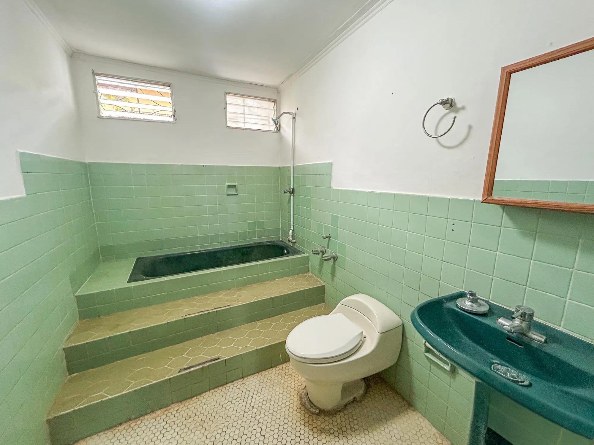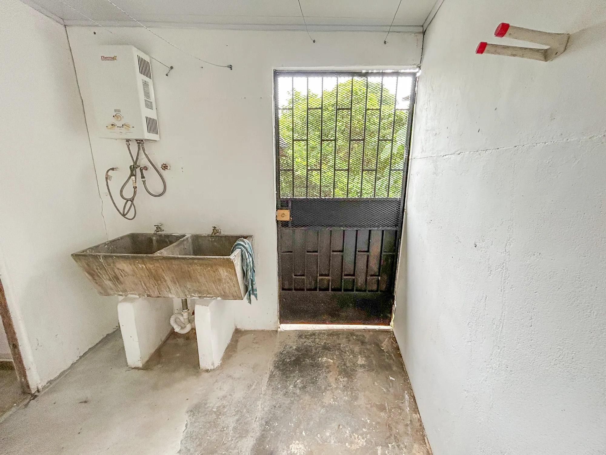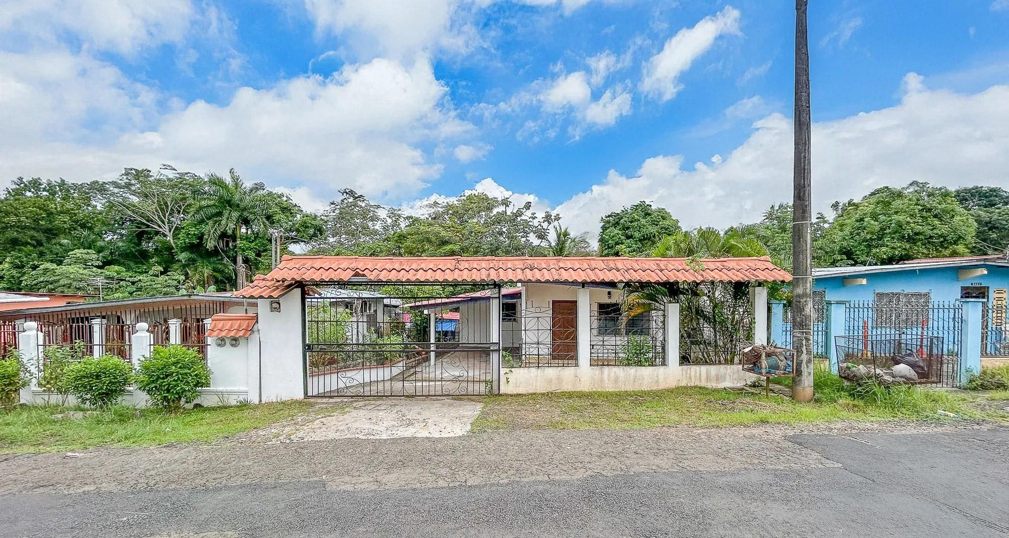 This 5-bedroom, 2-bathroom property is located on Calle 3 de Noviembre in La Chorrera, Panama West. The home sits on a sloped 322.84 square meter lot and offers 155.34 square meters of construction. It is available for both sale and rent, and pets are allowed under rental agreements. Layout and Features Upon entering the property, there is a covered parking area with direct access to the front portal. Inside, the main level features a connected living and dining room area. The kitchen has its own defined space and includes wood cabinetry and countertops. A small window with a breakfast bar connects the kitchen to the living area. The home also includes a covered laundry area. Both bathrooms include bathtubs, a practical choice for families with children.