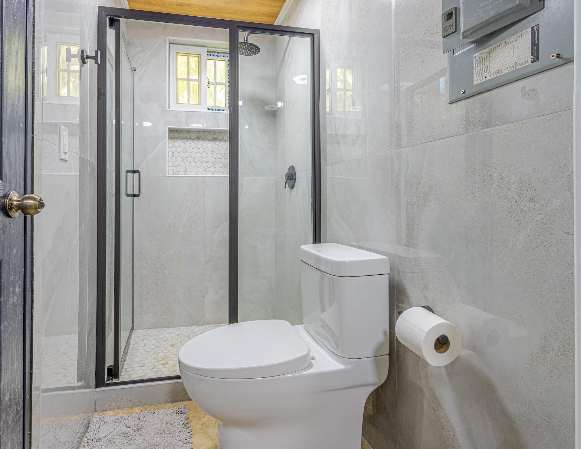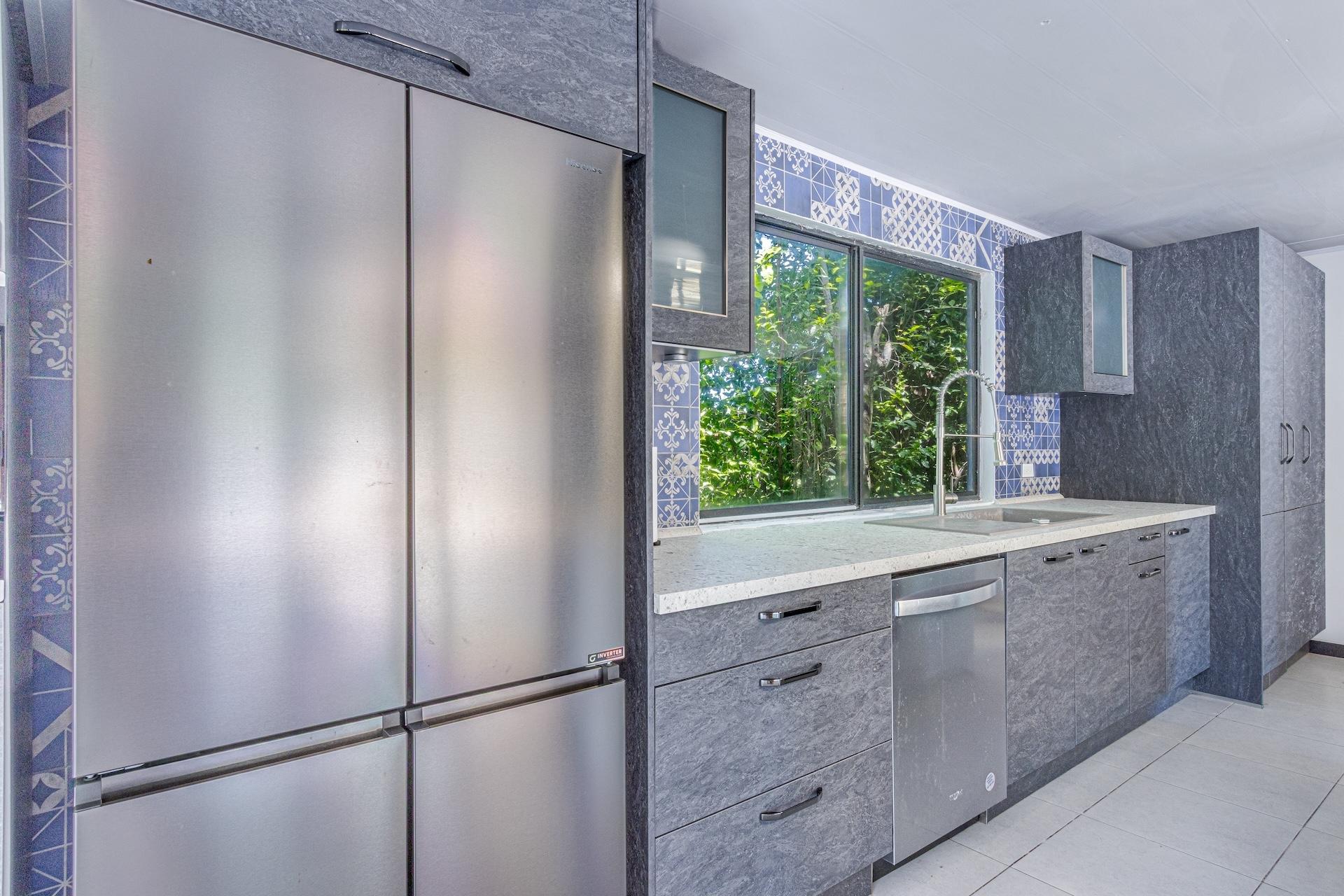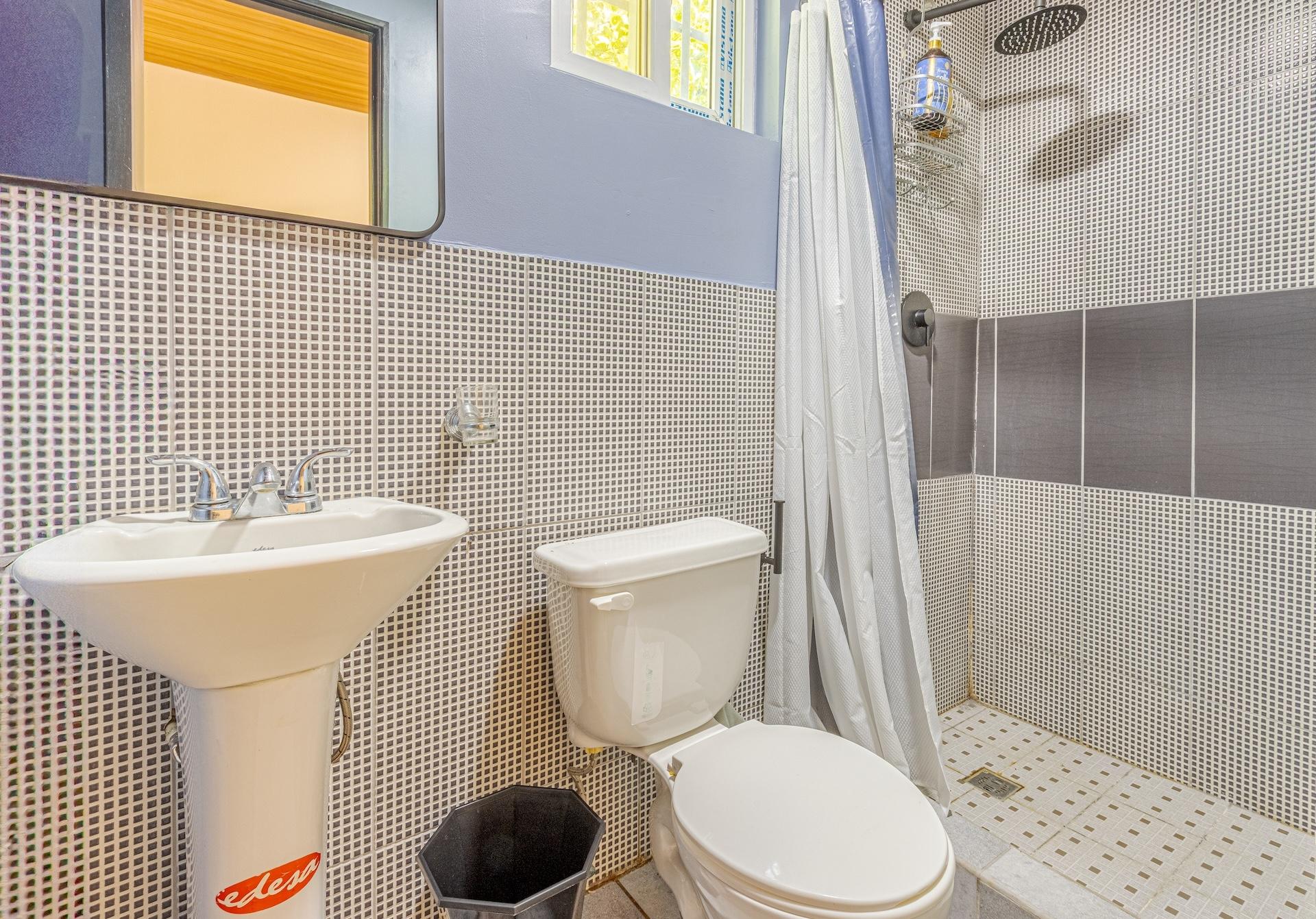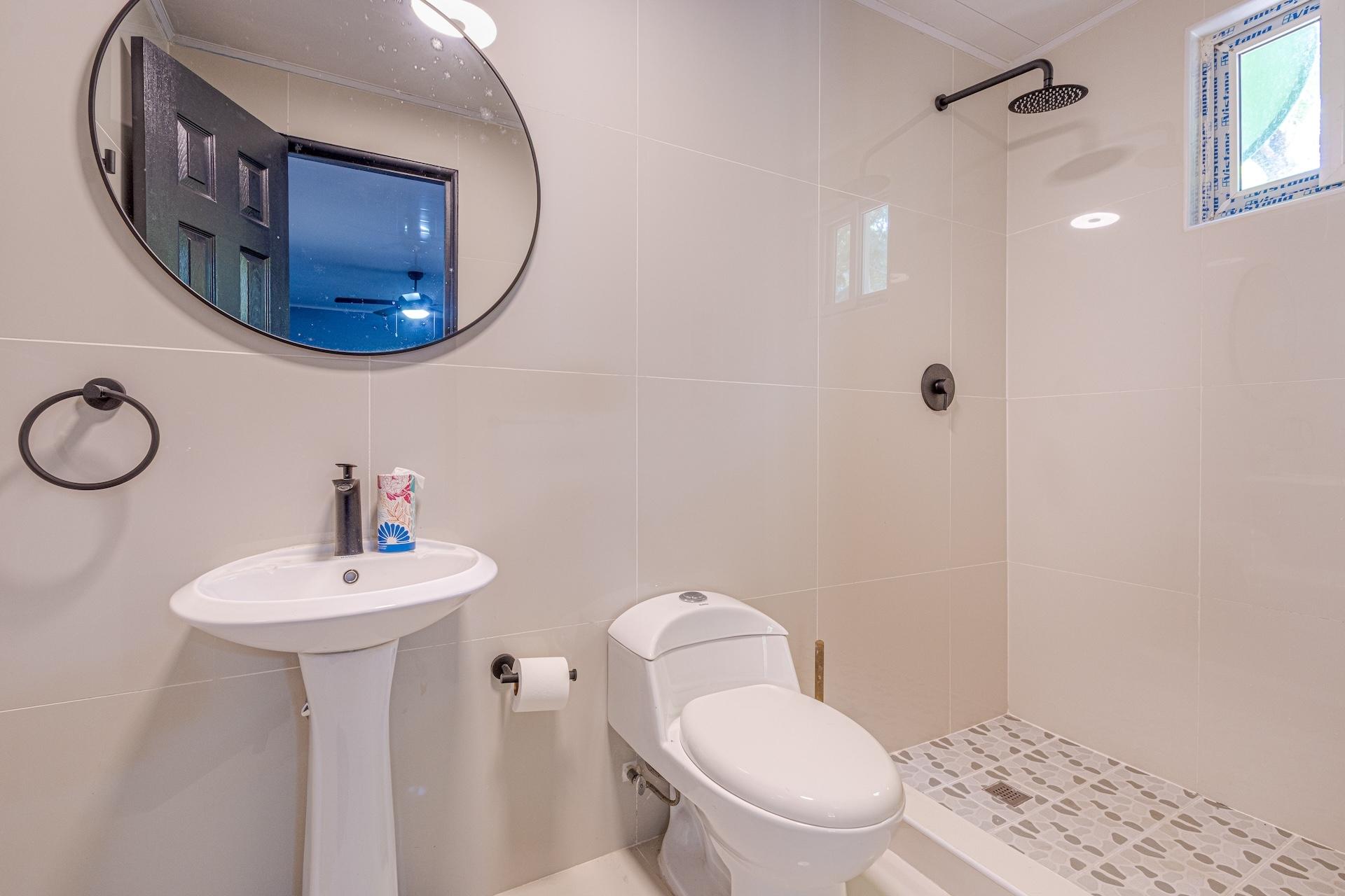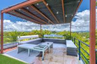 Don’t miss your chance to own this unique, income-producing compound just minutes from the beach in beautiful Costa Esmeralda. Set on nearly 1/2 acre of lush, palm-filled land, this one-of-a-kind property blends tropical living, sustainability, and modern design—all offered fully turnkey within a Panamanian corporation (included in sale). Main Residence Highlights: Crafted from multiple shipping containers and fully renovated, the main home offers 2,755 sq. ft. of interior living and 688 sq. ft. of covered outdoor space. 3 spacious bedrooms with en-suite bathrooms Brand new imported German kitchen with high-end appliances Open-concept living, dining & kitchen area perfect for entertaining Expansive rooftop terrace with sweeping views to Coronado and the mountains Covered patios, BBQ area, and resort-style pool In-ground pool powered by solar Outdoor bathroom and shower Guest Apartment + Bonus Building: The second container-built structure offers income-generating potential or expanded living options: Upstairs: A private 1-bed / 1-bath fully equipped studio apartment with separate entrance and views of the pool Downstairs: 640 sq. ft. of flexible space, ready to be finished as: A 2-bedroom rental unit A luxury master suite A yoga or wellness studio A retreat or business space A B&B or hostel conversion Private garden access allows guests to enjoy a quiet, separate entry. Sustainable Living Features: Solar panel system with 14,000 kW backup battery Connected to the grid with feedback system (avg. electric bill: under $2/month) 130 ft deep private well with two reserve tanks Eco-conscious design throughout Location: Set in the secure, beachs