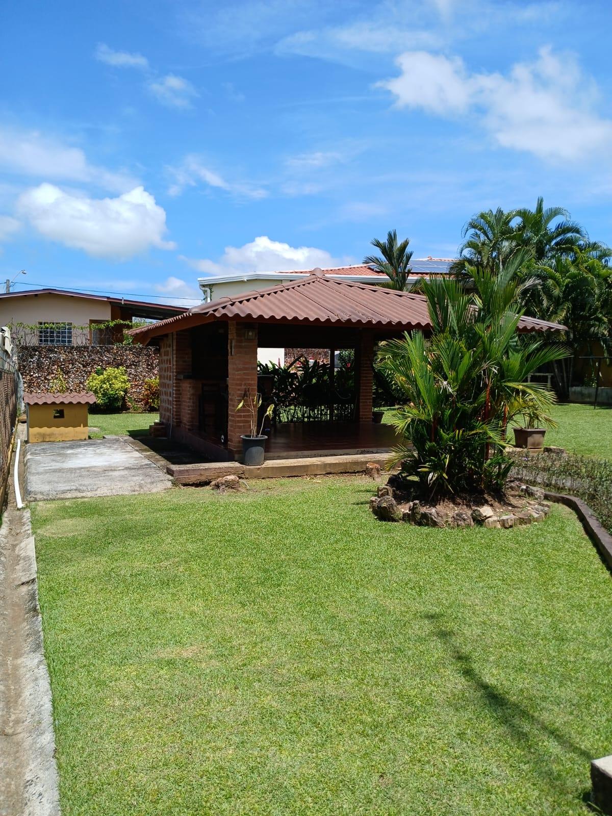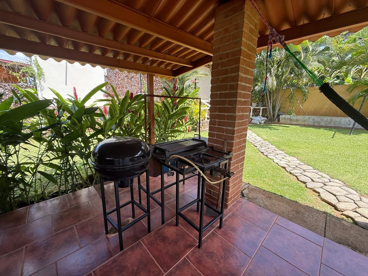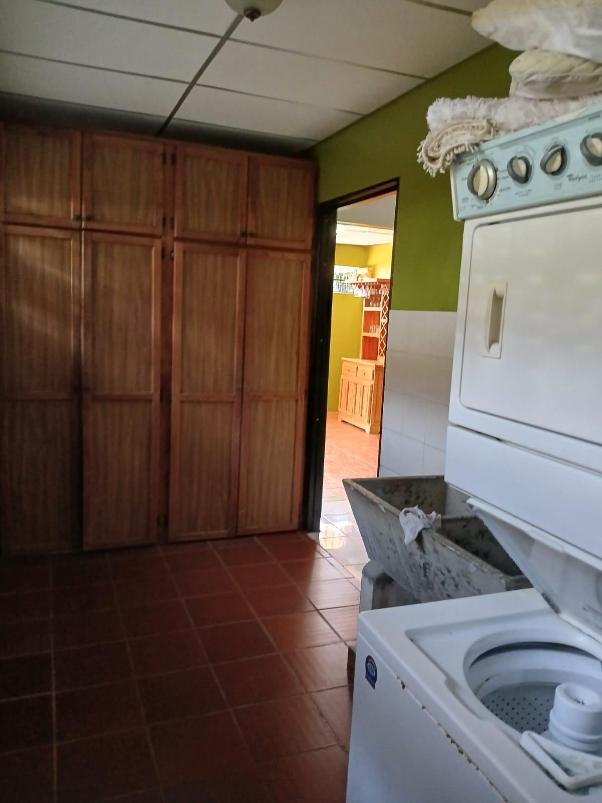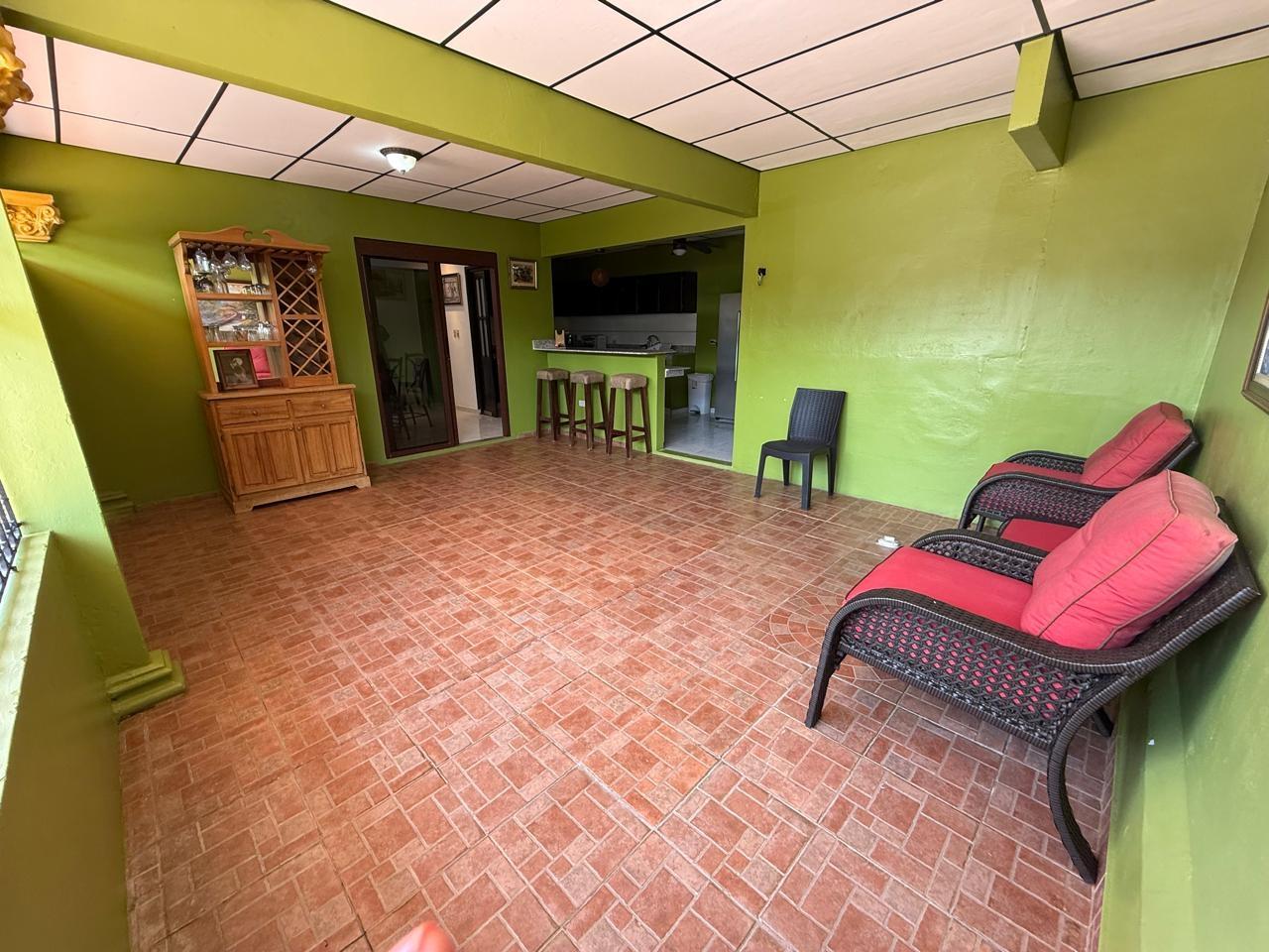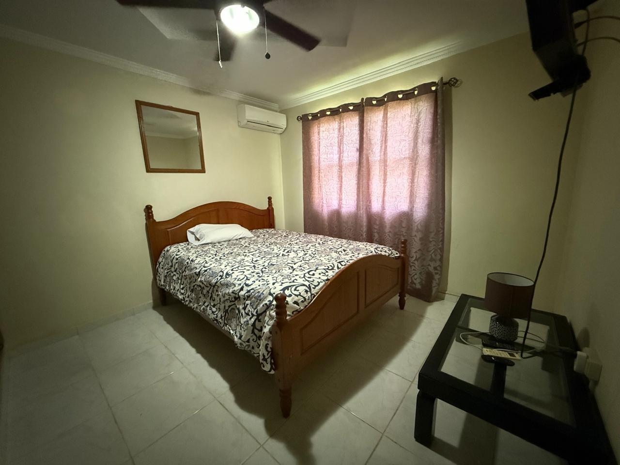 casa de 3 recámaras, 2 baños, sala comedor, cocina abierta, lavandería techada, cuarto de empleada y depósito. Esta casa cuenta con aire acondicionado en todas las recámaras y en la sala comedor, esta completamente amueblada y con su línea blanca. Cuenta con buena distribución, bohío y un lindo jardín, portón eléctrico y cercada completamente.