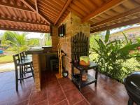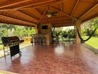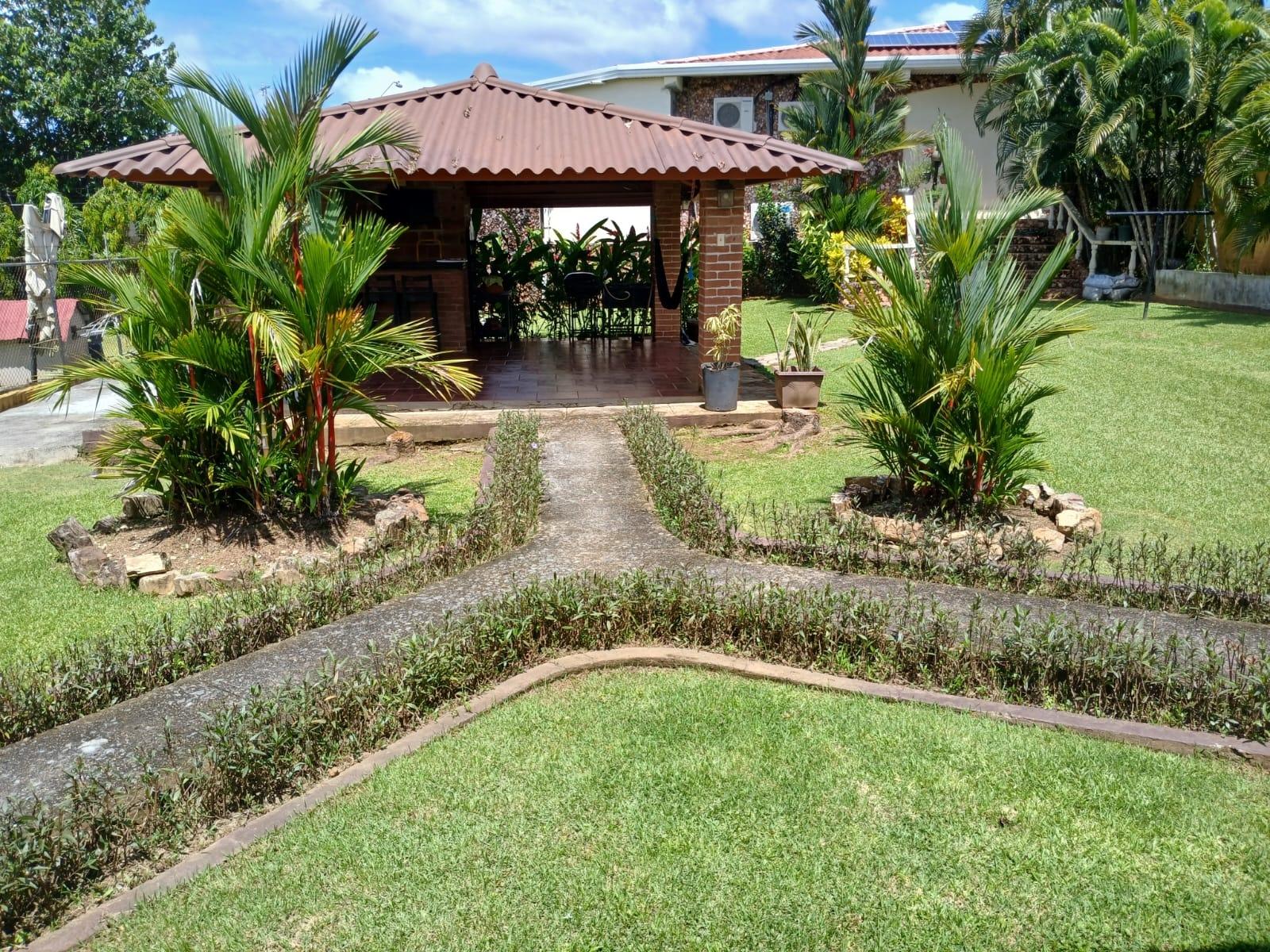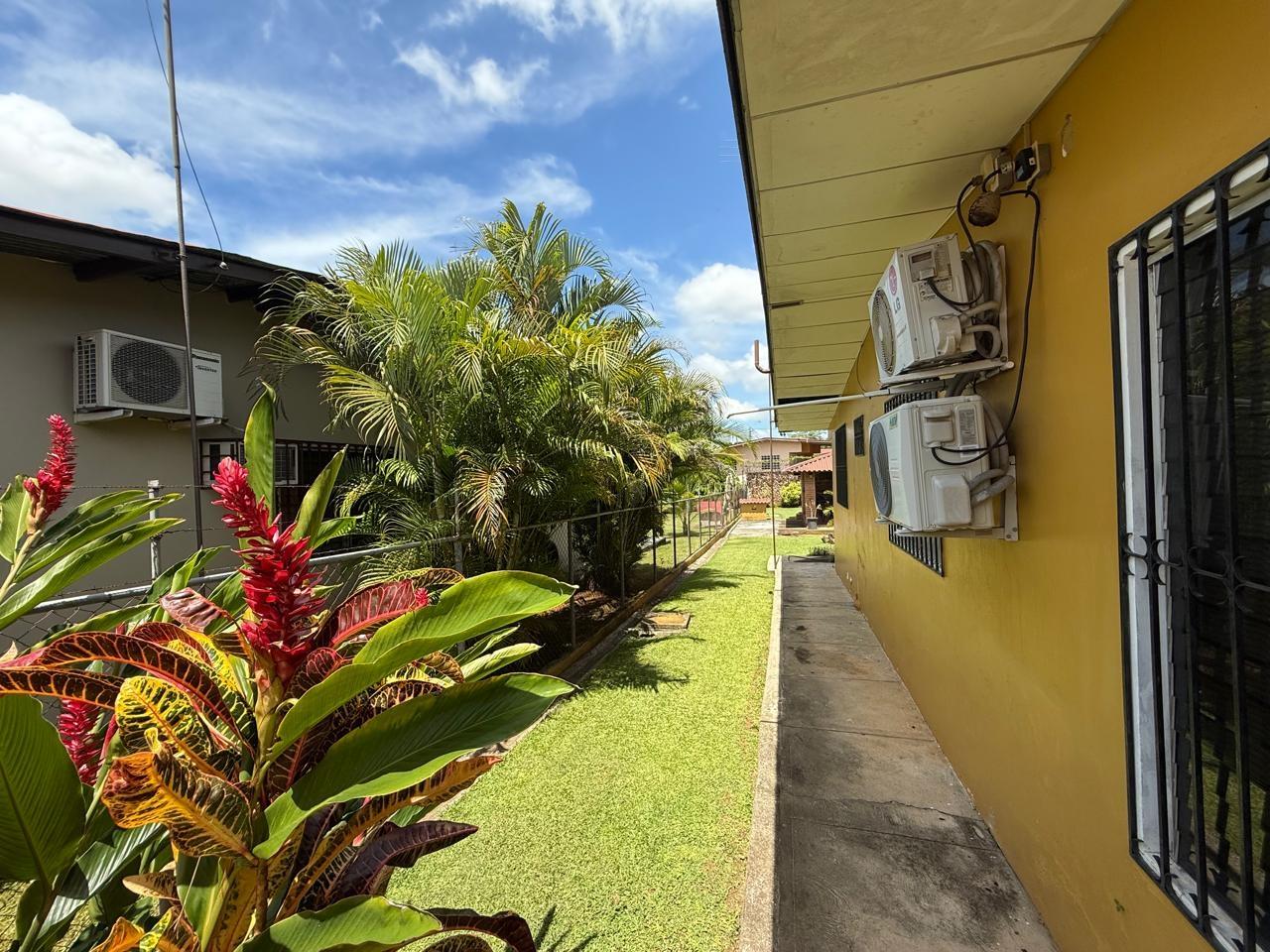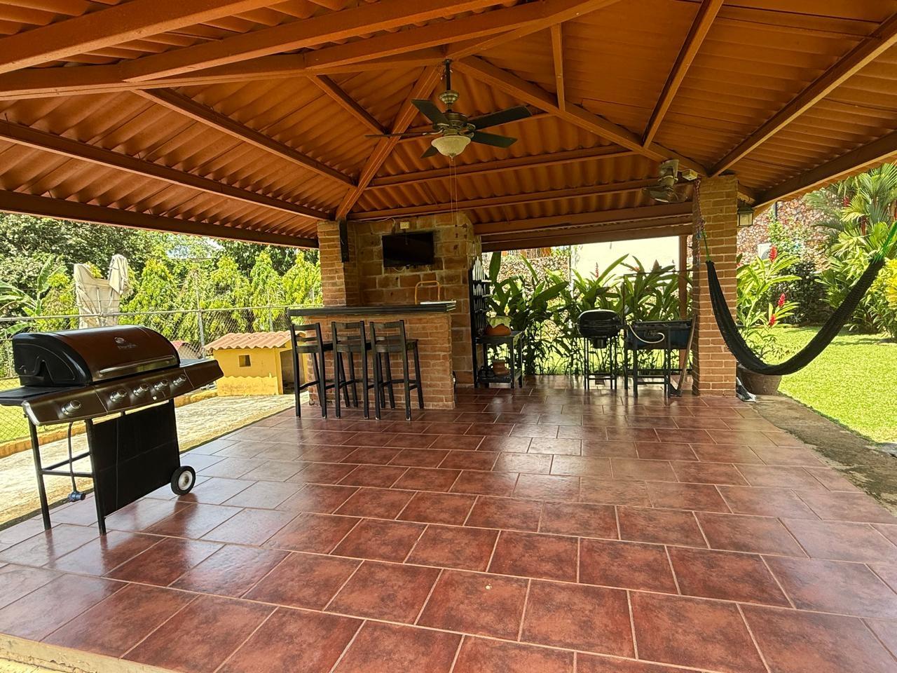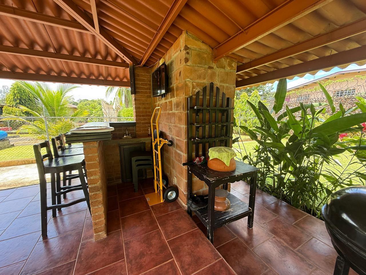 casa de 3 recámaras, 2 baños, sala comedor, cocina abierta, lavandería techada, cuarto de empleada y depósito. Esta casa cuenta con aire acondicionado en todas las recámaras y en la sala comedor, esta completamente amueblada y con su línea blanca. Cuenta con buena distribución, bohío y un lindo jardín, portón eléctrico y cercada completamente.
