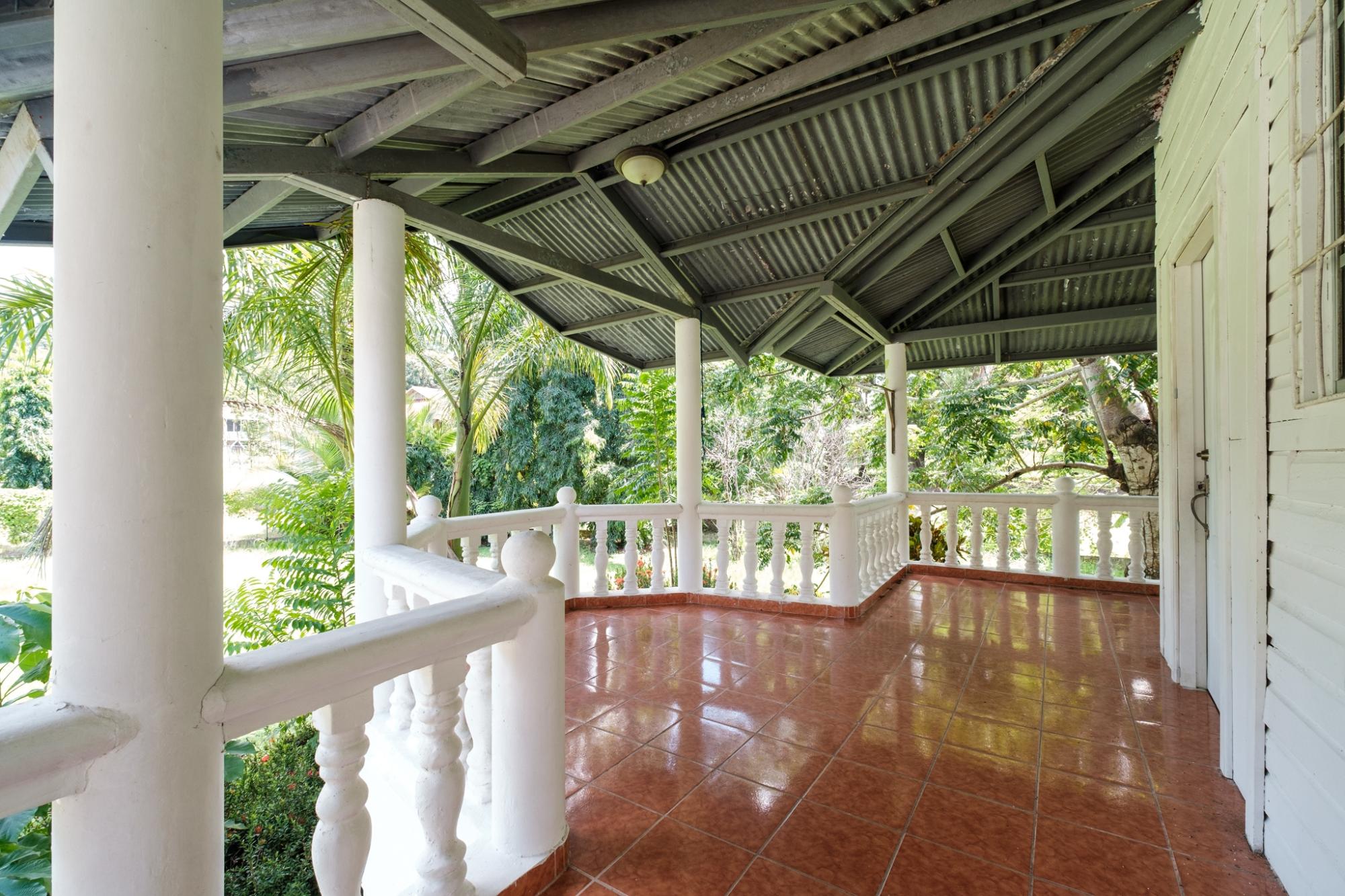 Step into history and comfort with this charming plantation-style residence in prestigious Las Palmas, once home to Chiquita Banana Company executives. Rarely do homes become available here, making this a special opportunity. This fully titled two-level estate blends classic character with modern potential. The upper floor features 3 spacious bedrooms, 2 baths, and an open living/dining area that flows to a custom balcony overlooking lush gardens-perfect for morning coffee or evening gatherings. The lower level offers a large garage, workshop, storage bodega, and a tiled room with private bath-ideal as a guest suite, home office, or rental unit. Property highlights include a quiet cul-de-sac location, fully fenced grounds with gated entry, and proximity to the community pool, tennis courts, and elementary school. Just a 10-minute walk to downtown shops, restaurants, banks, and the new hospital, with easy access to the planned pier and tourism development.