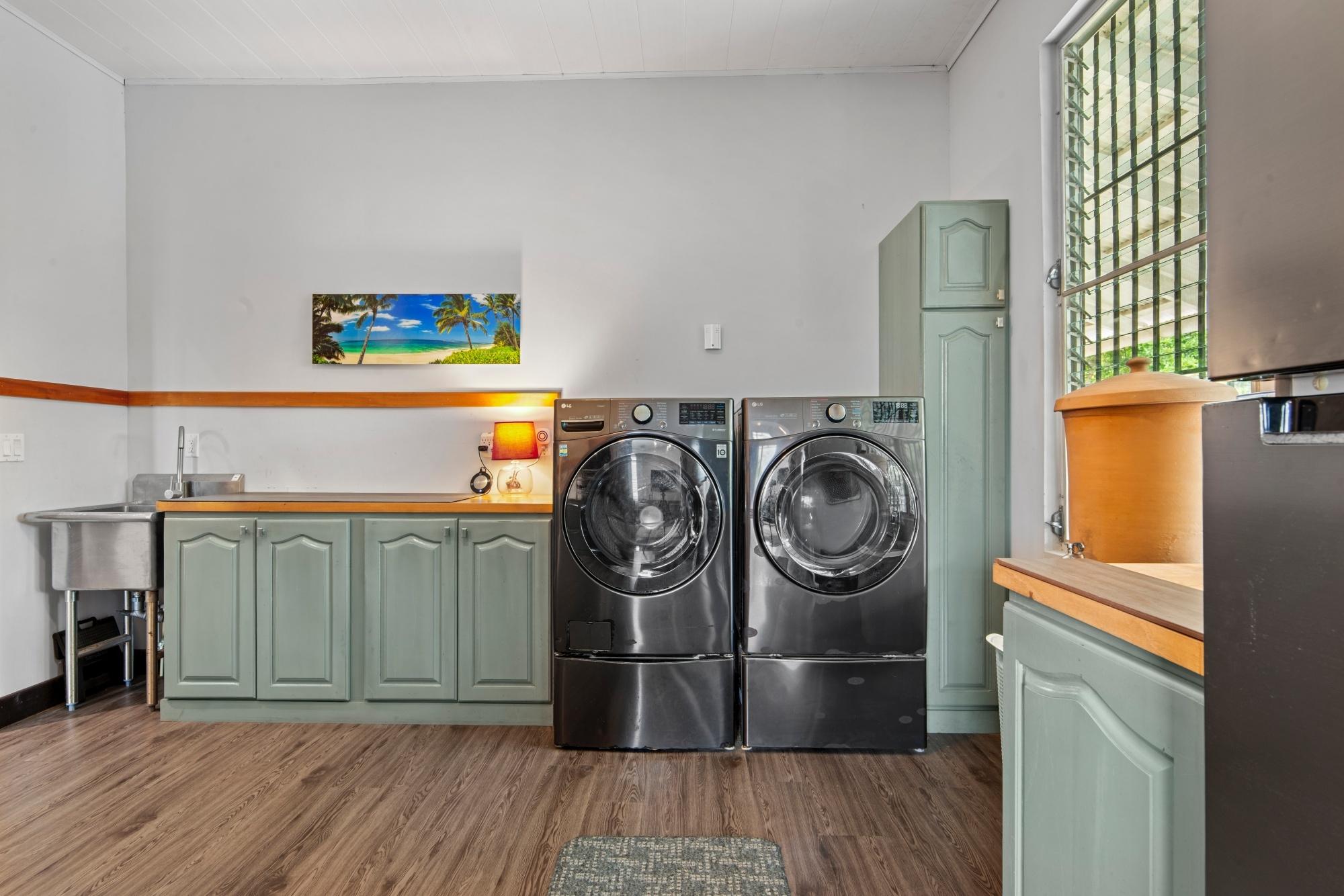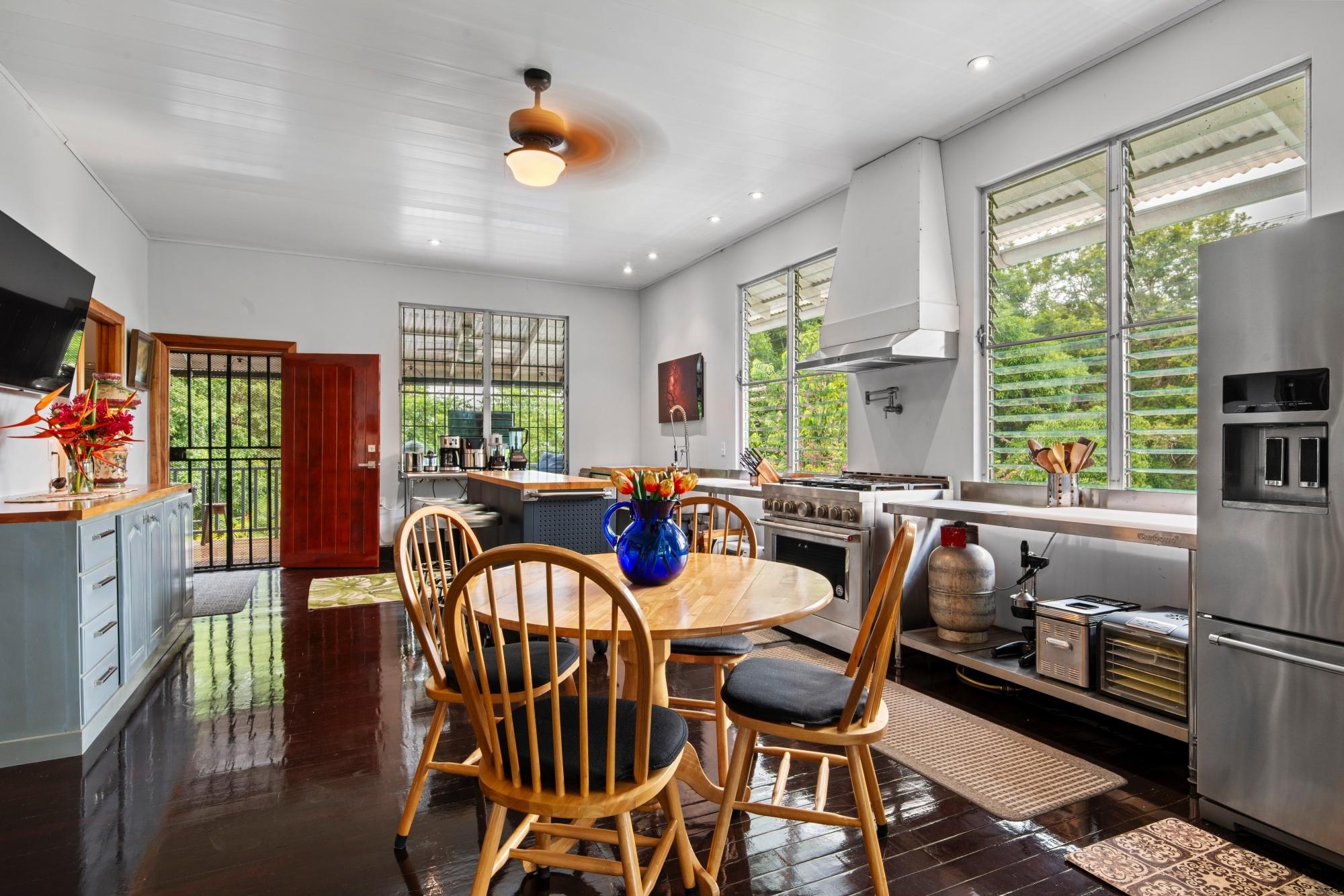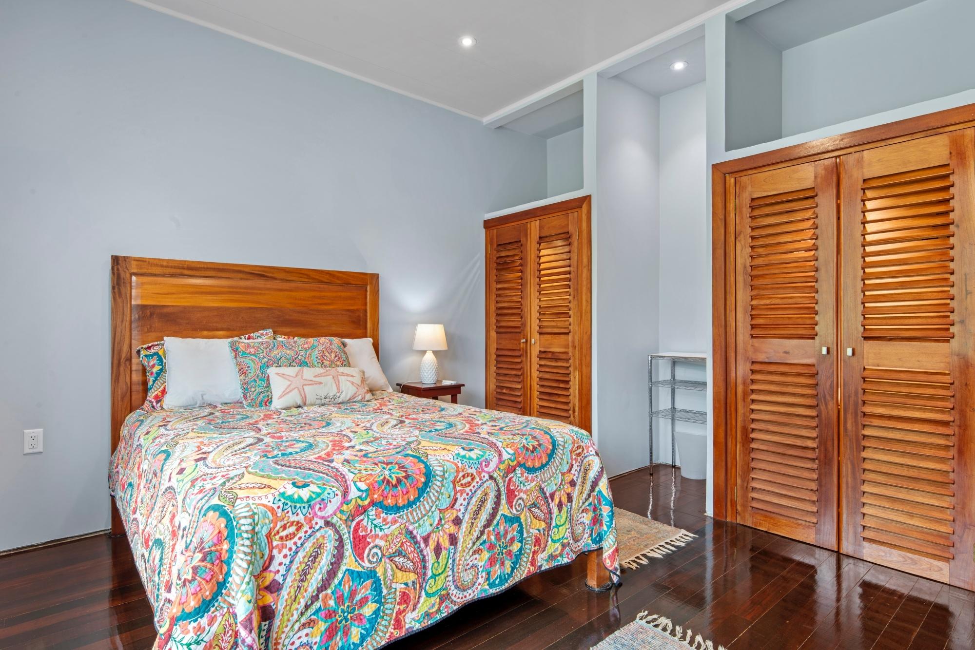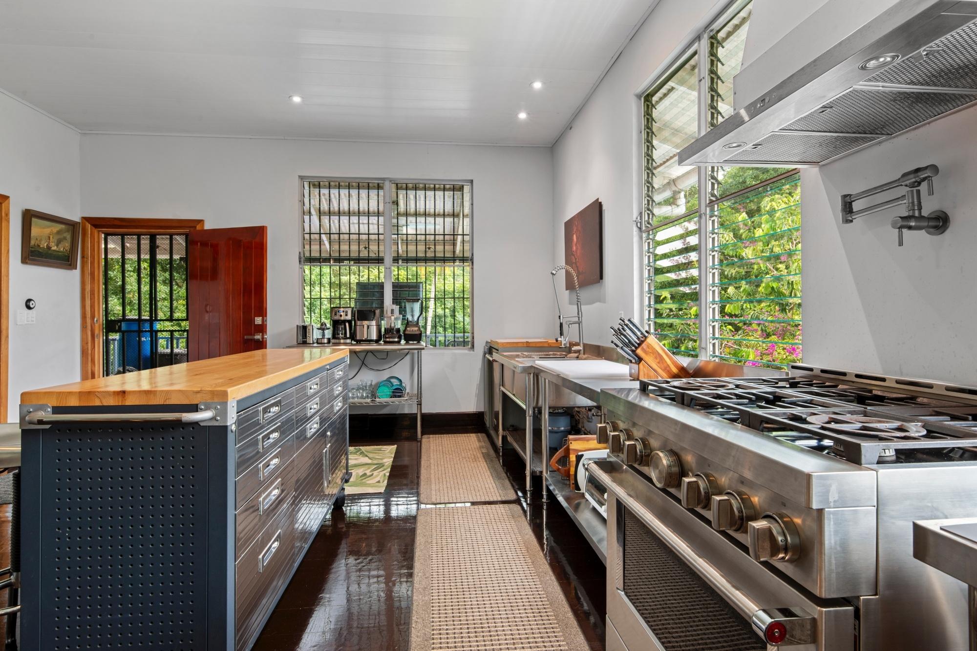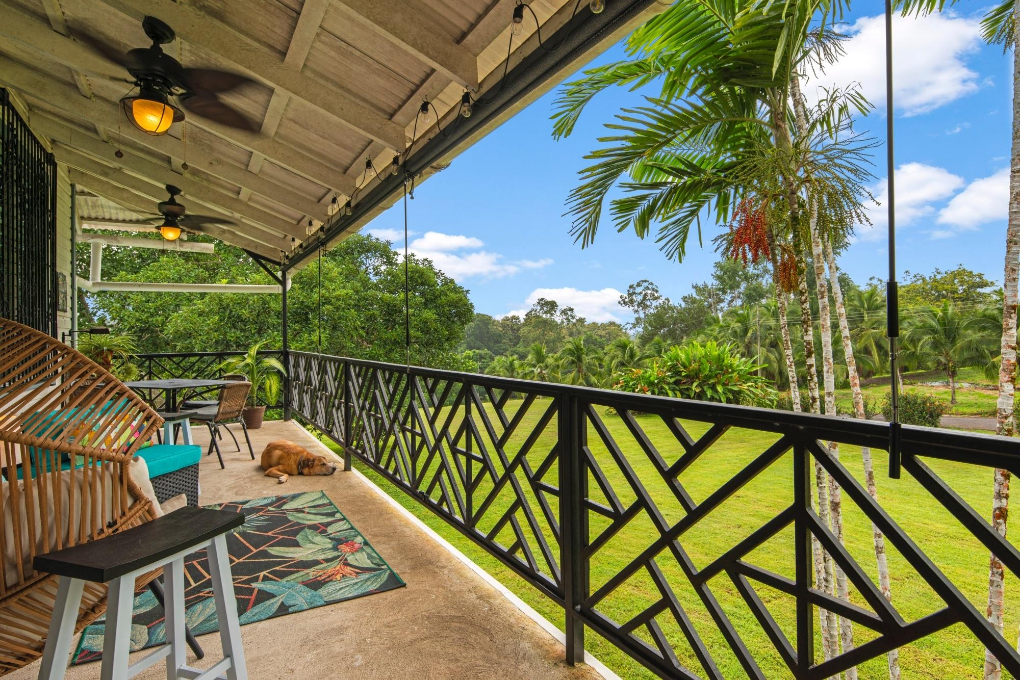 Where history meets modern day, this beautiful newly renovated and decorated Chiquita Banana Executive home in the beautiful neighborhood of Las Palmas, Puerto Armuelles is now for sale. Puerto Armuelles is a coastal town on the west end of Panama near the border of Costa Rica, known for its history as a banana port. It is a thriving town with new roads, a new hospital and major investment potential as a multi-purpose port is being built, that is expected to generate thousands of jobs and attract investment in the region. This beautiful home was one that was originally built for the Chiquita Banana executives and engineers during the company’s presence in the coastal town of Puerto Armuelles. These homes are characterized by their classic tropical colonial design featuring large overhangs, hardwood floors and ventilation for the tropics. Some were built on stilts to allow for airflow and avoid dampness. Las Palmas offers a peaceful atmosphere while being walking distance to town. This home has been completely renovated by a professional decorator and sits on a large beautifully landscaped property with fruit trees all around and surrounded by a deep ravine with a creek and beyond is a nature preserve. You will see and hear howler monkeys and toucans cruising amongst the trees. The home is approximately 2700 sq ft of living space upstairs with the same footage below and is 100% secured with new security bars and can be used for parking or party space. This spacious home has 3 large air conditioned bedrooms and modern bathrooms with top of the line fixtures.