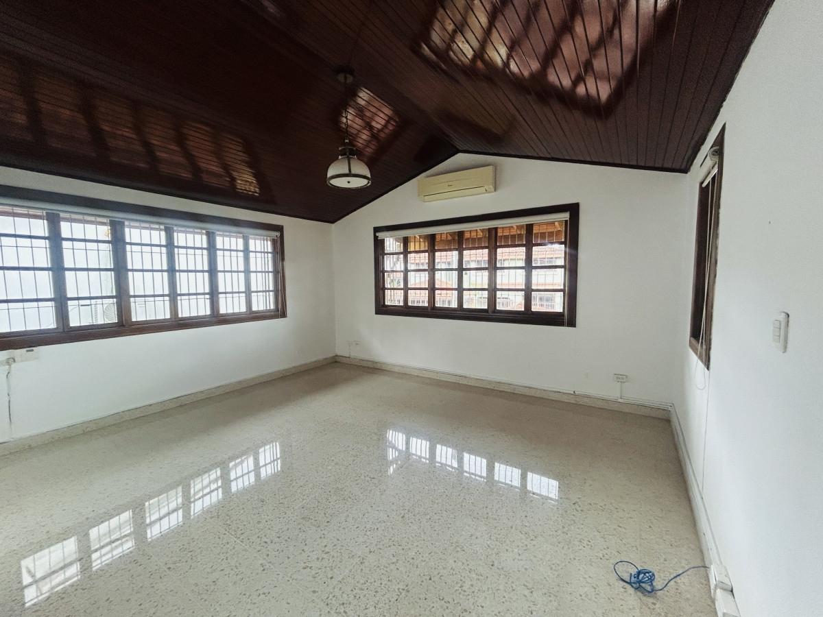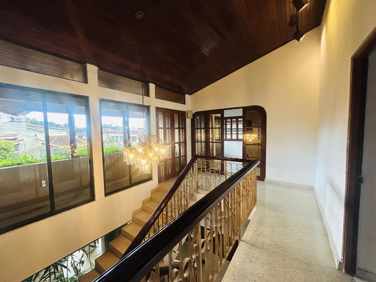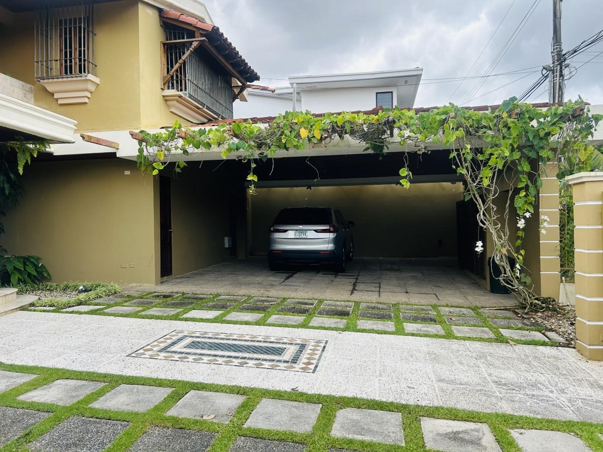 Vivir en La Alameda es disfrutar de un residencial consolidado, con alta plusvalía, donde la vida familiar y el confort urbano se encuentran en un mismo lugar. Rodeado de naturaleza, amplias calles y residencias elegantes. Un entorno sereno que te invita a caminar, ejercitarse o simplemente relajarse. Esta residencia está compuesta por dos plantas. La planta baja consta de vestíbulo, sala, comedor, cocina, sala familiar, estudio, medio baño de visita, cuarto y baño de servicio, lavandería, amplia terraza – Bar y 4 estacionamientos - deposito. La planta alta cuenta con, tres recamaras cada una con su baño completo, den y un balcón donde podrás disfrutar de la naturaleza. En el exterior de la parte posterior de la residencia encontraras un anexo con un cuarto y baño completo, y deposito. Además, el cuarto de bomba, para el riego controlado de tus plantas. La residencia cuenta con distintos acabados, entre ellos: pisos de mármol y granito, estructuras de madera y cielo raso de madera machimbrada, cielo raso de gypsum en la sala familiar. Este exclusivo vecindario ofrece la combinación perfecta entre exclusividad, tranquilidad y ubicación estratégica en la Ciudad de Panamá.