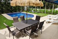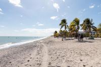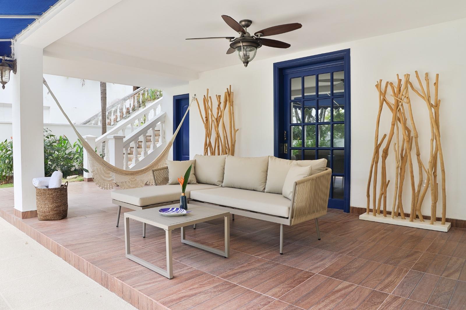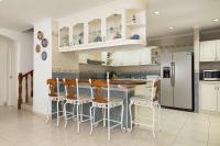 This duplex is located in PH Marina del Rey, part of Playa Blanca Resort in Río Hato, Antón. The property has 430.94 m² of land and approximately 640 m² of construction on flat terrain. Its location provides direct ocean views and access to the beach through a private gate, making it an attractive option for those looking at Playa Blanca real estate. Interior Features The house is built with concrete construction and a tile roof, designed for durability in a coastal environment. It has six bedrooms, each with its own bathroom, plus a separate service room with bathroom. The main bedroom includes a walk-in closet, private balcony, and an exercise area. All closets are lined with American cedar wood to prevent humidity, and the bronze window handles and locks are anticorrosive. The kitchen connects with the main living area in an open design, with a bar for informal dining. The house is fully furnished and includes furniture, lamps, artwork, beds, appliances, washer and dryer, barbecue, terrace furniture, hammocks, and decorative pieces. For climate control, the house has split air conditioning units in every bedroom, living room, and breakfast area, as well as central air conditioning for the two poolside bedrooms. Outdoor Areas The home has two covered terraces, a private swimming pool with terrace, outdoor shower, and landscaped garden, and a designated barbecue area. There is also a three-car garage and a covered entrance with a port cochere. The sale includes a Kawasaki 4x4 (2019) in excellent condition, adding convenience for moving around the community or the beach. The property is equipped with its own private water system.