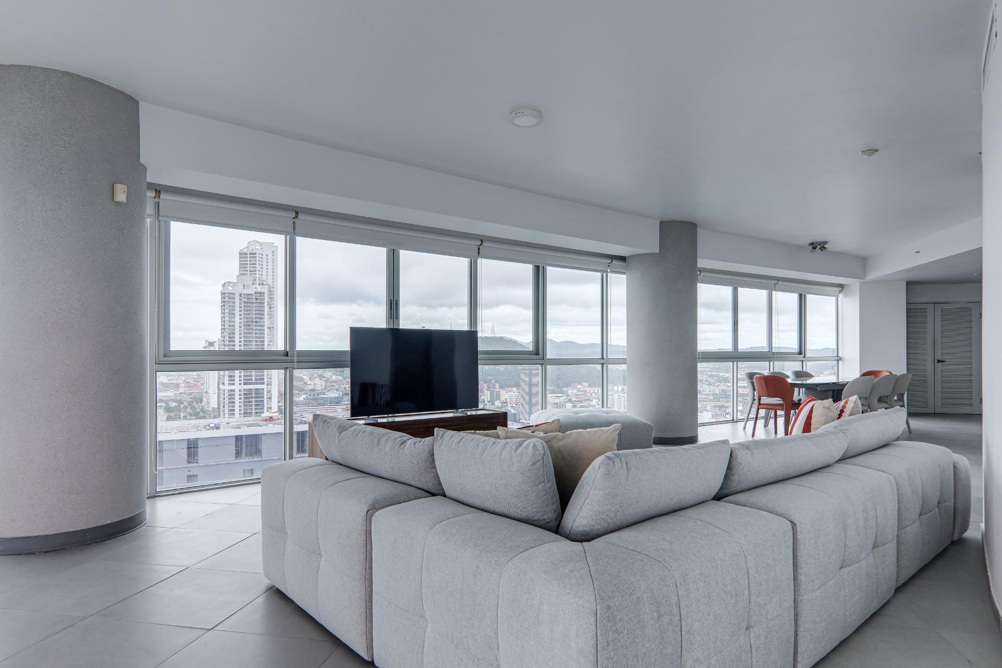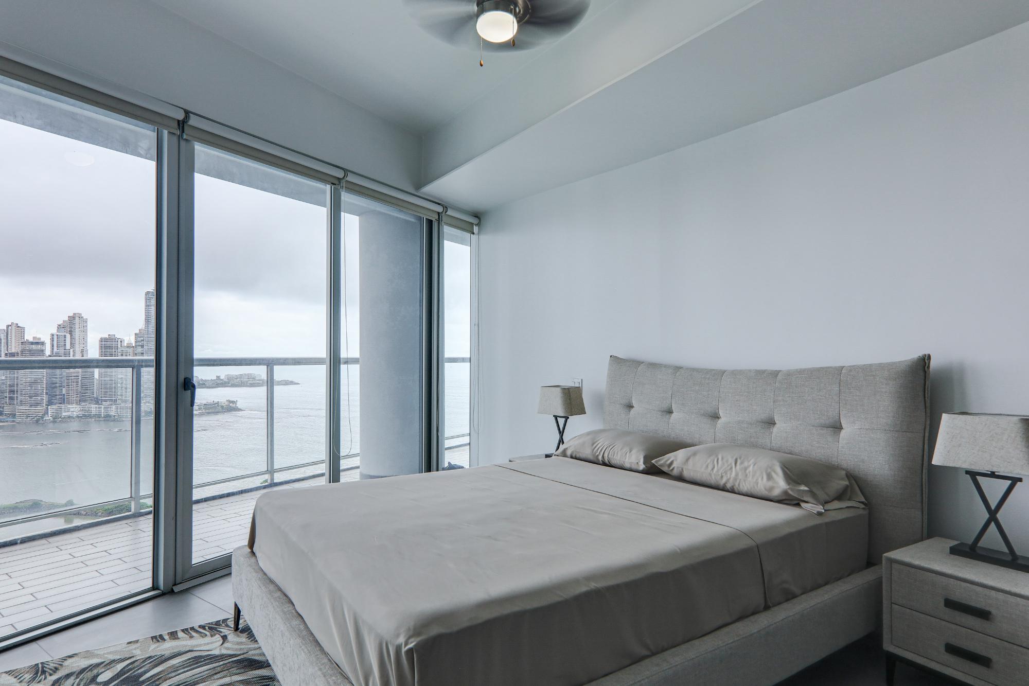 Este lujoso apartamento amoblado de dos recámaras está ubicado en un piso alto del PH Yacht Club y ofrece una vista despejada de 180 grados de la Bahía de Panamá, el Casco Viejo, el Cerro Ancón y el horizonte de la ciudad, ¡así como el Canal de Panamá a lo lejos! Con 217 m2 de espacio habitable, ventanas de piso a techo y un balcón que se extiende a lo largo del apartamento, este apartamento es ideal para aquellos que buscan una propiedad con vista privilegiada en la cinta costera de la Ciudad de Panamá. Las características incluyen: Muebles modernos de buena calidad - a estrenar! Sala de estar doble y comedor Cocina abierta con refrigerador de acero inoxidable, lavavajillas, horno, estufa de gas y extractor Recámara principal con acceso directo al balcón y lujoso baño privado con dos lavamanos y tina profunda Segunda recámara amplia con acceso directo al balcón, ubicado frente a un baño completo Medio baño para visitas Lavandería Dos unidades de aire acondicionado central Un estacionamiento asignado.