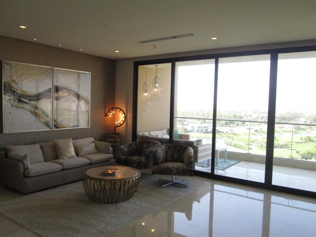 SANTA MARIA PH LA VISTA ON THE GREEN APARTAMENTO EN ALQUILER Excelente apartamento en el PH LA VISTA on the Green, ubicado en el hoyo 18 del Club de Golf de Santa María, super buena ubicación con una vista insuperable hacia los campos de golf y hacia el pacifico. Consiste en un apartamento de 304 metros, distribuido muy bien, iniciando con una gran sala con vista frontal a los campos de golf y balcón grande y amplio donde puede colocar mobiliario de exteriores. Igualmente tiene suficiente espacio para un comedor de 10 personas o mas. El área de cocona es muy acogedor con una entrada independiente para el servicio y suministros, con su linea blanca, centro de lavado y cuarto y baño de empleada. Aparte se encontrara en el área social del apto. un baño de visitas. El área de recamaras esta separada por su puerta de acceso y al entrar se encuentra un salón familiar o de TV o puede ser para un estudio. Las 3 recamaras tienen sus baños y wall in closets, la principal dirigida hacia los campos de golf con una vista fabulosa. El inmueble se maneja con Aires centrales y splits. Además de abanicos en ciertos lugares. Tiene 3 parkings Las áreas sociales del PH son excelentes, con piscina rodeada de vegetación y jardinerías, gimnasio de primera, salón de reuniones y fiestas muy atractivo, sala de juegos para niños, seguridad y conserjería, sistemas de video y seguridad digitales y otros mas. No deje de visitar este apto en alquiler. Estará disponible el primero de NOVIEMBRE DE 2025.