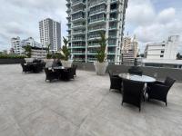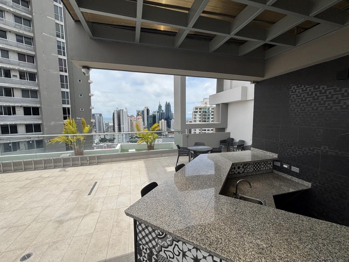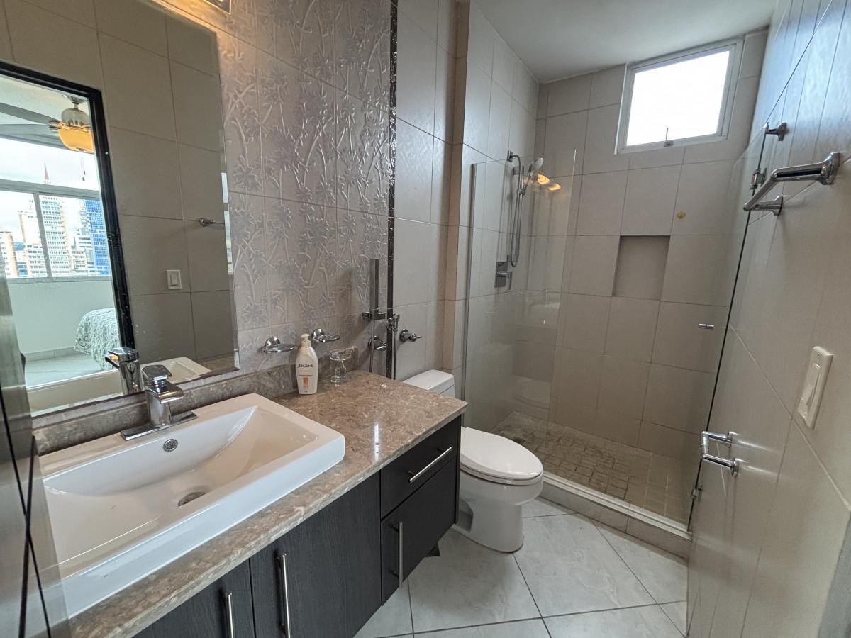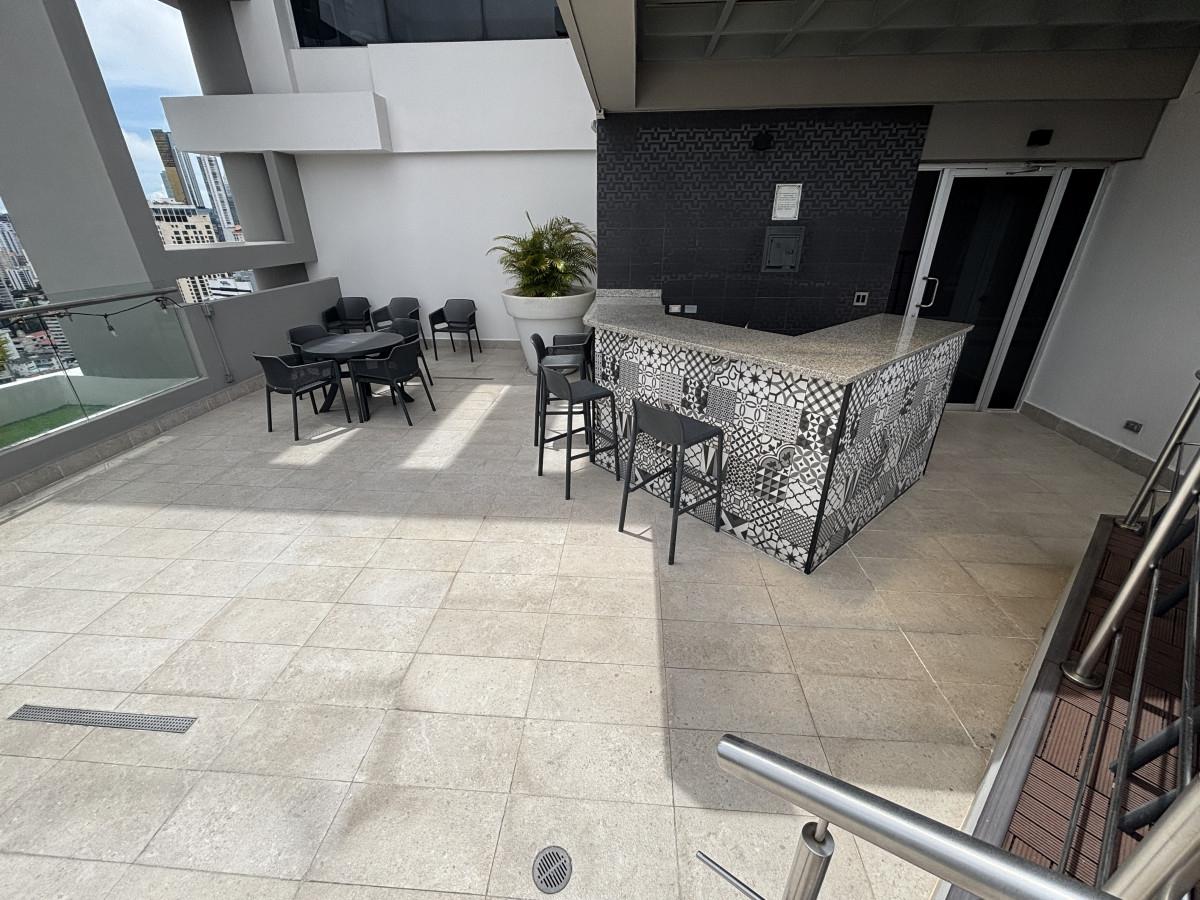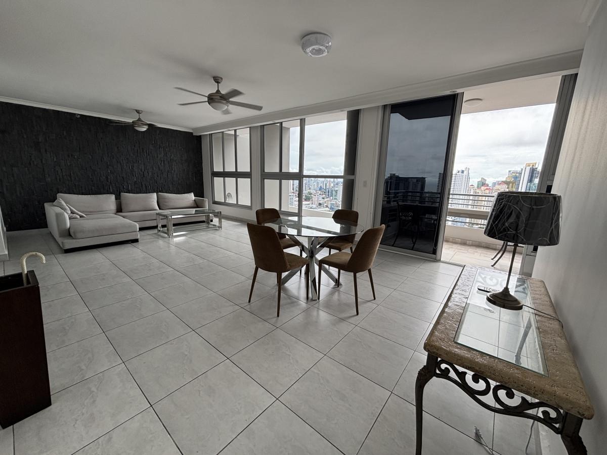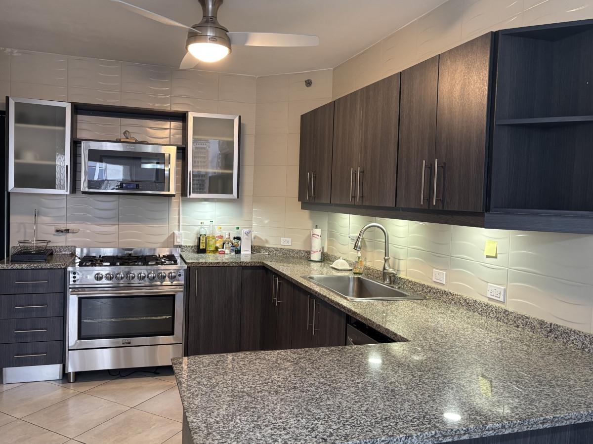 Furnished Junior Penthouse for Sale at Luxor Tower 100, El Cangrejo. It features three spacious bedrooms, each with its own bathroom, maid’s room with bathroom, guest bathroom, and a spectacular city view. The bathrooms are large with fine, modern finishes. The apartment comes fully equipped with air conditioners, curtains, appliances (including two refrigerators), laundry center, and dishwasher. Additionally, it includes a bar with a wine cooler and a beautiful custom-made wooden piece in the foyer. The kitchen is spacious, modern, and includes a breakfast area. Luxor is recognized as one of the finest and most exclusive residential complexes in El Cangrejo. The social areas are large and include a swimming pool, jacuzzi, sauna, game rooms, gym, and children’s play areas. Apartments of this type also enjoy access to a second social area on the rooftop of the building, offering stunning views, a jacuzzi, and an open bar space for parties.