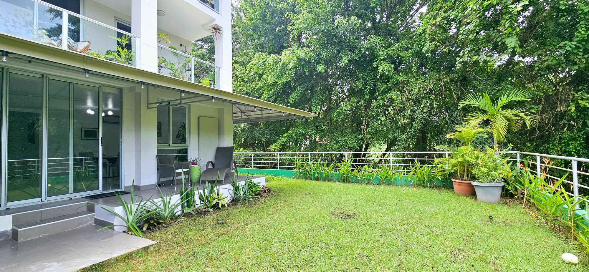 Modern ground-floor apartment with a bright living and dining room connected to a spectacular terrace surrounded by forest and mountain views, ideal for those who love nature and spending time outdoors. A custom-built open kitchen, equipped with appliances and granite finishes, 3 spacious bedrooms (each with an en-suite bathroom, the master bedroom and a secondary bedroom with a walk-in closet), a fourth bedroom with an external bathroom (or for guests or staff use), all with inverter split air conditioning, a laundry area, 3 covered parking spaces, and a good-sized storage room.