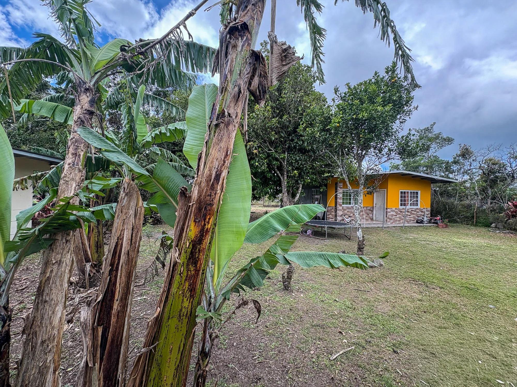 This property is located in Nueva California, Tierras Altas, Chiriquí Province, with a good location offering 1,200 sqm of land and 75 sqm of construction. The flat terrain is complemented by a variety of fruit trees, including oranges, lemons, nispero, and cashew trees, providing a natural and productive environment. The house features two bedrooms and one bathroom. With clear views of the mountains, the property is just 650 meters from the center of town, making it conveniently close to local amenities, including stores and services. The property’s location in Tierras Altas, at 4,508 feet (1,374 meters) above sea level, offers potential for gardening or agriculture, adding value for those looking to make use of the land for cultivation or farming.