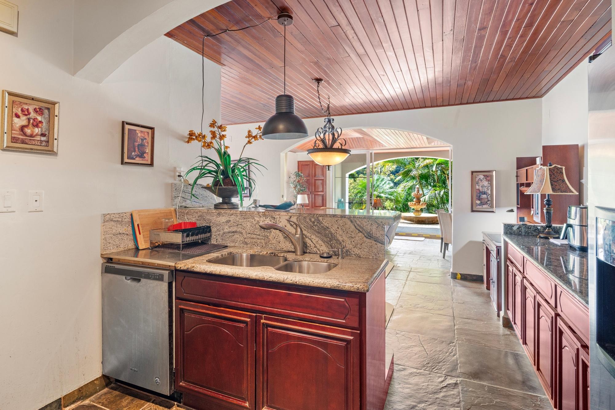 Step into the charm of this colonial style red two story home, beautifully located in the prestigious Valle Escondido community of Boquete. With 6 bedrooms and 5.5 bathrooms, this property offers a perfect combination of elegance, comfort, and income potential — ideal for family living or as a luxury investment. The main house features a modern kitchen equipped with high-quality stainless-steel appliances, a large central island, and plenty of natural light, creating a warm and inviting space for cooking and entertaining. The main suite, located on the upper level, includes a private bathroom with a jacuzzi bathtub, offering a peaceful retreat with beautiful garden views. In addition to the main residence, the property offers a fully independent apartment with its own entrance, kitchen, and laundry area — ideal for guests or rental income. There’s also an extra bedroom with a private entrance and bathroom, providing even more flexibility for visitors or staff accommodation. Surrounded by beautifully landscaped gardens and featuring a charming front fountain, the outdoor areas provide a serene atmosphere for relaxation and gatherings. The home also includes two large storage rooms and ample parking for up to 6 vehicles. As part of the exclusive Valle Escondido gated community, residents enjoy access to a full range of resort-style amenities, including: •9-hole golf course •Tennis courts •Indoor swimming pool •Fully equipped fitness center and spa •Fine dining restaurant and café •Scenic walking trails surrounded by lush greenery •24-hour security and controlled access