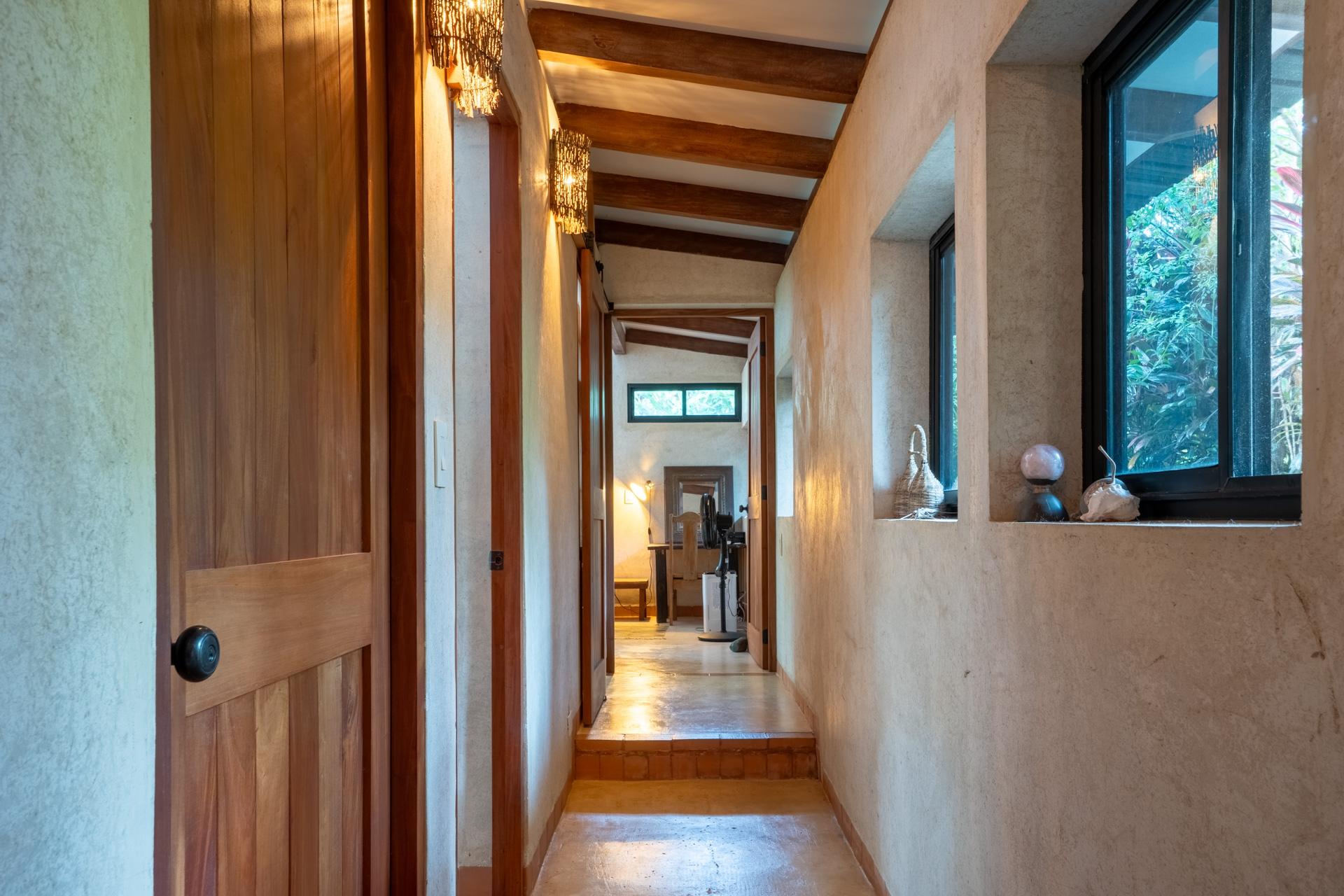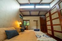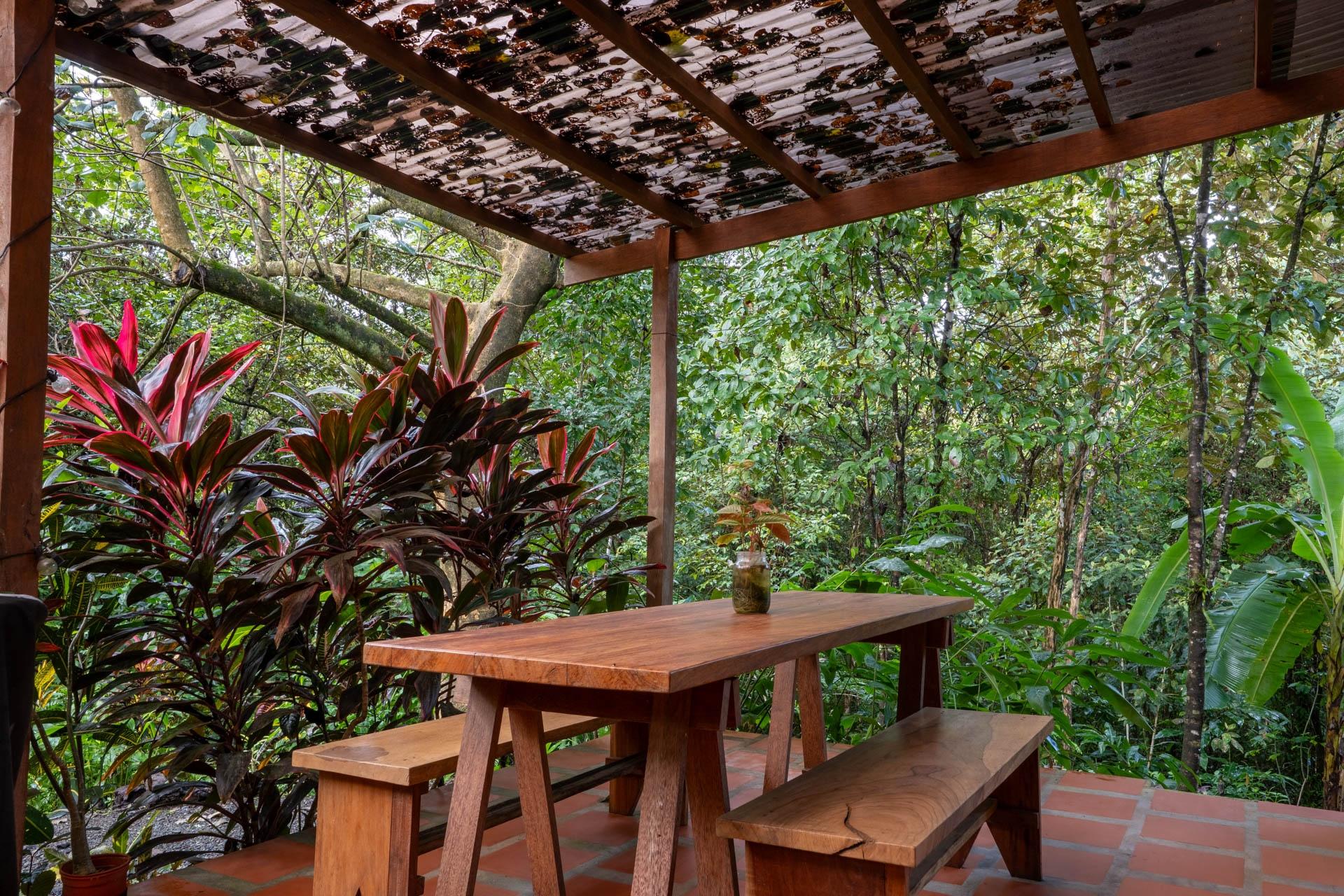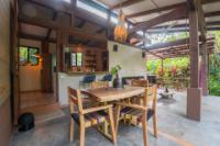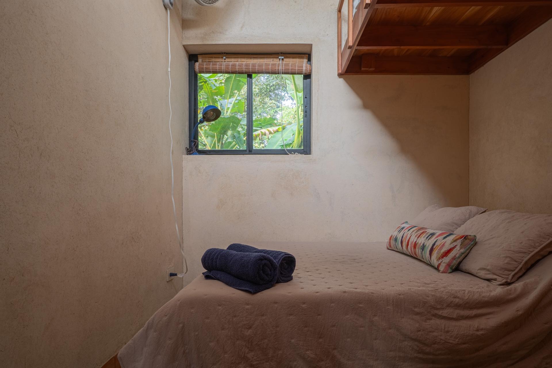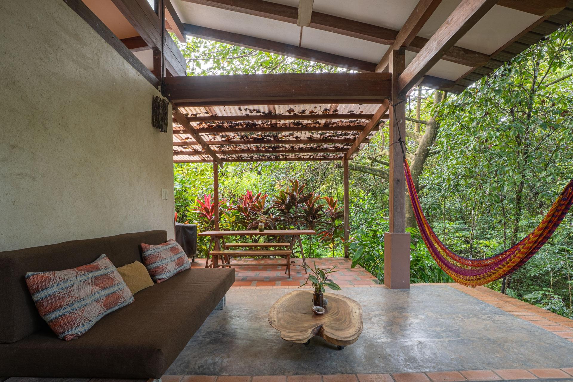 This architect-designed tropical home combines sustainability, comfort, and craftsmanship in a lush forest setting near the coast of Torio, Veraguas. Built in 2021, the home reflects a thoughtful approach to design, blending natural materials with a contemporary tropical layout that invites indoor-outdoor living. Set on a 1,108.65 m² lot within the Torio Hills development, the property features 100 m² of construction, including 3 bedrooms, 1.5 bathrooms, and open, light-filled living areas that connect directly to the surrounding landscape. The home is fully furnished and already operating successfully as a vacation rental, offering immediate income potential and long-term value for those looking to live or invest in one of Panama’s most beautiful coastal regions. Design and Construction The structure was built using rammed earth walls, tropical hardwoods, and limestone finishes, creating a warm, organic feel while maintaining natural temperature balance inside the home. A sandwich zinc roof with exposed beams enhances airflow and natural light, while the earthy tones of the materials blend harmoniously with the surrounding forest. Interior and Layout The interior follows a simple and efficient layout that emphasizes comfort and flow. The semi-open kitchen features a gas stove, open shelving, and direct access to the terrace, creating a seamless transition between cooking, dining, and relaxing. The main bedroom includes high ceilings, built-in storage, and large sliding doors that open to forest views. Two additional bedrooms offer flexible space for guests or family, one of them featuring a full bed below and a lofted twin above.