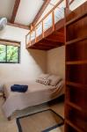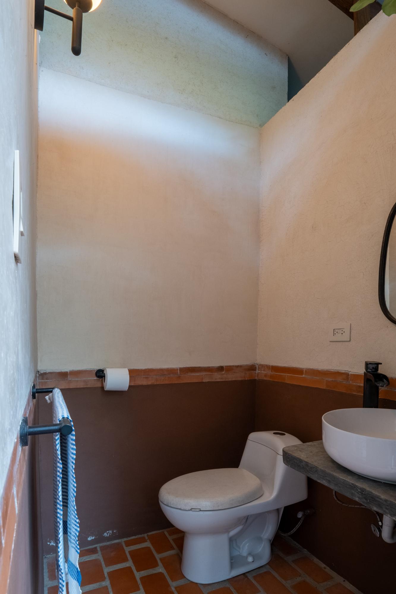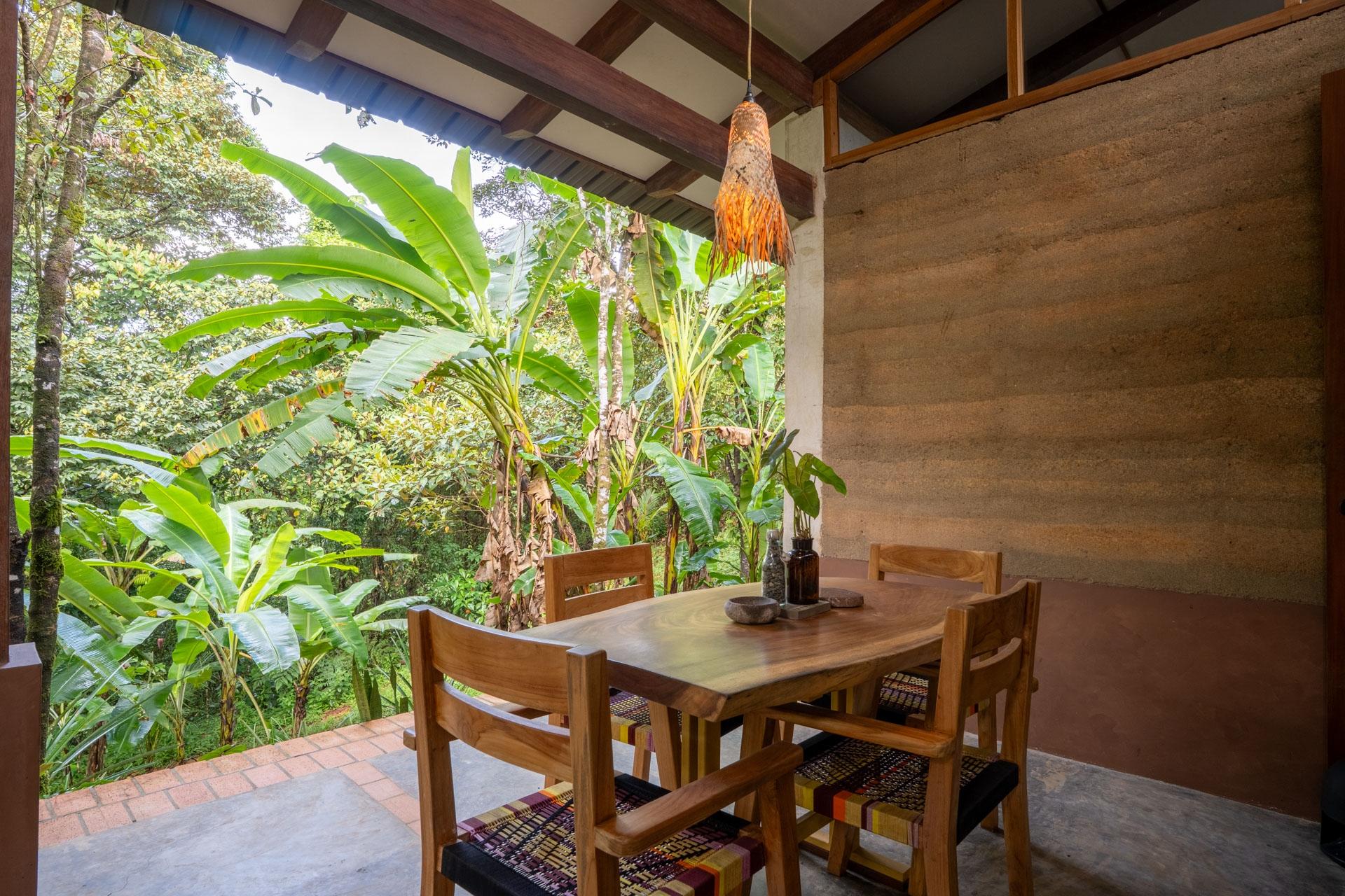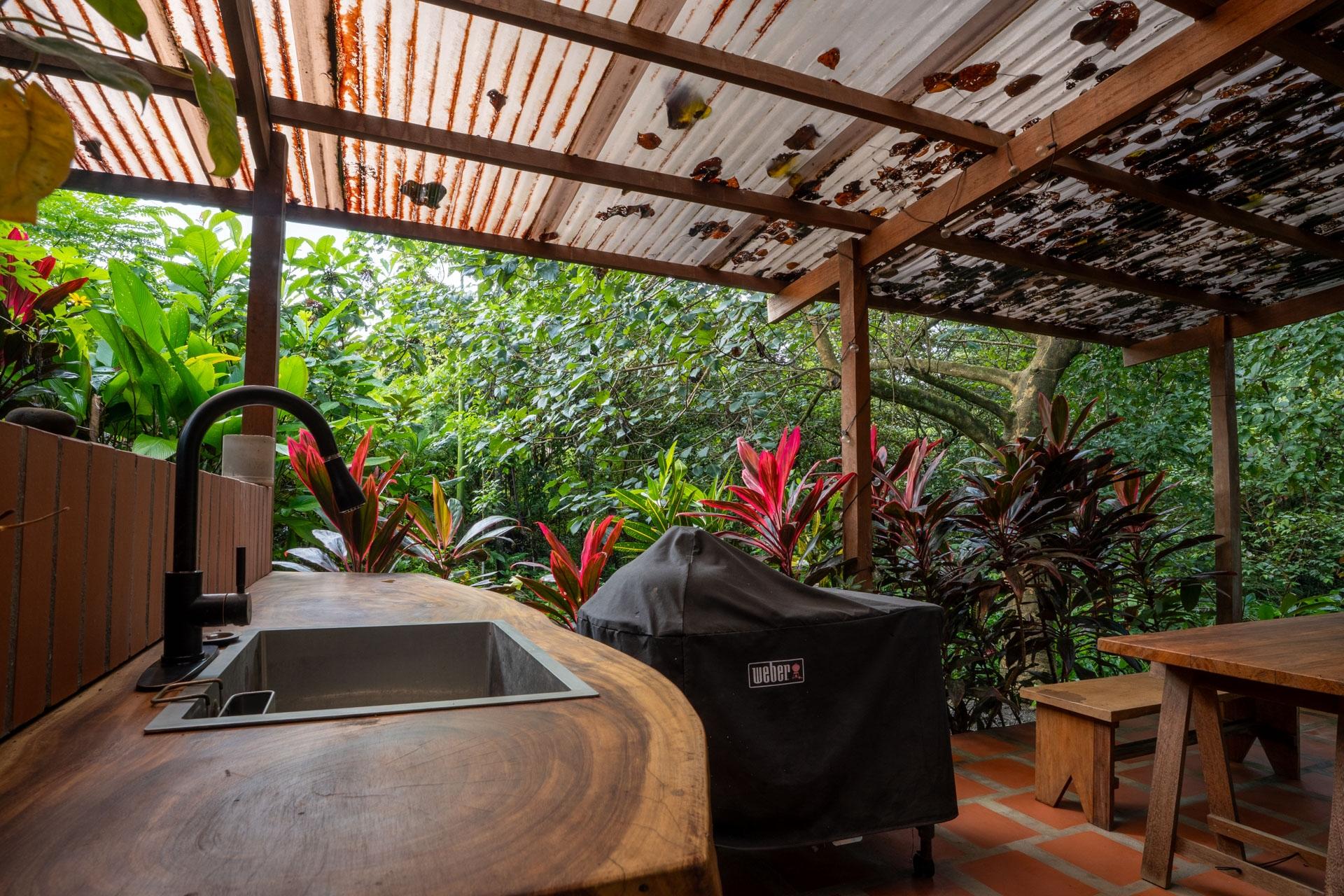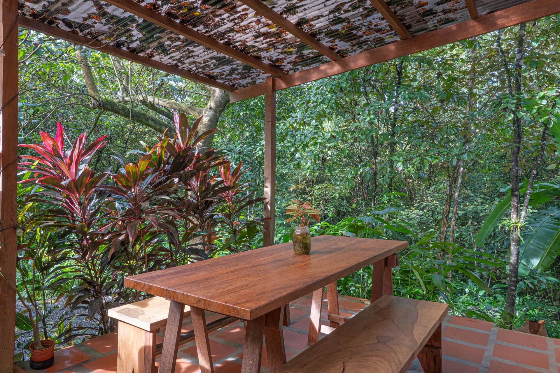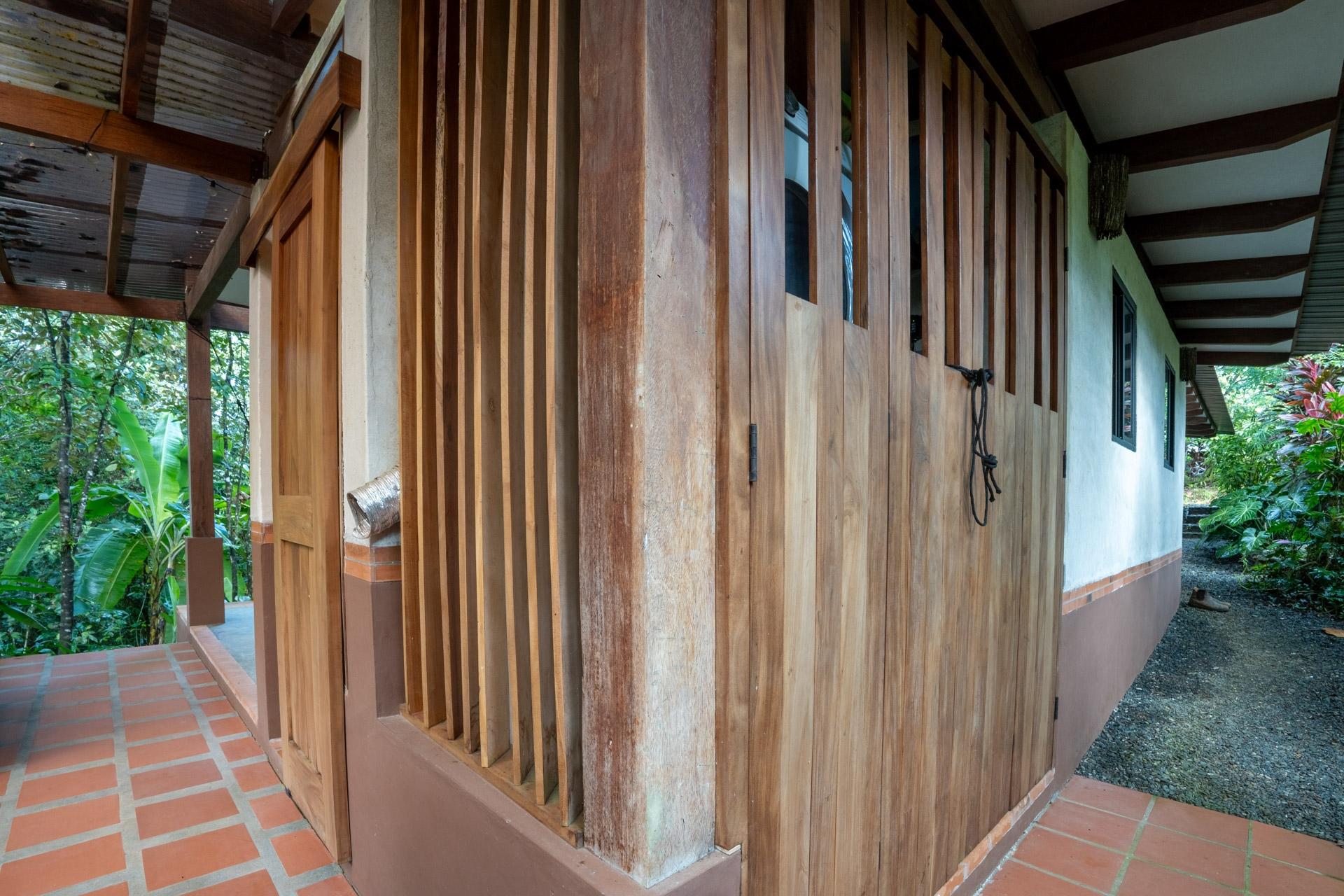 This architect-designed tropical home combines sustainability, comfort, and craftsmanship in a lush forest setting near the coast of Torio, Veraguas. Built in 2021, the home reflects a thoughtful approach to design, blending natural materials with a contemporary tropical layout that invites indoor-outdoor living. Set on a 1,108.65 m² lot within the Torio Hills development, the property features 100 m² of construction, including 3 bedrooms, 1.5 bathrooms, and open, light-filled living areas that connect directly to the surrounding landscape. The home is fully furnished and already operating successfully as a vacation rental, offering immediate income potential and long-term value for those looking to live or invest in one of Panama’s most beautiful coastal regions. Design and Construction The structure was built using rammed earth walls, tropical hardwoods, and limestone finishes, creating a warm, organic feel while maintaining natural temperature balance inside the home. A sandwich zinc roof with exposed beams enhances airflow and natural light, while the earthy tones of the materials blend harmoniously with the surrounding forest. Interior and Layout The interior follows a simple and efficient layout that emphasizes comfort and flow. The semi-open kitchen features a gas stove, open shelving, and direct access to the terrace, creating a seamless transition between cooking, dining, and relaxing. The main bedroom includes high ceilings, built-in storage, and large sliding doors that open to forest views. Two additional bedrooms offer flexible space for guests or family, one of them featuring a full bed below and a lofted twin above.