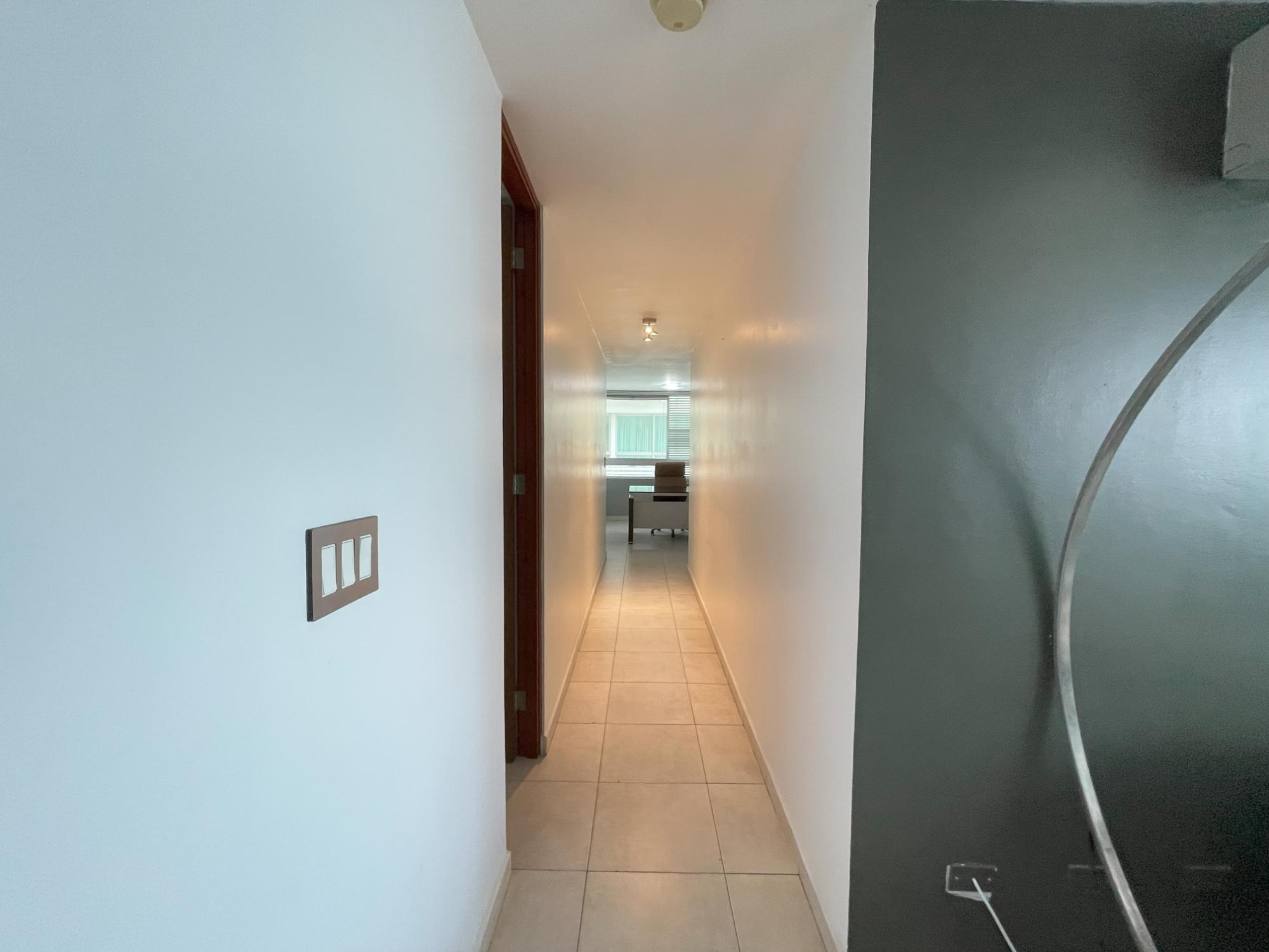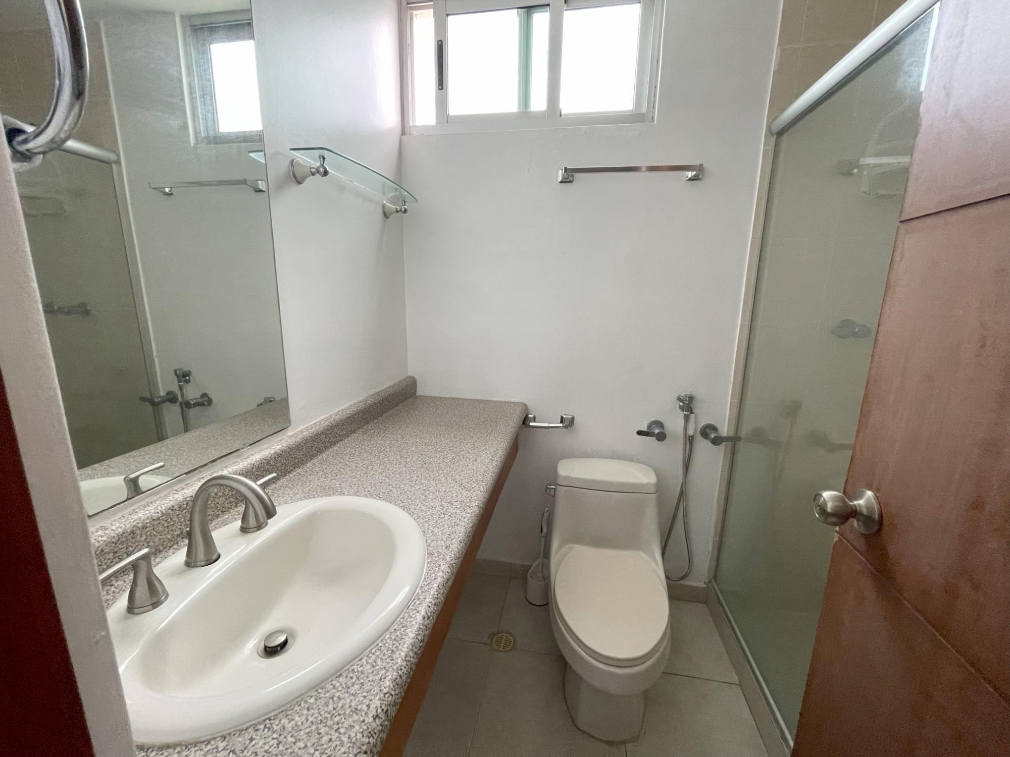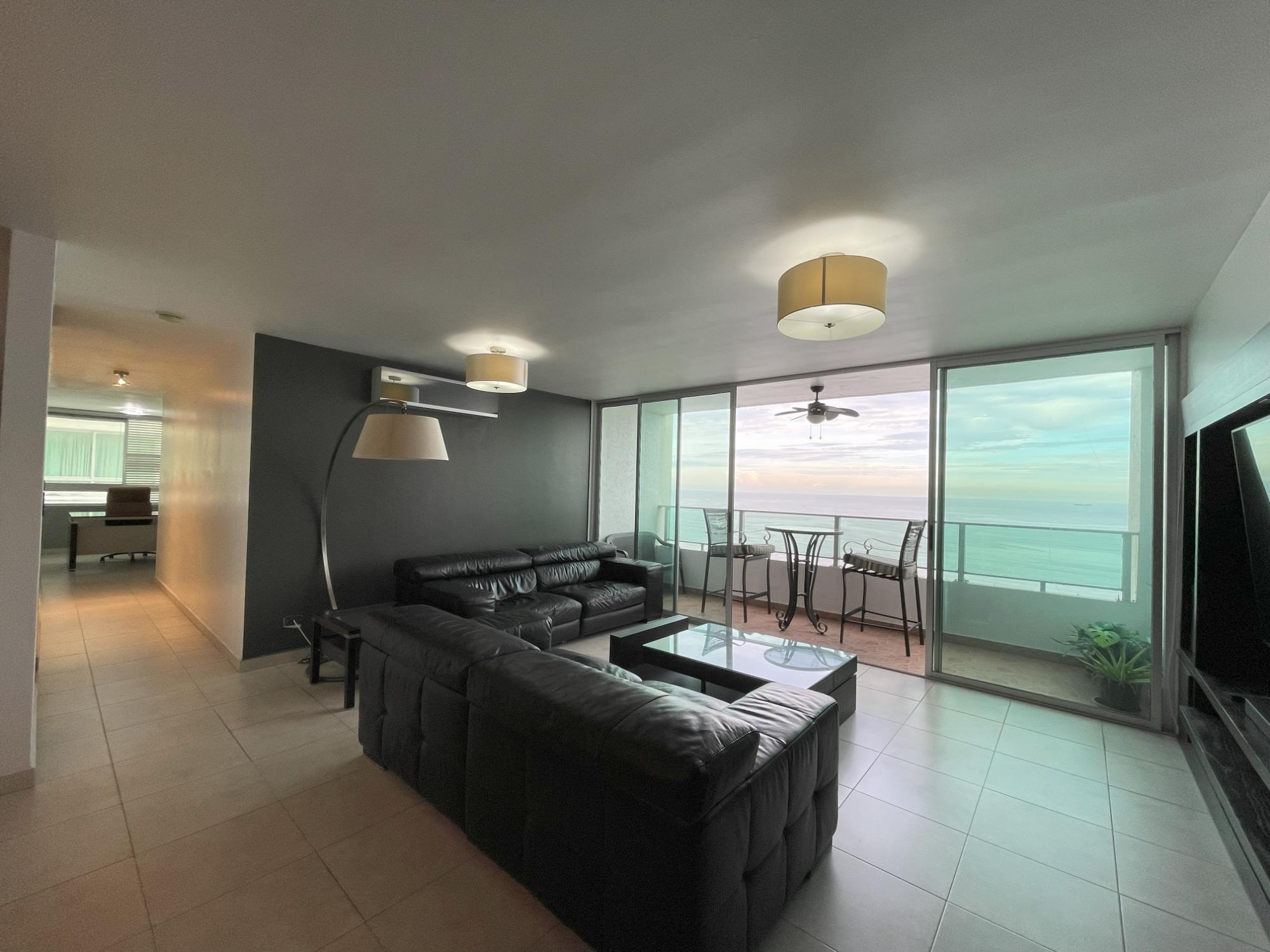 152 m2 Balcony with sea views Furnished 3 bedrooms with walk-in closet and bathroom. Visiting bathroom Den with office furniture. Hall dining room Open kitchen with appliances (fridge, stove, extractor, dishwasher and oven) Laundry room with washer, dryer, tub and water heater 2 parking air conditioners Service room and bathroom Social area with pool Party room, Playground Gym Social area. pets are not accepted.