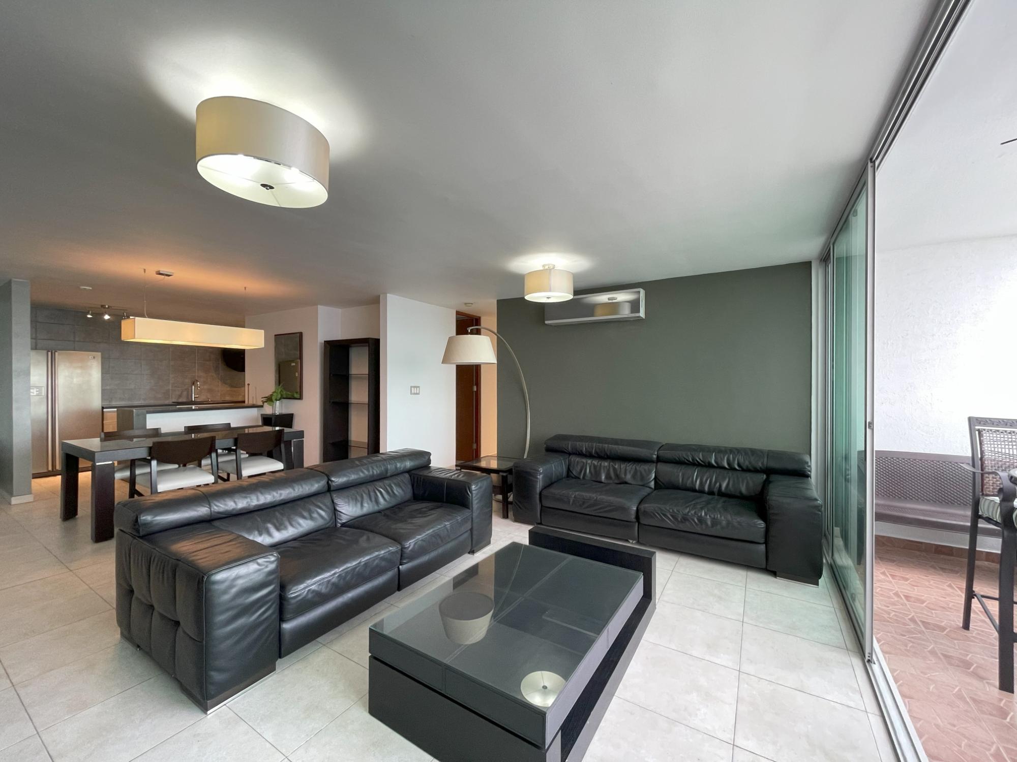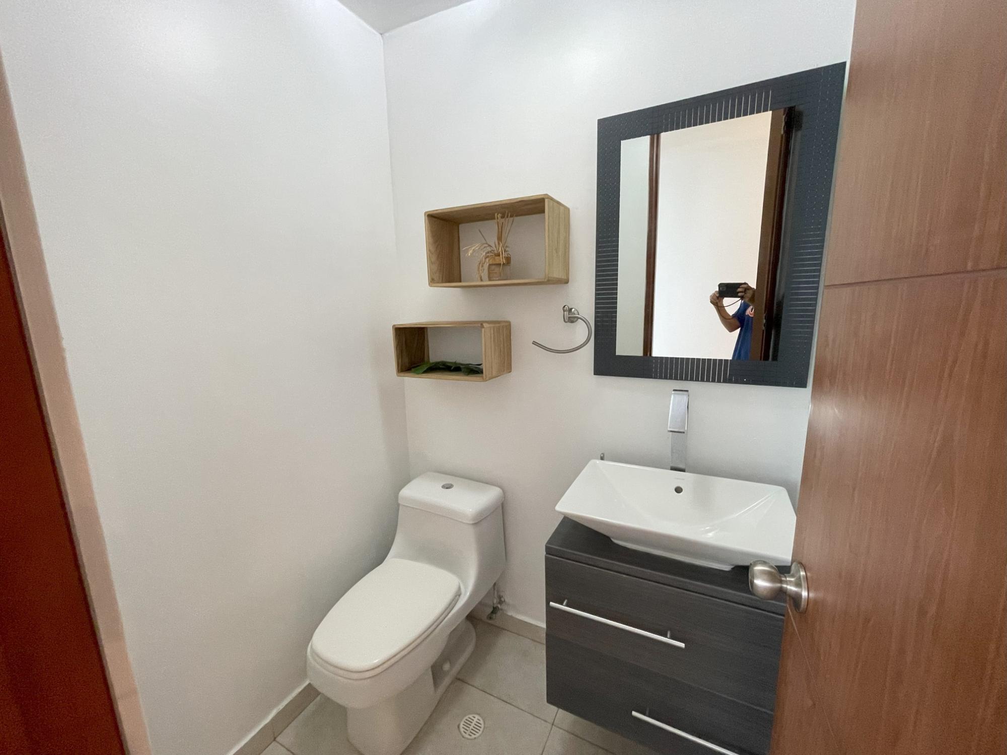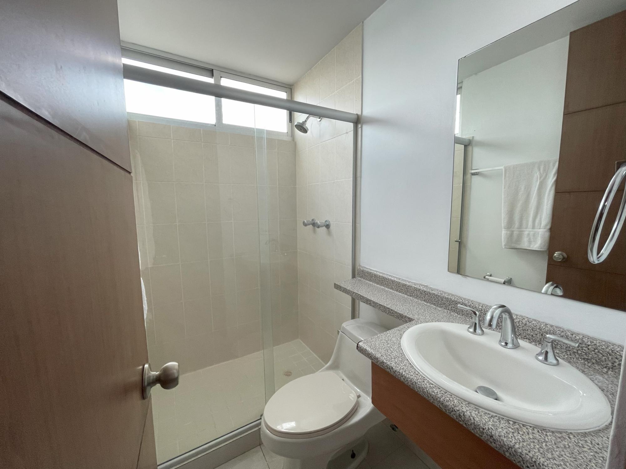 152 m2 Balcony with sea views Furnished 3 bedrooms with walk-in closet and bathroom. Visiting bathroom Den with office furniture. Hall dining room Open kitchen with appliances (fridge, stove, extractor, dishwasher and oven) Laundry room with washer, dryer, tub and water heater 2 parking air conditioners Service room and bathroom Social area with pool Party room, Playground Gym Social area. pets are not accepted.