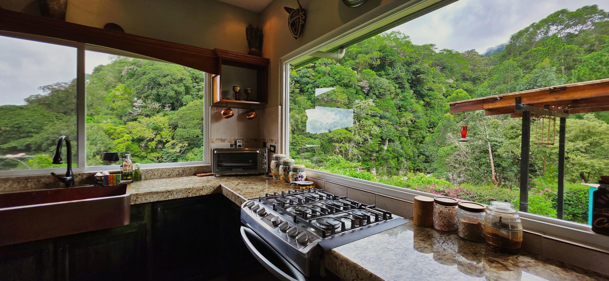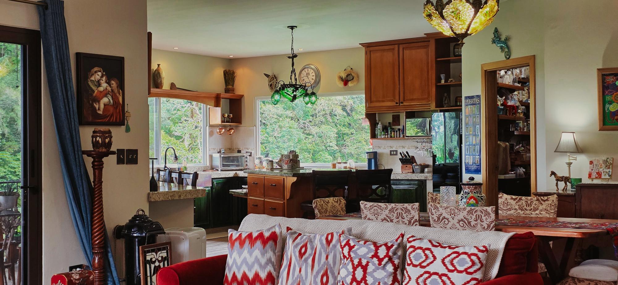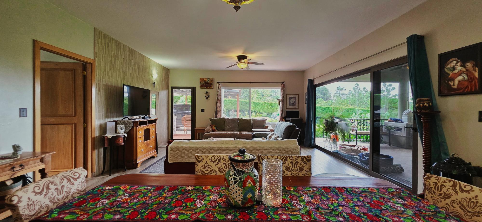 Discover this spectacular mountain residence located in Paso Ancho, Tierras Altas, one of the most coveted areas of Chiriquí. Situated at 1,524 meters above sea level, this property offers a year-round cool climate, fresh air, tranquility, and security in an exclusive gated community bordered by the Chiriqui Viejo River. The house has been completely remodeled to North American standards over the last 6 years, combining modern design with the natural charm of the region. Key Features: Land: 0.61 acres (2,474 m²) with tropical gardens and fruit trees. Total Construction: 316 m² (approximately 3,400 ft²). Enclosed (living) area: 180 m² (approximately 1,938 ft²). Bedrooms: 3 | Bathrooms: 4. Covered terrace with stunning views of the forest, river, and mountains. Featured Amenities: Independent apartment. High-speed internet. 2 backup power stations. Access for people with reduced mobility. Indoor Jacuzzi for 6 people. Outdoor toilet. 10' x 12' storage/wine cellar. Separate laundry room. Location Benefits: Security: Gated community with guaranteed privacy and tranquility. Proximity: Just minutes from downtown Volcán, with supermarkets, banks, restaurants, clinics, pharmacies, and more. Living Nature: Hummingbirds, tanagers, and tropical flora in a year-round spring-like climate. Lifestyle: Perfect for retirement, second home, or family living in a mountain setting with all modern amenities.