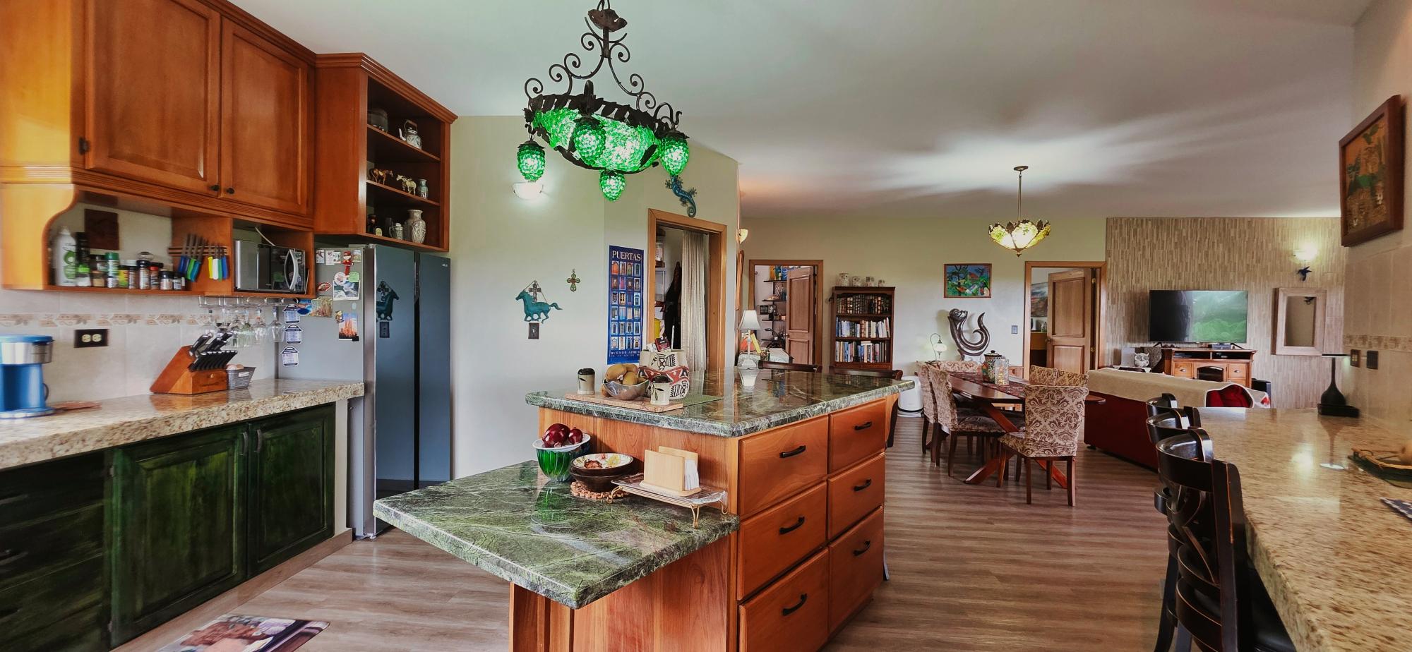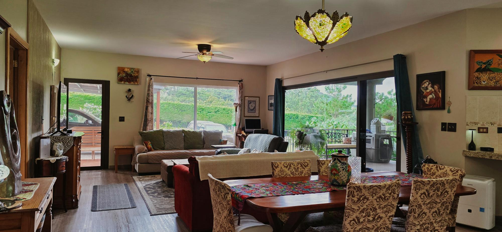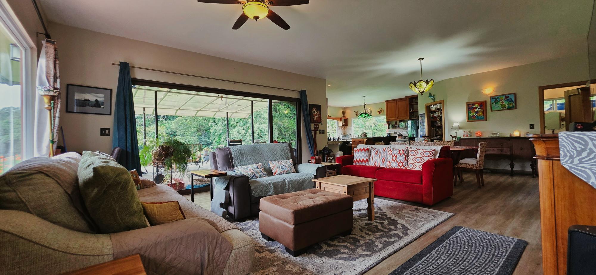 Discover this spectacular mountain residence located in Paso Ancho, Tierras Altas, one of the most coveted areas of Chiriquí. Situated at 1,524 meters above sea level, this property offers a year-round cool climate, fresh air, tranquility, and security in an exclusive gated community bordered by the Chiriqui Viejo River. The house has been completely remodeled to North American standards over the last 6 years, combining modern design with the natural charm of the region. Key Features: Land: 0.61 acres (2,474 m²) with tropical gardens and fruit trees. Total Construction: 316 m² (approximately 3,400 ft²). Enclosed (living) area: 180 m² (approximately 1,938 ft²). Bedrooms: 3 | Bathrooms: 4. Covered terrace with stunning views of the forest, river, and mountains. Featured Amenities: Independent apartment. High-speed internet. 2 backup power stations. Access for people with reduced mobility. Indoor Jacuzzi for 6 people. Outdoor toilet. 10' x 12' storage/wine cellar. Separate laundry room. Location Benefits: Security: Gated community with guaranteed privacy and tranquility. Proximity: Just minutes from downtown Volcán, with supermarkets, banks, restaurants, clinics, pharmacies, and more. Living Nature: Hummingbirds, tanagers, and tropical flora in a year-round spring-like climate. Lifestyle: Perfect for retirement, second home, or family living in a mountain setting with all modern amenities.