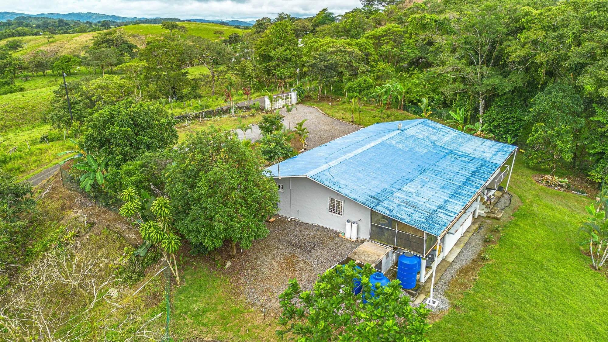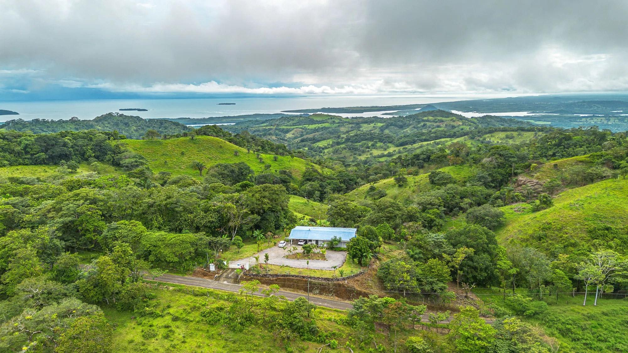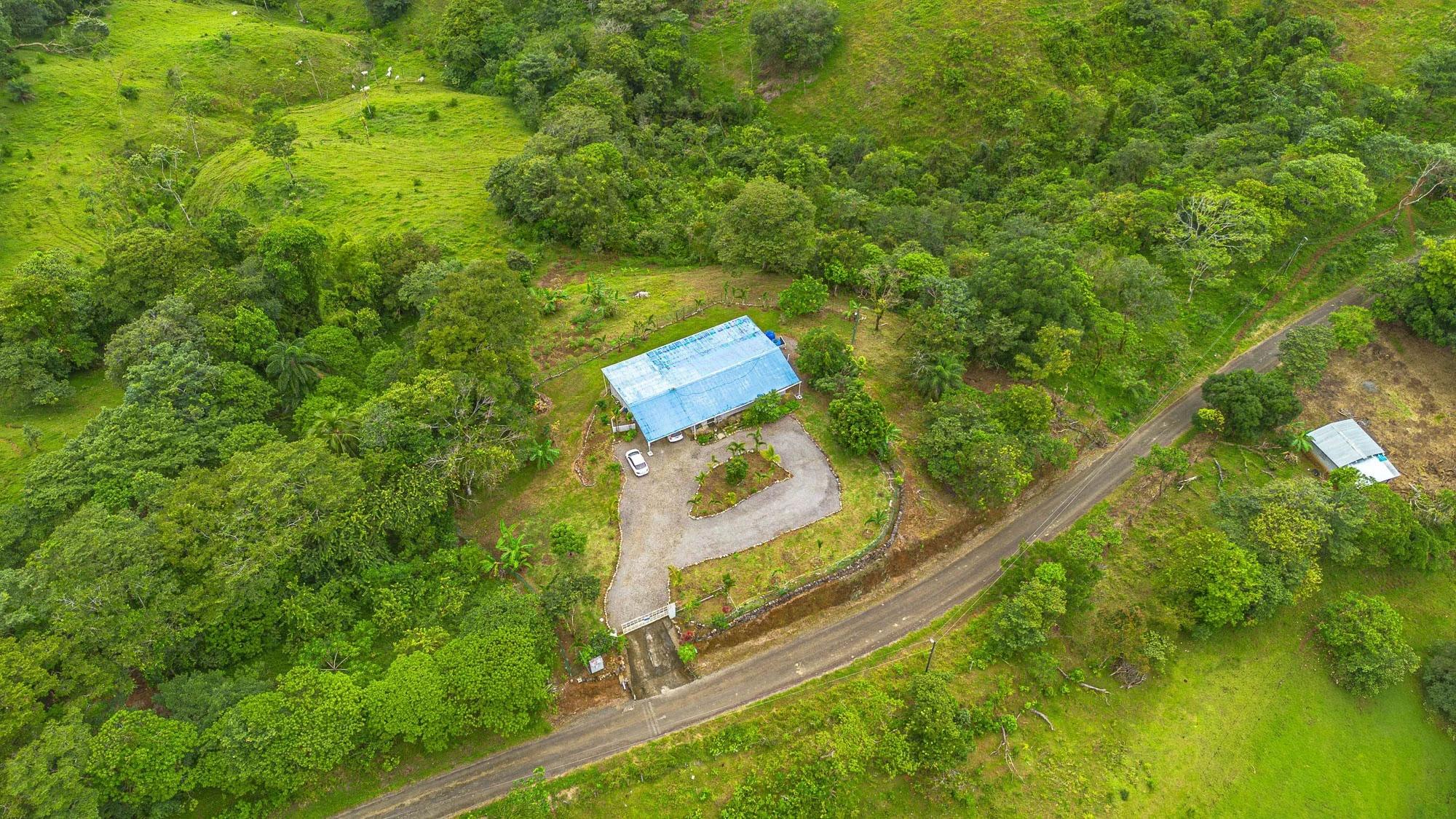 Located in Guabino, Lajas de Tole, this property offers 3,809.73 m² of land and a 215 m² home. The residence includes two bedrooms and two and a half bathrooms. The layout is straightforward, with functional spaces for daily living. The home sits directly on a paved road, only 10 minutes from Lajas de Tole, 25 minutes from Tole town, and 30 minutes from San Felix. In San Felix and Tole you can find shops, banks, a hospital, and restaurants. From the property, it is a 20-minute drive to the highway, and 1.5 hours to David, the second largest city in Panama, with an international airport offering frequent flights to Panama City. Home Features Inside, the home includes a kitchen with granite countertops, wooden cabinetry, and open shelving. A spacious island extends the working and dining area. The living space is open and includes a designated sitting area and access to the terrace. The primary bedroom includes its own bathroom. The guest bedroom is spacious and has a toilet. There is also another full bathroom in the house. Bathrooms are equipped with modern fixtures, and one features a glass block wall for natural light. The terrace is screened, providing an outdoor space for sitting or barbecuing. The home is equipped with three water tanks and a filtration system, ensuring reliable water supply.