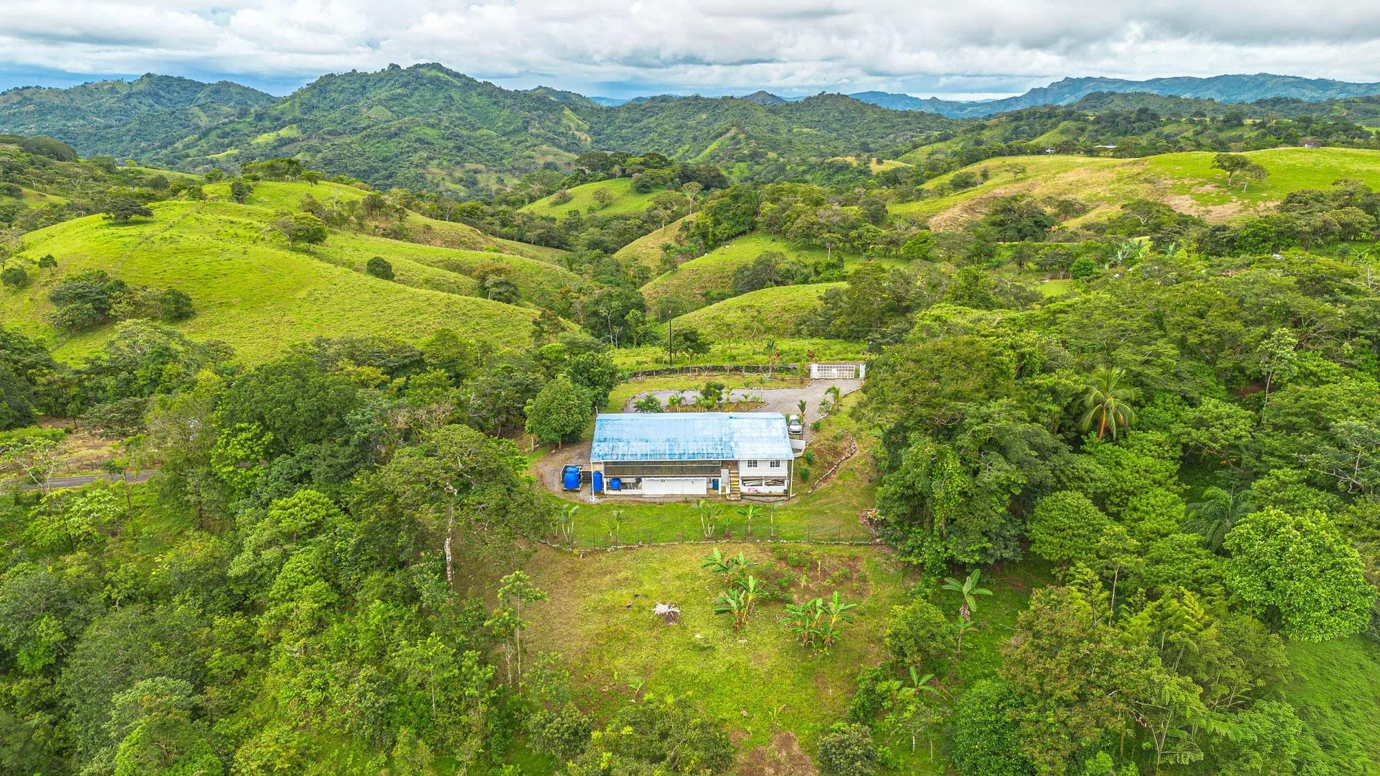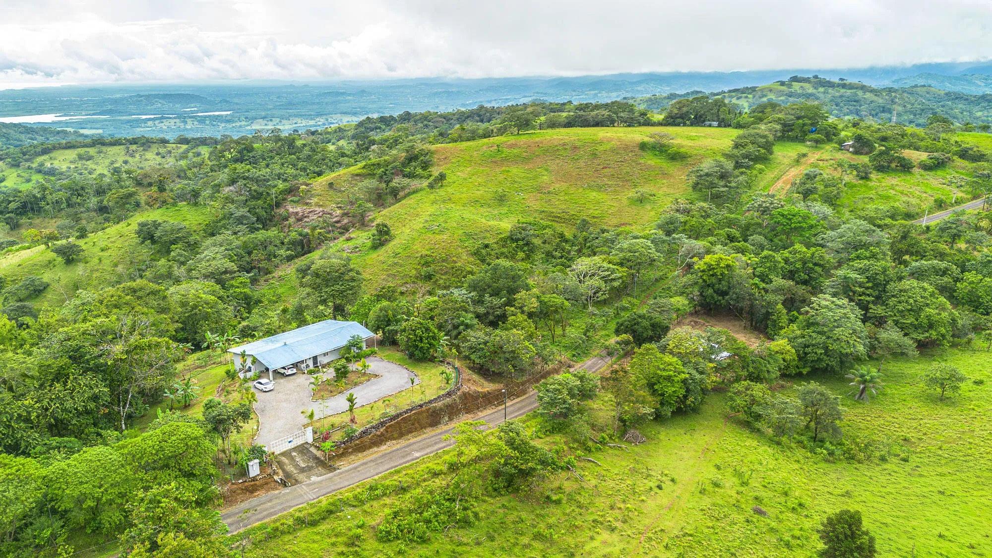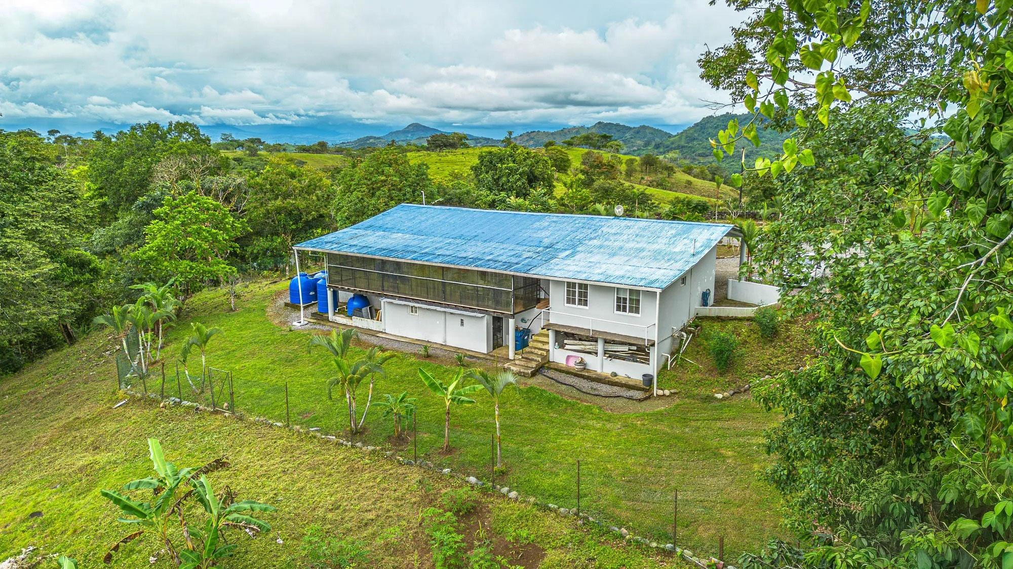 Located in Guabino, Lajas de Tole, this property offers 3,809.73 m² of land and a 215 m² home. The residence includes two bedrooms and two and a half bathrooms. The layout is straightforward, with functional spaces for daily living. The home sits directly on a paved road, only 10 minutes from Lajas de Tole, 25 minutes from Tole town, and 30 minutes from San Felix. In San Felix and Tole you can find shops, banks, a hospital, and restaurants. From the property, it is a 20-minute drive to the highway, and 1.5 hours to David, the second largest city in Panama, with an international airport offering frequent flights to Panama City. Home Features Inside, the home includes a kitchen with granite countertops, wooden cabinetry, and open shelving. A spacious island extends the working and dining area. The living space is open and includes a designated sitting area and access to the terrace. The primary bedroom includes its own bathroom. The guest bedroom is spacious and has a toilet. There is also another full bathroom in the house. Bathrooms are equipped with modern fixtures, and one features a glass block wall for natural light. The terrace is screened, providing an outdoor space for sitting or barbecuing. The home is equipped with three water tanks and a filtration system, ensuring reliable water supply.