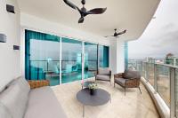 Spectacular apartment with a beautiful ocean view in PH Pacific Village. It features the following layout: 262 sq m, 3 bedrooms, 3.5 bathrooms, living room, family room, dining room, kitchen, laundry area, maid's quarters with bathroom, large balcony, and 2 parking spaces. The building offers a social area, children's playground, swimming pool, gym, spa, basketball court, and soccer field. This project is exceptionally well-located, very close to schools, hospitals, shopping centers, supermarkets, marinas, and the entrance to the South Corridor! See the virtual tour: https://my.matterport.com/show/?m=hecYvx12x5X Contact us for more information or to schedule an appointment! ID 13380