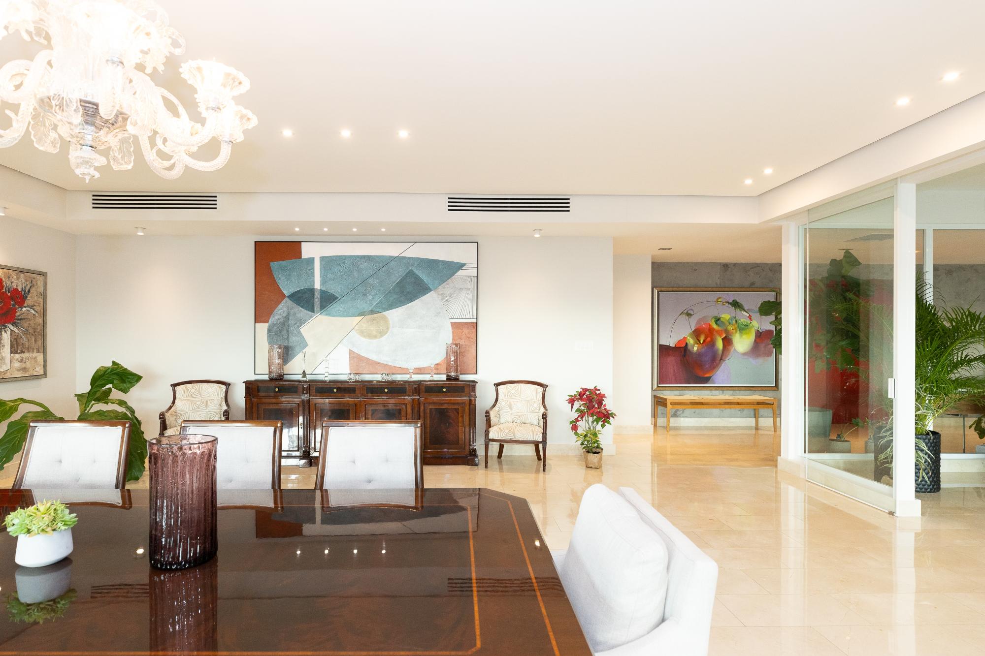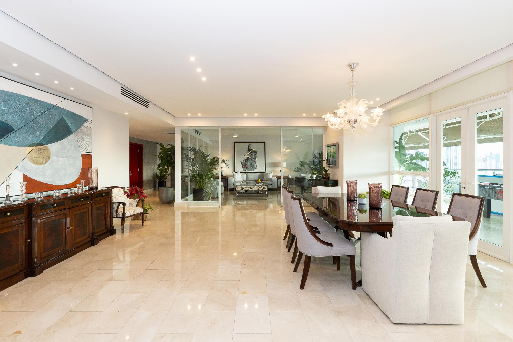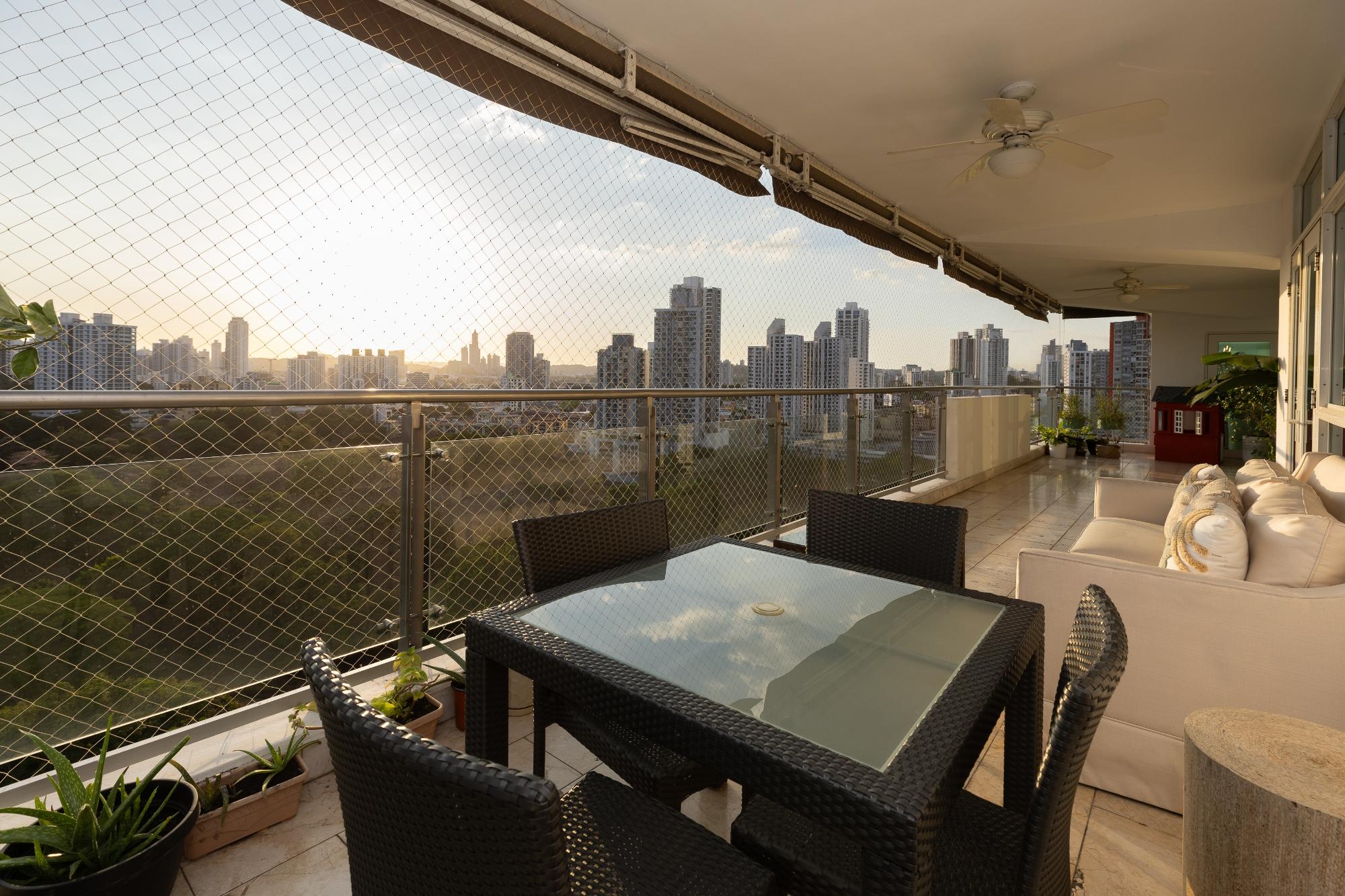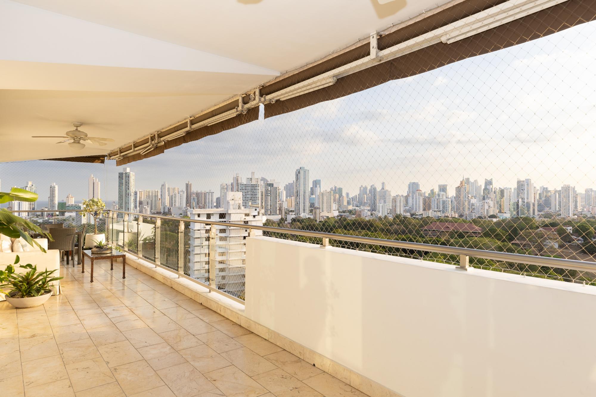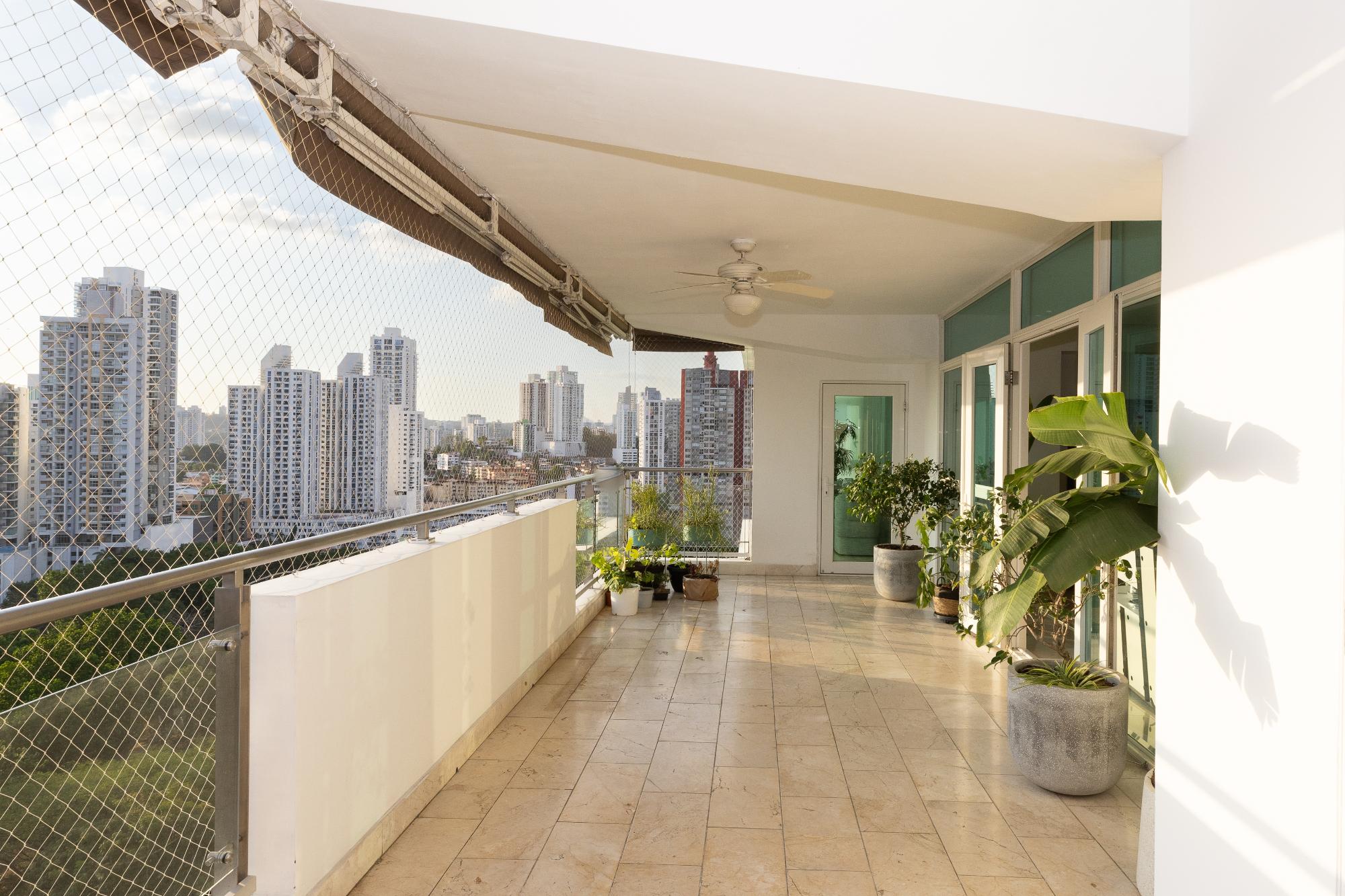 Luxury apartment for sale in Altos del Golf, PH Pradera, an exceptional 540 m² residence offering spaciousness, elegance, and an unbeatable location facing Omar Park, combining permanent green views with the convenience of living in the heart of the city; it features an entrance hall, a large living room with access to a panoramic balcony, a den or family room, a separate dining room, a guest bathroom, a modern kitchen with breakfast bar, pantry and storage room, laundry room and service area with bedroom and bathroom, a master bedroom with a luxury bathroom, a study and two walk-in closets, three secondary bedrooms each with its own bathroom and walk-in closet, central air conditioning, four parking spaces and two private storage units, within a PH that offers a swimming pool and terrace overlooking the park, a gym, changing rooms, a generator, a water reserve and 24/7 security, ideal for families seeking luxury, privacy and one of the most prestigious residential areas in Panama.