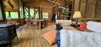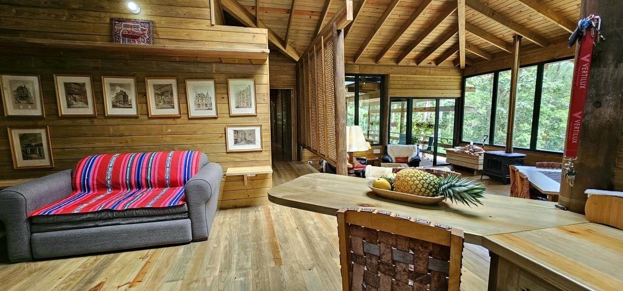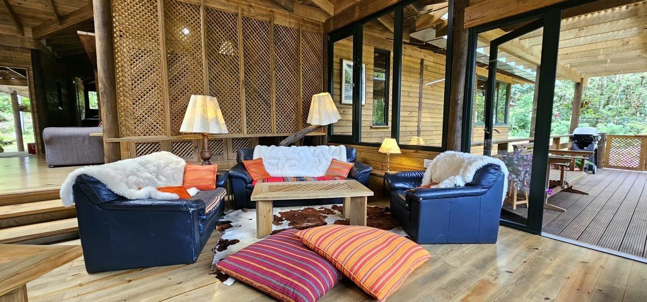 Welcome to the tropical paradise of Tierras Altas, Cerro Punta, in the exclusive Guadalupe area. Discover a unique home surrounded by lush tropical forests, where nature is your neighbor and adventure awaits around every corner. This stunning home, built with imported pine wood and treated with a 20-year warranty, has been designed for nature lovers seeking a life of luxury and comfort in an unparalleled setting. Just three years old, this property is a true gem. Located approximately 2,200 meters above sea level, you'll enjoy an average temperature of 14°C, providing a cool and rejuvenating climate year-round. The property spans 22,205.31 m², and the approximately 430 m² covered construction complex includes a cabin/sauna, parking, and storage, in addition to the impressive main residence. The house features three spacious bedrooms and three bathrooms, including a master suite with its own private sauna. The architectural design, led by award-winning architect Alfredo Boza, features expansive windows that offer panoramic views of the surrounding area and flood every corner of the house with natural light. In the evenings, relax by the cast-iron fireplace in the spacious living and dining room. The large terrace is the perfect place to unwind and enjoy the tranquility of the surroundings. Imported tilt-and-turn windows add an elegant and functional touch to the property. The beautiful gardens surrounding the house offer an oasis of peace and serenity, while eucalyptus trees line the entrance, providing added privacy. This property is sold unfurnished.