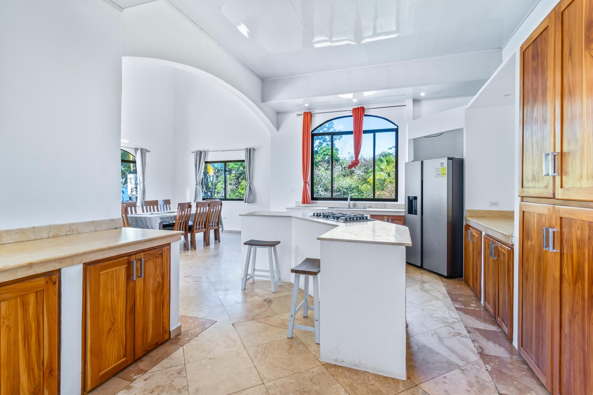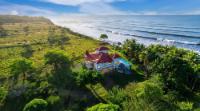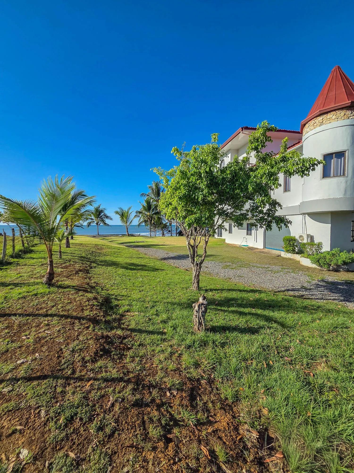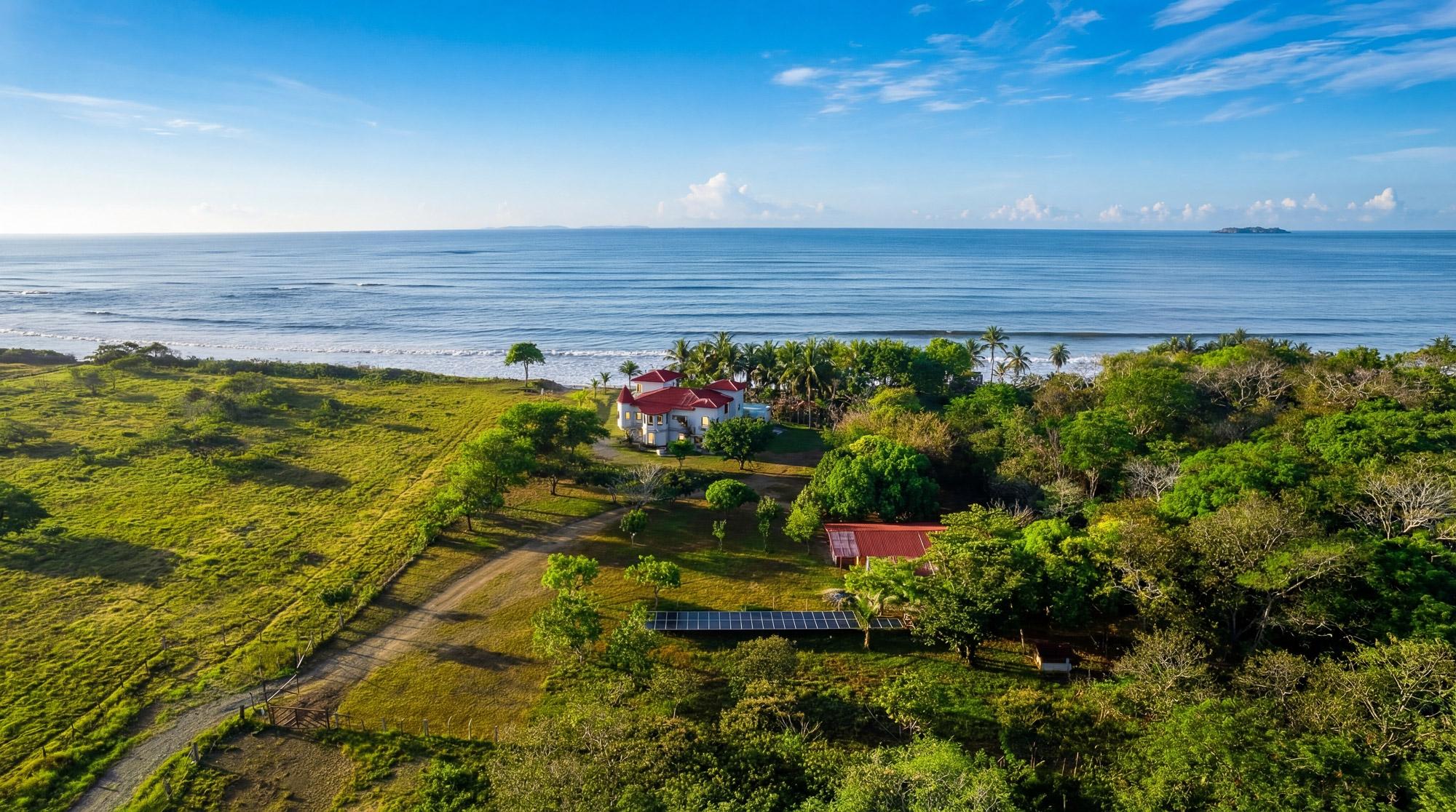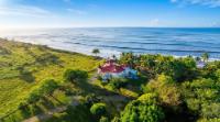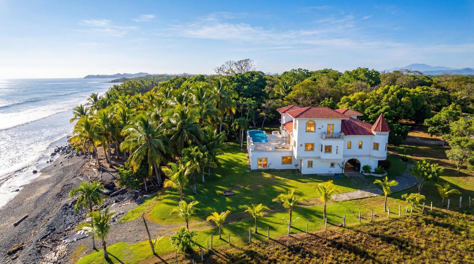 Esta propiedad de 1.5 hectáreas (3.7 acres) frente al mar se encuentra en una tranquila zona de Playa Nanzal, con acceso directo al océano y vistas abiertas al mar. Se encuentra separada de la densa urbanización costera, lo que proporciona un entorno más privado con poca luz nocturna y una atmósfera abierta y natural. El terreno se integra con zonas abiertas frente al mar y ajardinadas ligeramente hacia el interior, creando una fluidez práctica y natural entre la casa y la costa. La residencia principal cuenta con seis dormitorios y seis baños, con techos altos y grandes aberturas que aportan luz natural y mantienen una fuerte conexión con el exterior. Una espaciosa y moderna cocina es el centro de la casa, tanto para la vida diaria como para uso en grupo. La propiedad se vende amueblada e incluye electrodomésticos, aire acondicionado y ventiladores de techo, lo que permite su ocupación inmediata. Las zonas exteriores incluyen una piscina enterrada y un amplio patio entre la casa y el océano, lo que permite disfrutar del aire libre a diario. El terreno incluye palmeras maduras y árboles frutales, a la vez que conserva vistas abiertas al agua y espacio para futuros usos. La propiedad cuenta con estacionamiento cubierto para hasta cuatro vehículos, un sistema de energía solar con generador de respaldo y un pozo de agua privado. También incluye una casa independiente para el cuidador. El acceso es por un camino de tierra, más adecuado para vehículos de mayor altura, y se están realizando mejoras en el camino. Se ofrece una hectárea adicional de terreno frente al mar como opción.