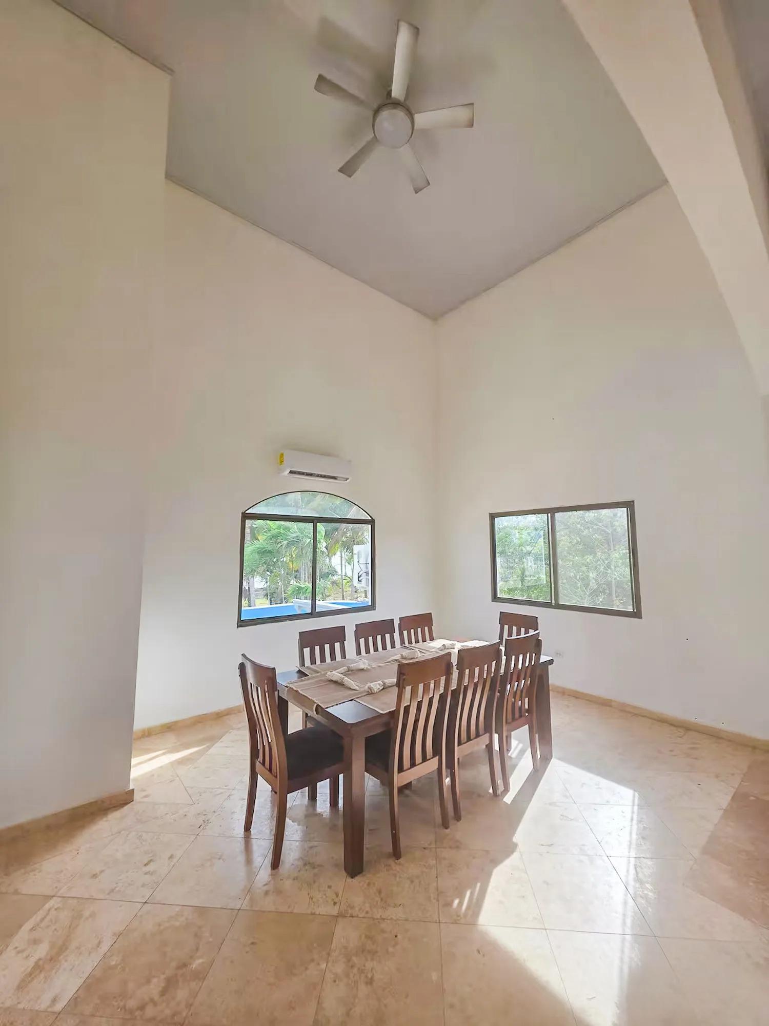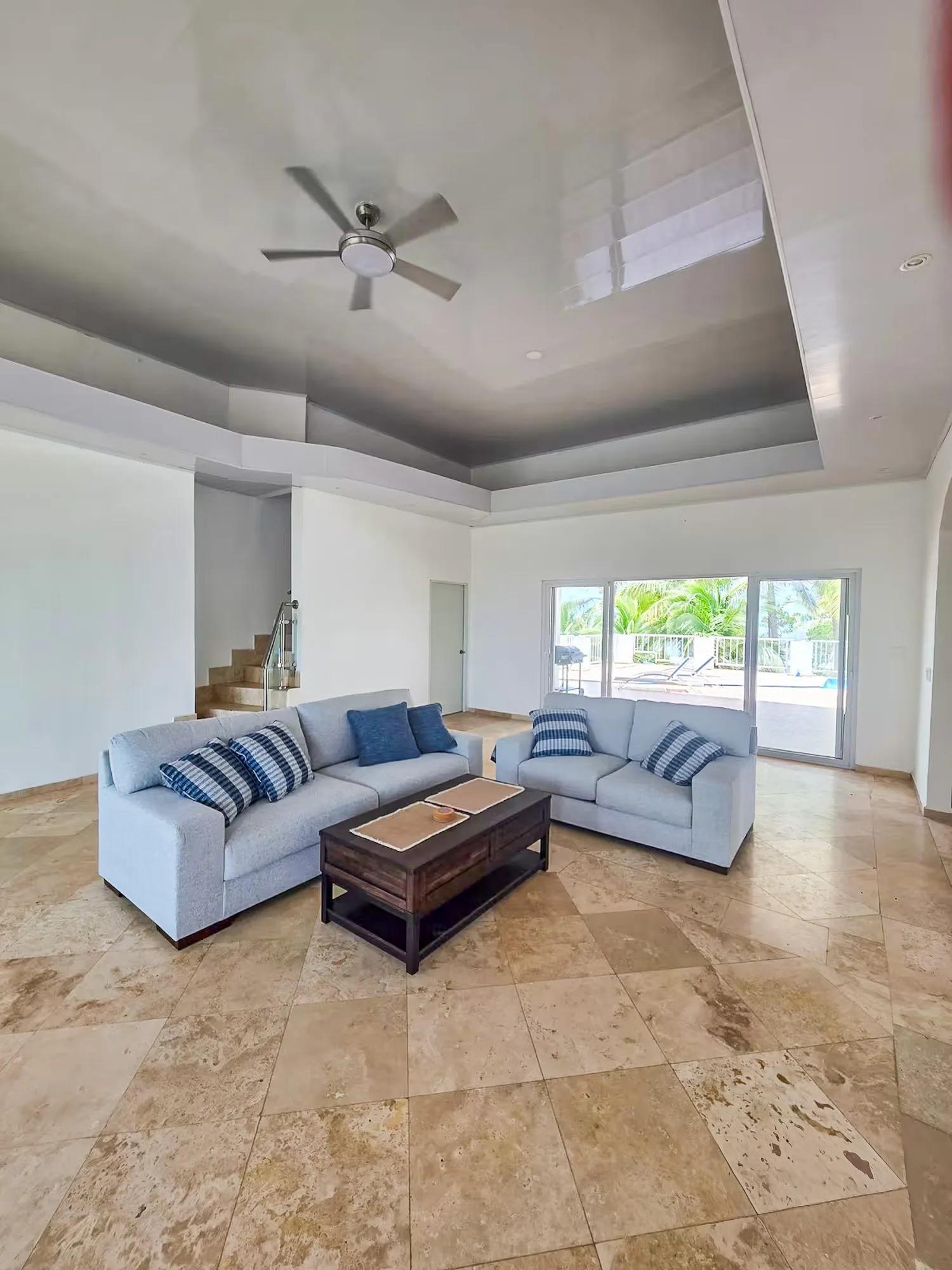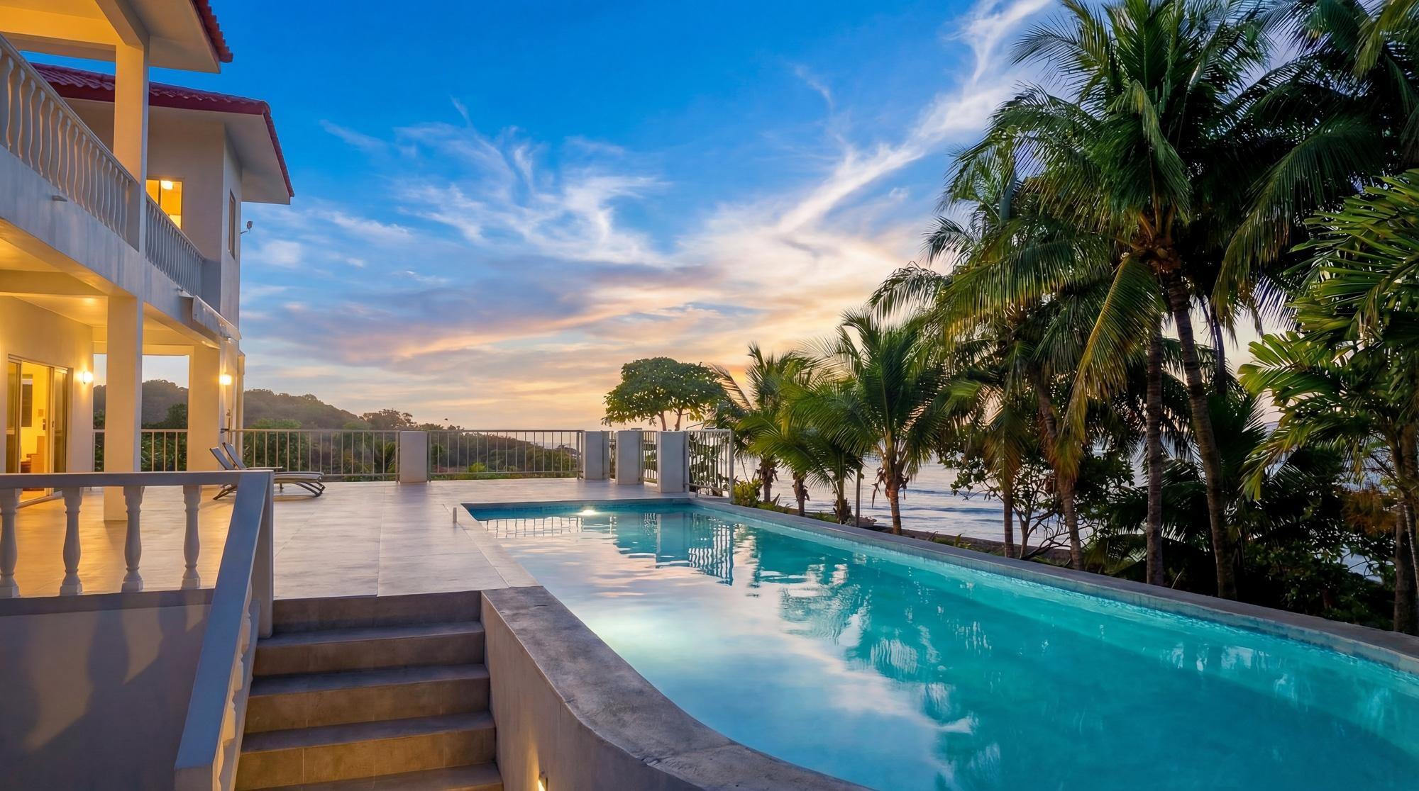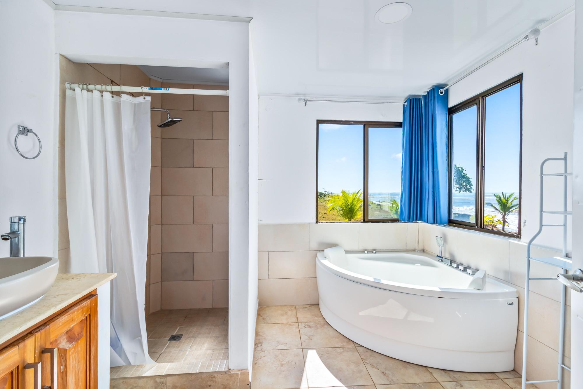 Esta propiedad de 1.5 hectáreas (3.7 acres) frente al mar se encuentra en una tranquila zona de Playa Nanzal, con acceso directo al océano y vistas abiertas al mar. Se encuentra separada de la densa urbanización costera, lo que proporciona un entorno más privado con poca luz nocturna y una atmósfera abierta y natural. El terreno se integra con zonas abiertas frente al mar y ajardinadas ligeramente hacia el interior, creando una fluidez práctica y natural entre la casa y la costa. La residencia principal cuenta con seis dormitorios y seis baños, con techos altos y grandes aberturas que aportan luz natural y mantienen una fuerte conexión con el exterior. Una espaciosa y moderna cocina es el centro de la casa, tanto para la vida diaria como para uso en grupo. La propiedad se vende amueblada e incluye electrodomésticos, aire acondicionado y ventiladores de techo, lo que permite su ocupación inmediata. Las zonas exteriores incluyen una piscina enterrada y un amplio patio entre la casa y el océano, lo que permite disfrutar del aire libre a diario. El terreno incluye palmeras maduras y árboles frutales, a la vez que conserva vistas abiertas al agua y espacio para futuros usos. La propiedad cuenta con estacionamiento cubierto para hasta cuatro vehículos, un sistema de energía solar con generador de respaldo y un pozo de agua privado. También incluye una casa independiente para el cuidador. El acceso es por un camino de tierra, más adecuado para vehículos de mayor altura, y se están realizando mejoras en el camino. Se ofrece una hectárea adicional de terreno frente al mar como opción.