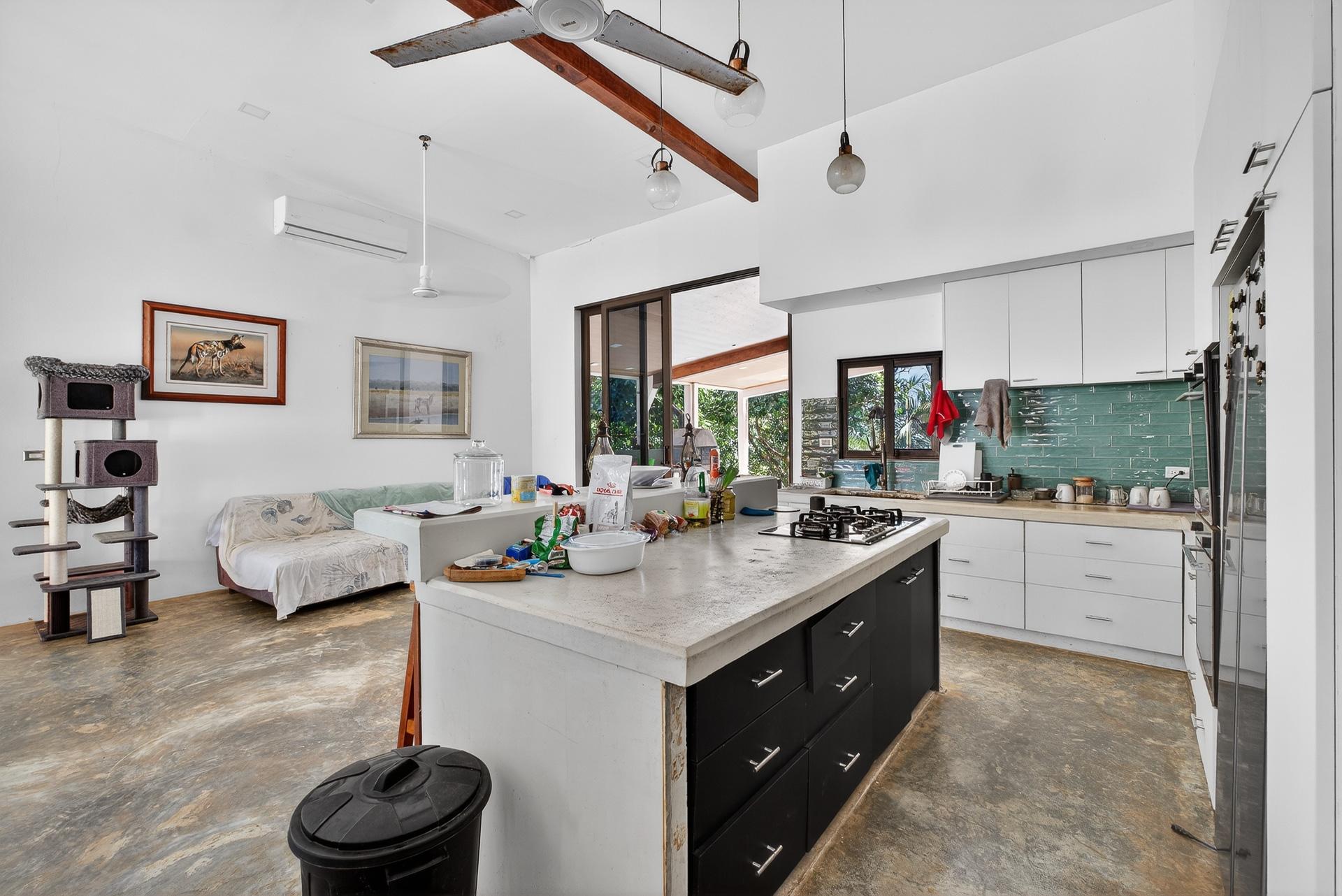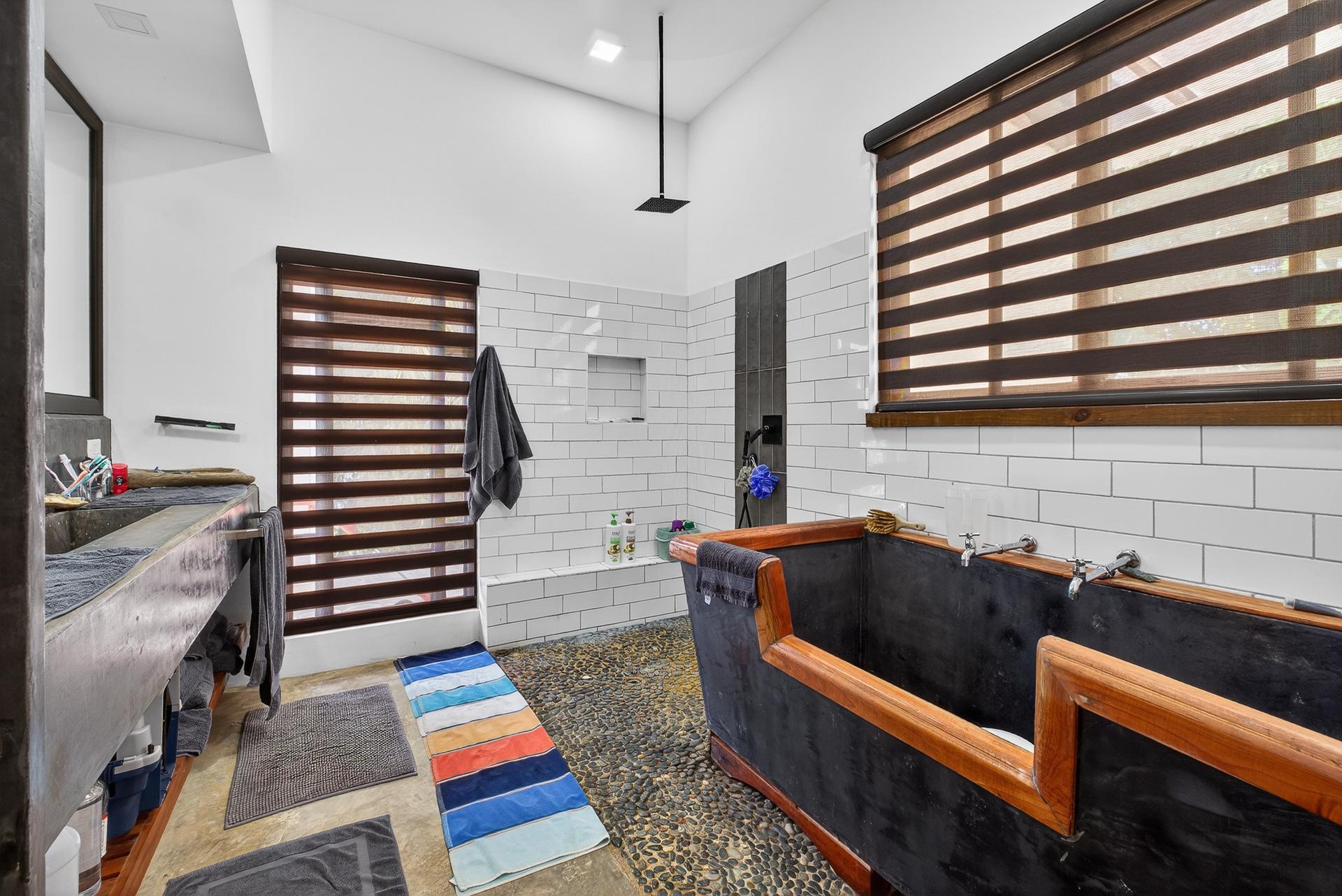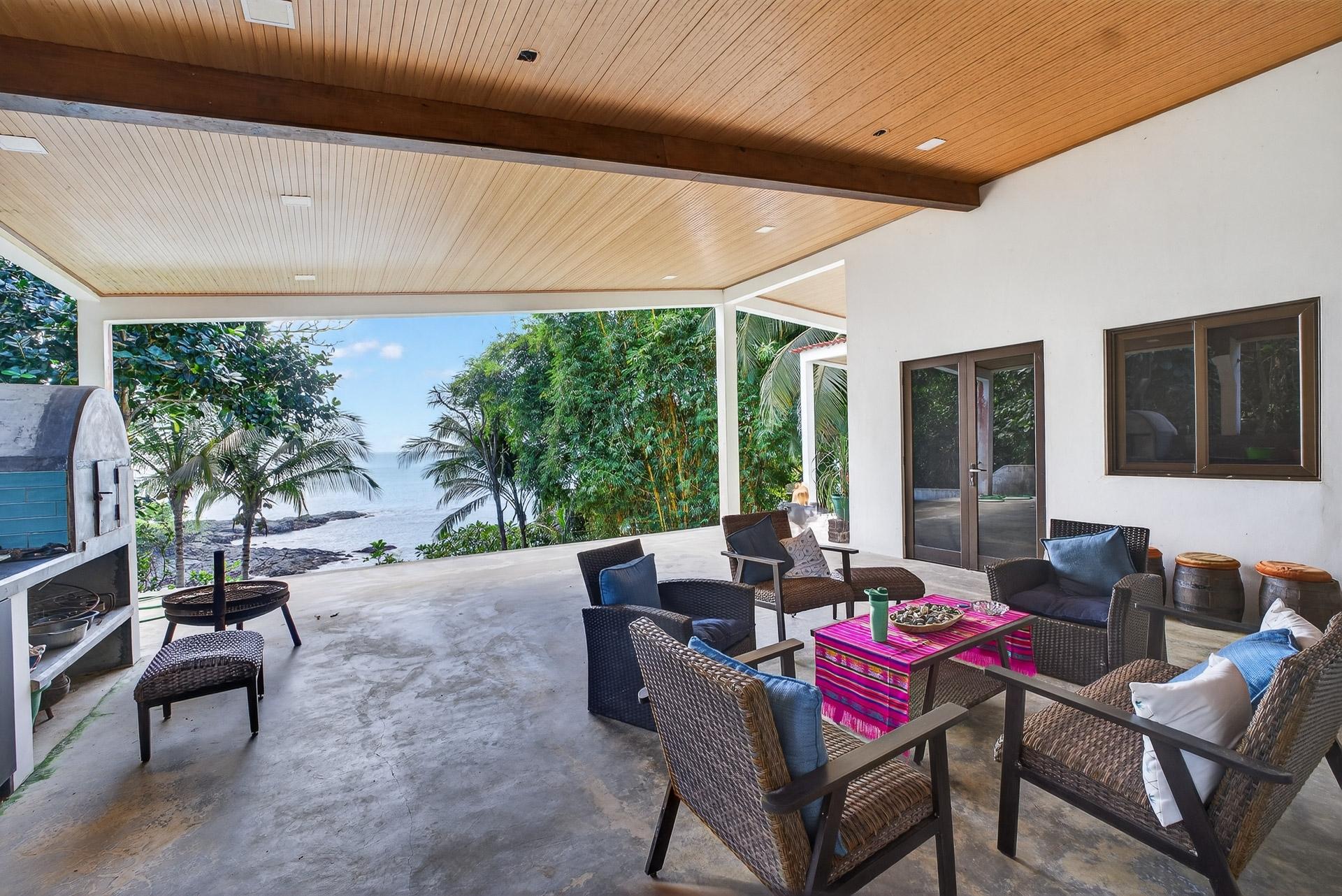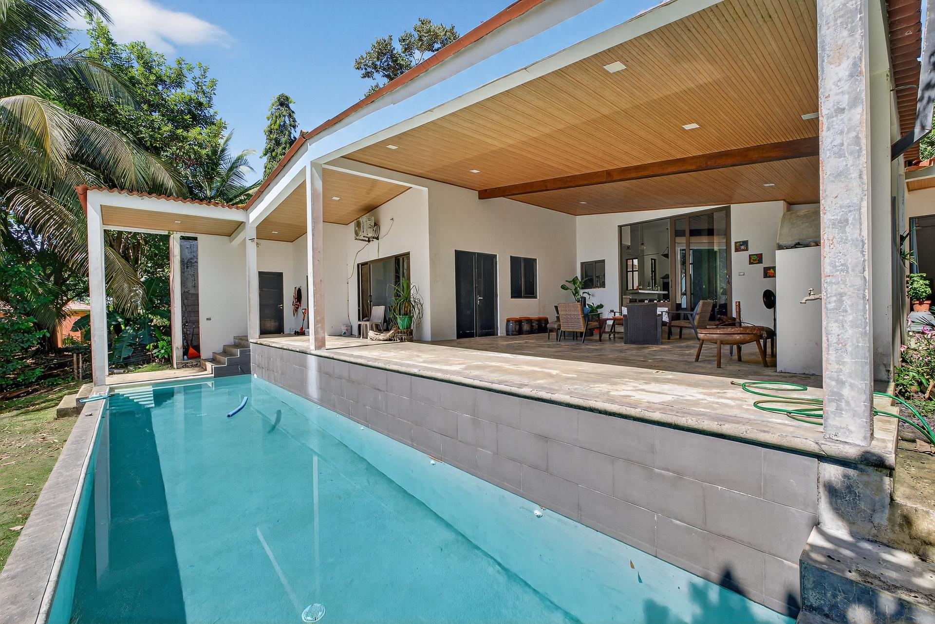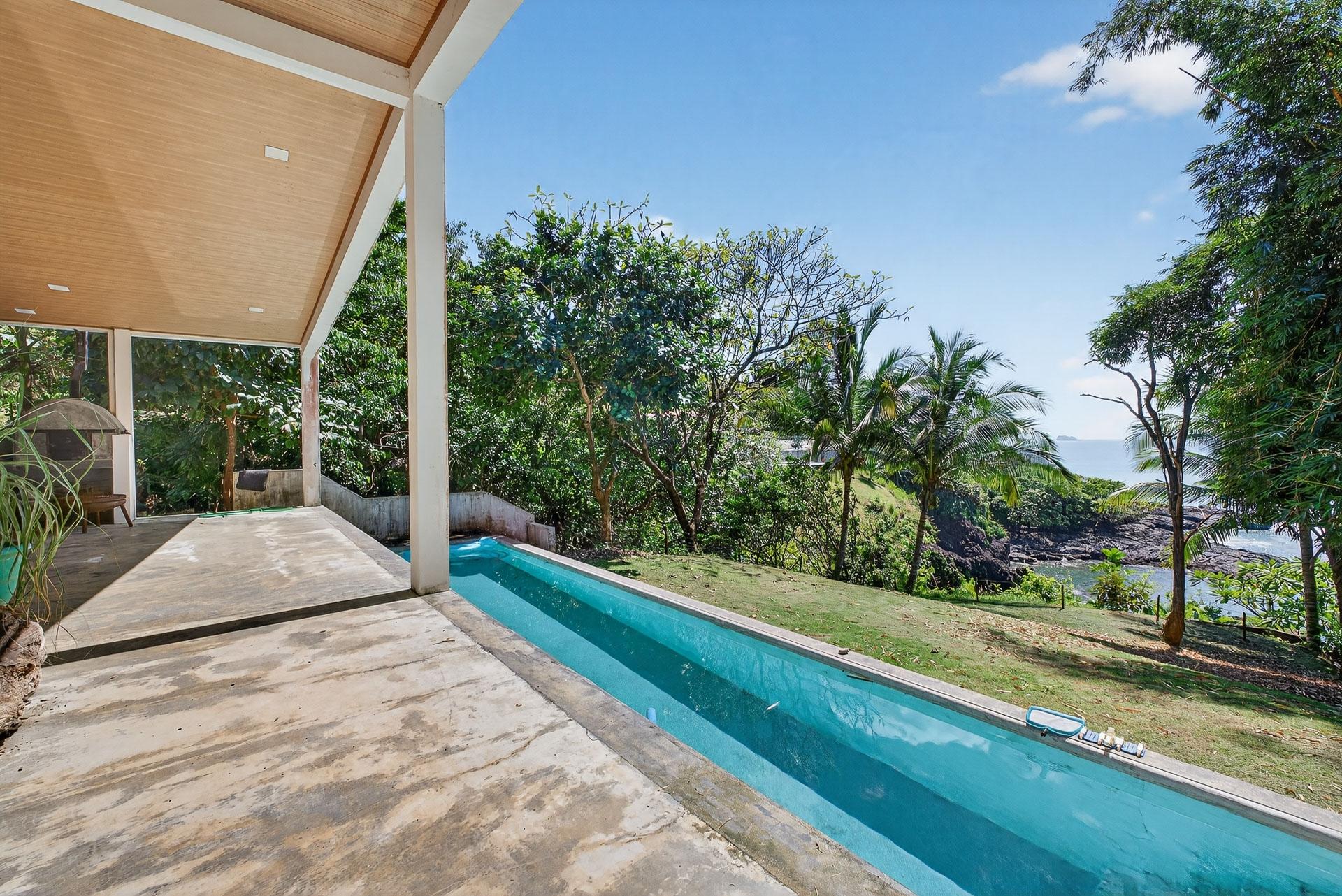 Esta casa de reciente construcción, terminada en los últimos dos años, se encuentra en la tranquila comunidad costera privada de Mata Oscura y ofrece un entorno privado con vistas al mar. Diseñada en un moderno estilo tropical, la casa combina líneas arquitectónicas limpias, materiales naturales y amplias aberturas que conectan los espacios interiores con el paisaje circundante y el Océano Pacífico. La distribución se centra en salas de estar abiertas con techos altos y amplios ventanales que permiten que la luz natural fluya por toda la casa, enmarcando las vistas a la vegetación y la costa. Los suelos de hormigón pulido y los acabados minimalistas crean una atmósfera contemporánea y sobria. La cocina abierta está integrada en la sala de estar principal, permitiendo tanto el uso diario como el entretenimiento informal. La vida al aire libre es fundamental en el diseño. Una terraza cubierta se extiende desde la sala de estar principal y da a una amplia piscina de entrenamiento, ubicada para aprovechar al máximo las vistas al mar. La vegetación madura rodea la propiedad, brindando privacidad y manteniendo la conexión visual con el mar. La elevación de la casa y su proximidad a las olas la hacen especialmente atractiva para quienes buscan un fácil acceso al mar sin sacrificar la privacidad. La propiedad cuenta con título de propiedad y conexión a electricidad y agua, lo que ofrece la comodidad de vivir conectado a la red en un entorno seguro y de baja densidad. Las casas vecinas están bien espaciadas, lo que refuerza la sensación de privacidad y tranquilidad. Esta casa es ideal como residencia principal, segunda residencia o propiedad de alquiler de alta calidad para quienes buscan un estilo de vida costero moderno en una comunidad costera privada y cuidadosamente desarrollada. La casa tiene un tamaño aproximado de 100 m².