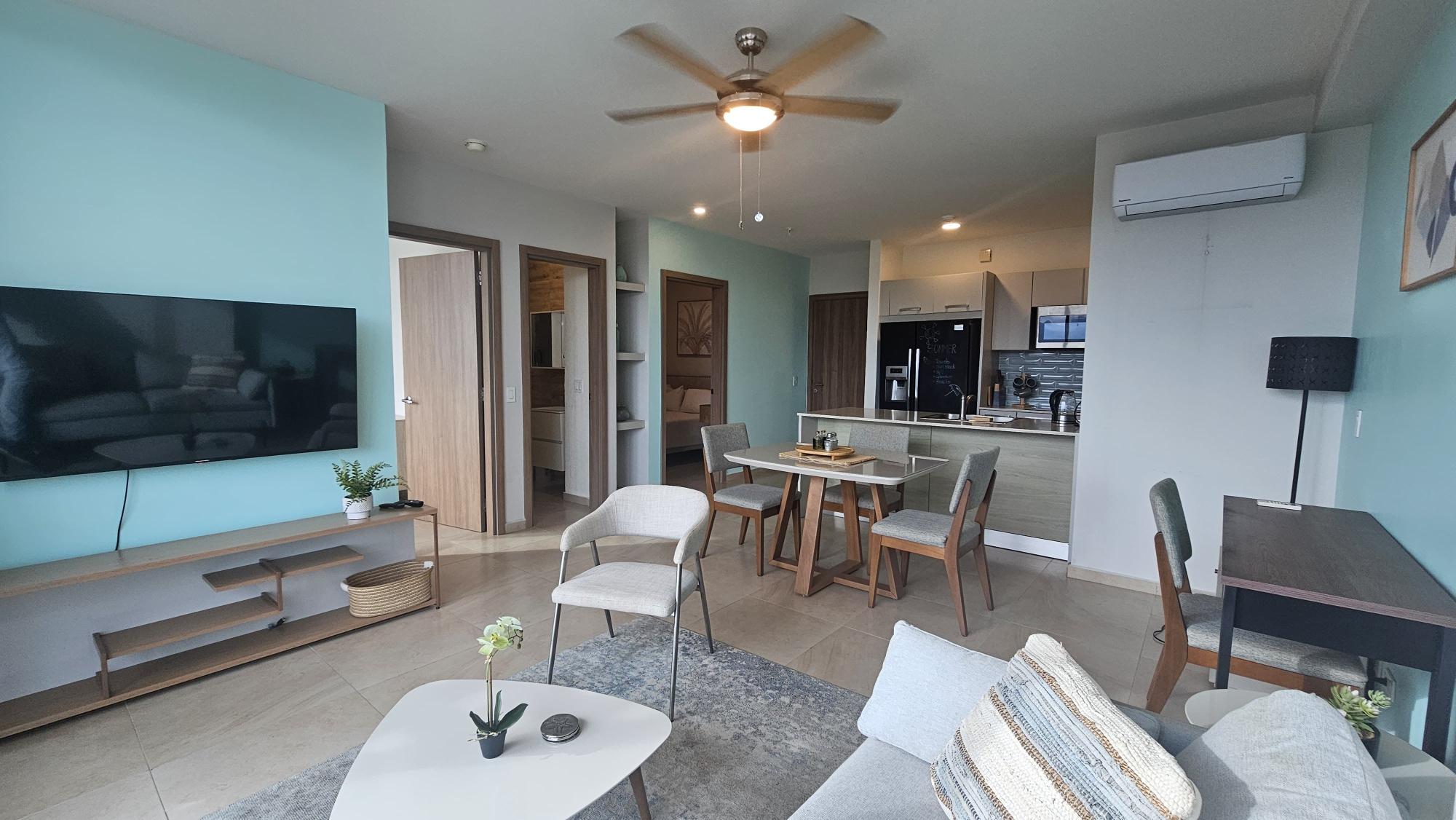 Welcome to PH Royal Palm, a beachfront complex located in Nueva Gorgona, offering the perfect balance between coastal living and everyday convenience. Just 10 minutes from Coronado Center, residents enjoy easy access to banks, medical facilities, supermarkets, shops, and a wide selection of restaurants. This 70 m² (754 sq ft) residence is situated on the sunrise side of the building, welcoming you each morning with spectacular ocean sunrises enjoyed directly from both the balcony and the bedroom. The apartment is sold fully furnished and includes a dedicated desk area, ideal for those who work remotely or need a comfortable home office space. The layout features two enclosed bedrooms and one full bathroom with shower and sink. The open-concept kitchen flows seamlessly into the living area, offering beautiful views of the Chame mountains, which gradually transition into ocean views as you step onto the balcony—creating a unique and inviting atmosphere. Pet lovers will appreciate that the building is pet-friendly and includes a small dog park for your furry companions. With its versatile layout and prime location, this apartment is ideal for a small family, a couple, or an individual who values extra space to host friends and family. Whether you are looking to purchase or rent, this property represents an excellent opportunity to enjoy beachfront living at a great value. Don’t miss the chance to make PH Royal Palm your new home or investment.