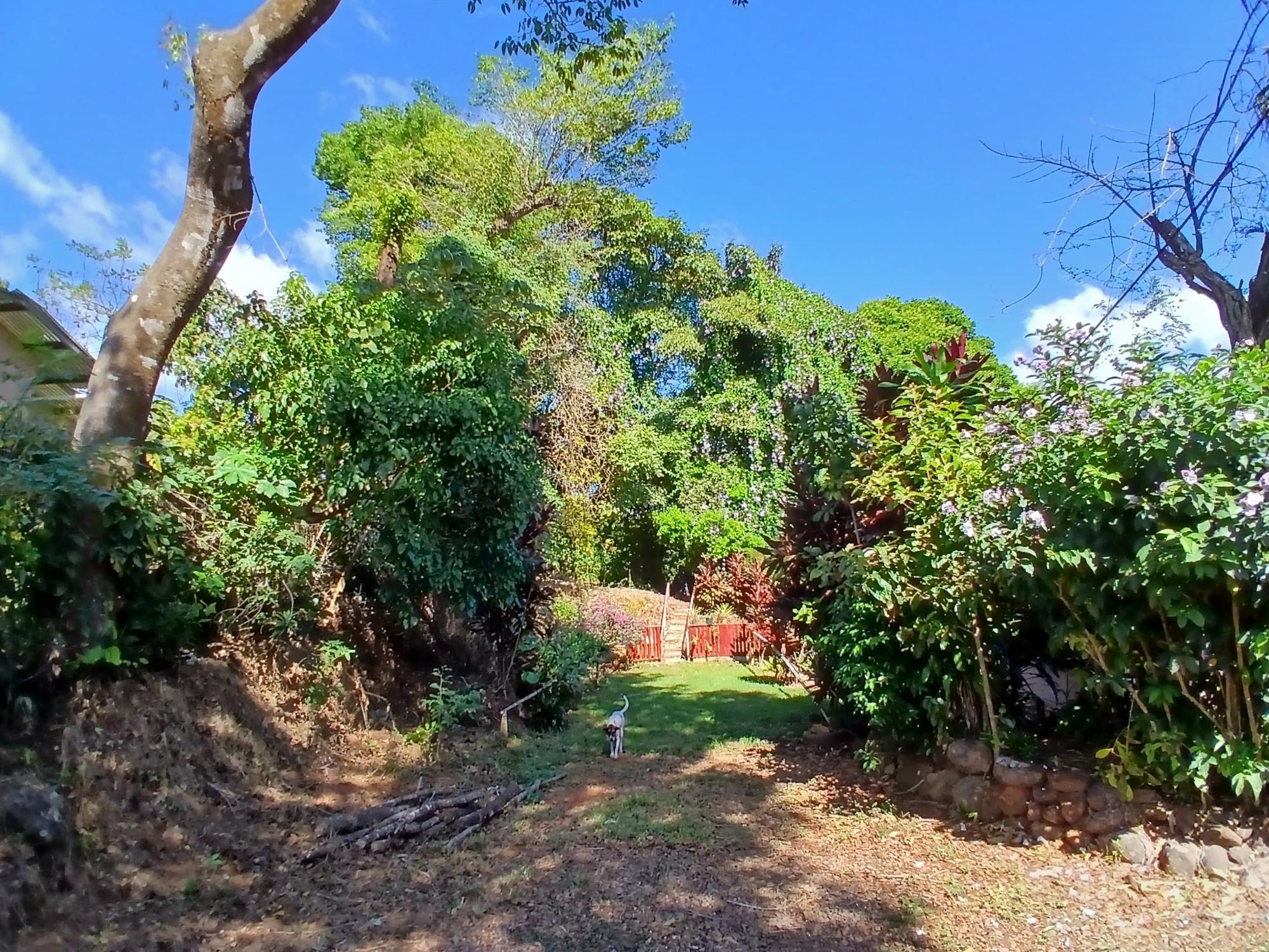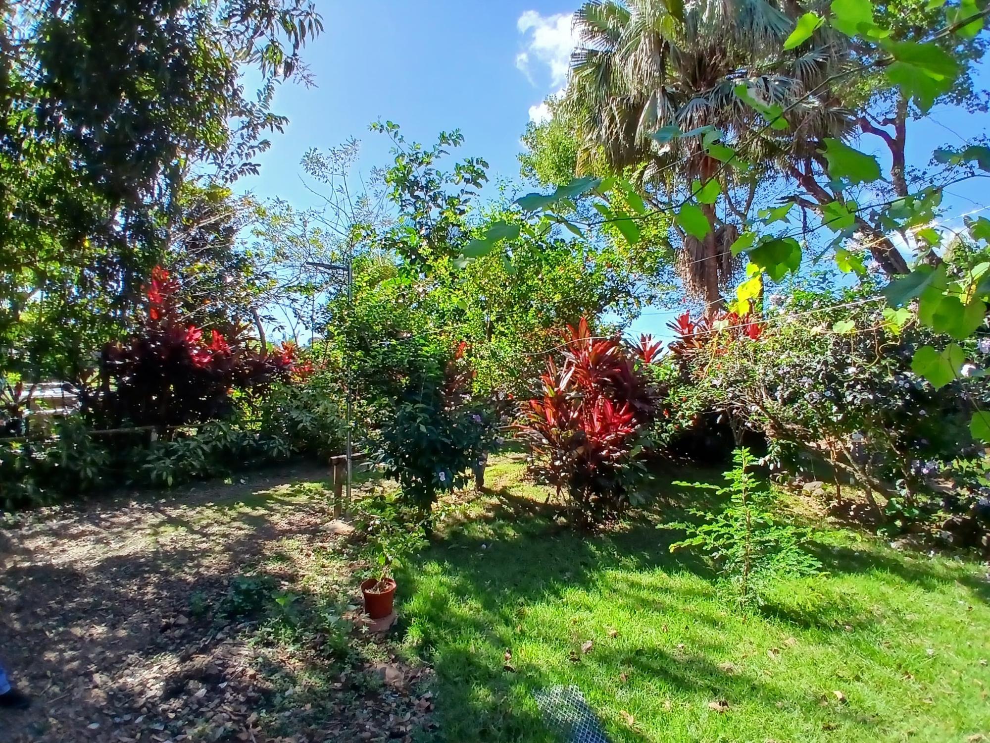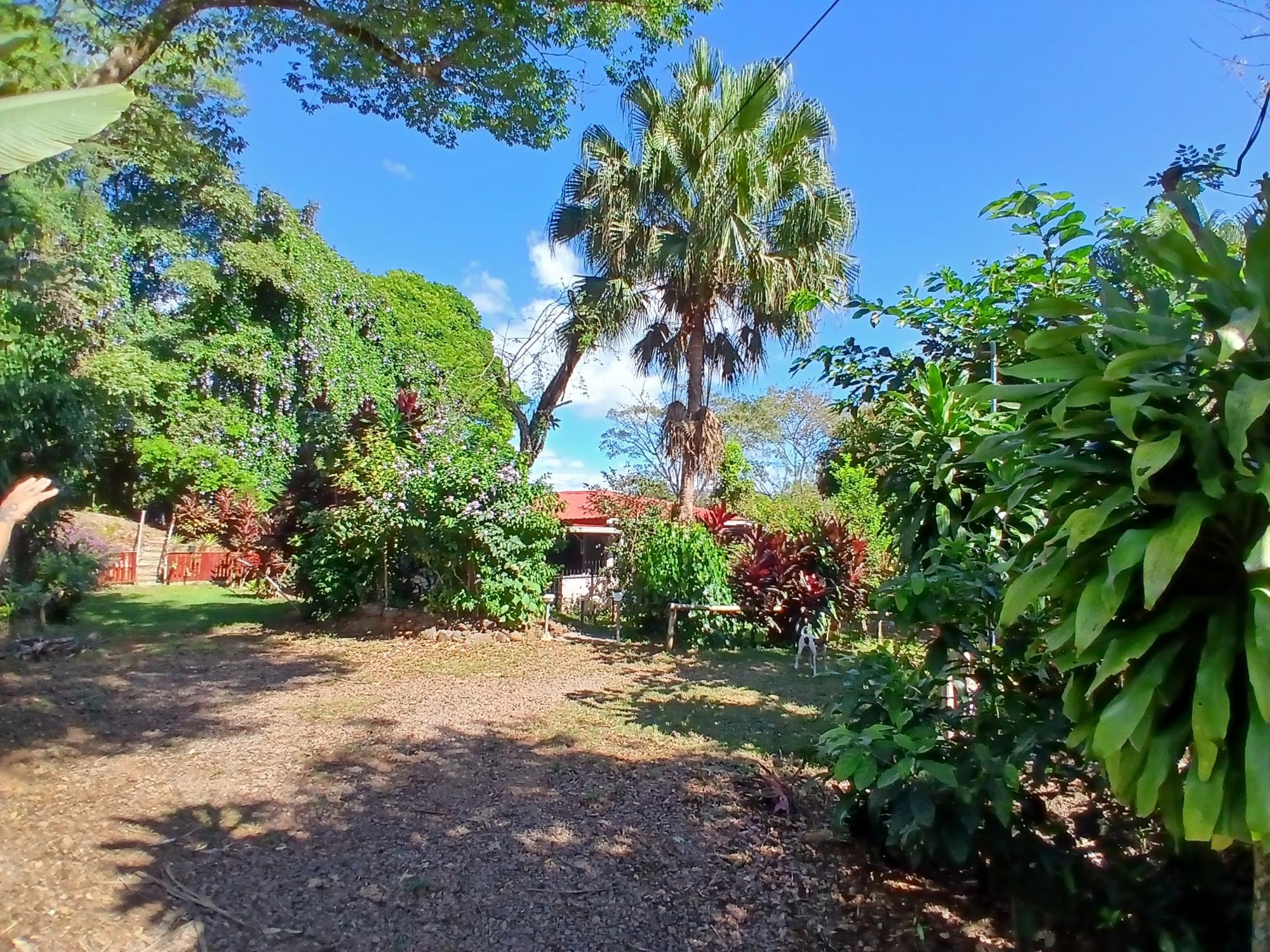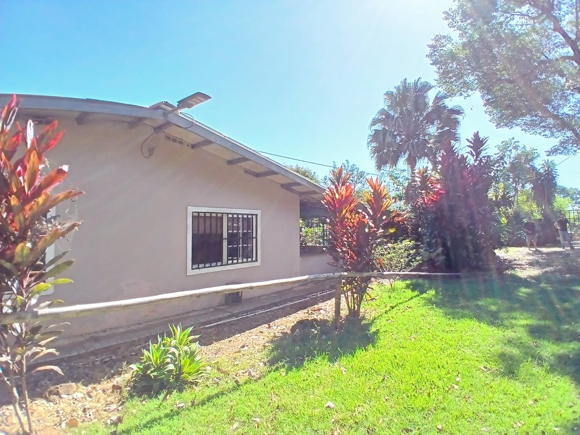 The house, which has been creatively and lovingly renovated over the past two years, has a floor space of 240 m² and features a very large kitchen, dining and living area, two bedrooms, two bathrooms, a large covered terrace with security bars, and a covered parking space for your car. The house comes with all furniture, appliances, and complete inventory—perfect for feeling right at home. The 1360 m² property is located in the second row on the paved road through Tinajas, only a 15-minute drive to David and 30 minutes to Boquete. Nevertheless, as soon as you enter your new home, you feel like you are in a rural setting. Lush plants provide pleasant coolness and tranquility, and a duck coop adds to the country charm. For your security, the lot is equipped with complete fencing, an automatic sliding gate, and solar lamps in the garden. A private well with two tanks, electricity, and internet are also available.