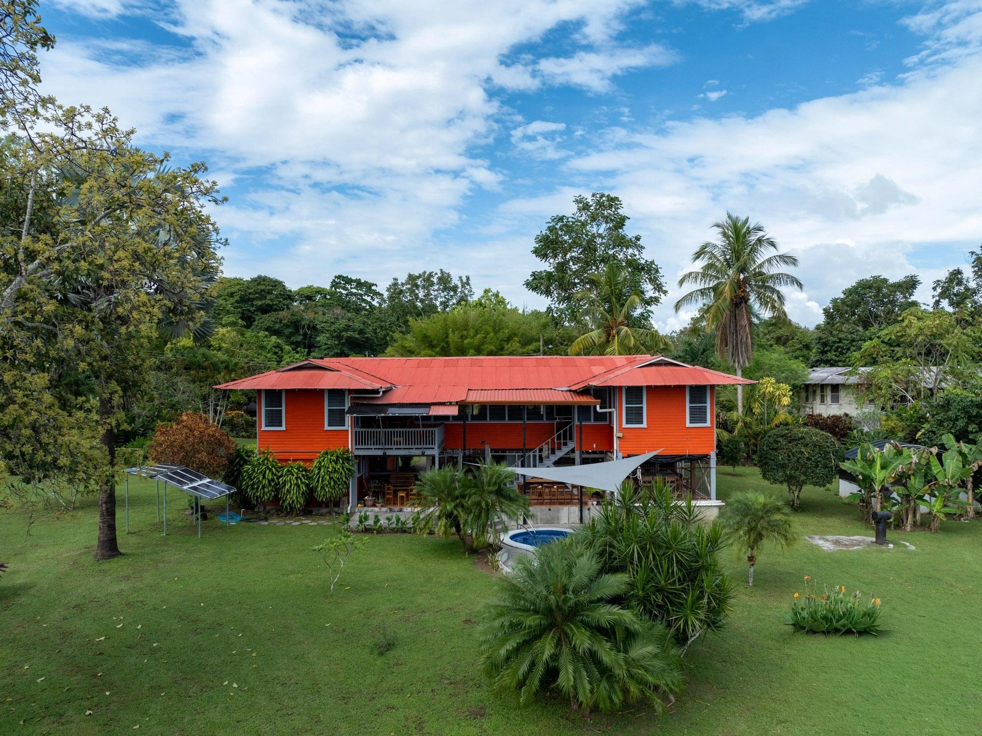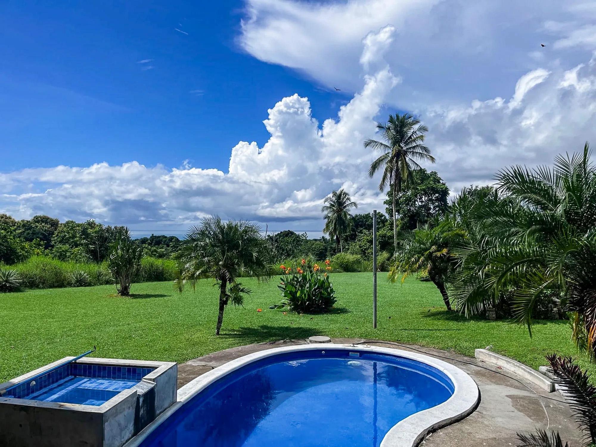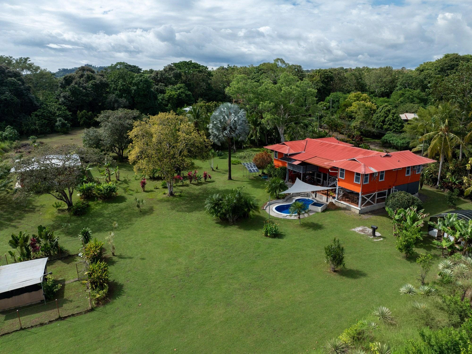 Esta propiedad, titulada y completamente cercada, se encuentra en el barrio Las Palmas de Puerto Armuelles, Chiriquí. El lote cuenta con áreas verdes abiertas, vegetación madura y secciones con vista al mar. Con una casa principal de aproximadamente 3,400 pies cuadrados y una casita de 750 pies cuadrados, la propiedad ofrece múltiples espacios habitables y áreas exteriores funcionales. Se encuentra al final de una calle sin salida, lo que proporciona un entorno más tranquilo dentro del vecindario. La casa principal es una de las históricas Chiquita Executive Plantation Homes de Las Palmas. Su distribución incluye áreas de estar elevadas, amplios patios cubiertos y un diseño al aire libre adaptado al clima local. La casita independiente se construyó en 2021. Está lista para mudarse y es ideal para invitados o para generar ingresos por alquiler. Pocas propiedades en Puerto Armuelles incluyen una segunda estructura de este tamaño y estado. La propiedad incluye una piscina privada y una bañera de hidromasaje. Esta característica es poco común en Las Palmas, donde pocos lotes residenciales cuentan con piscina privada. El área de la piscina recibe la luz del amanecer y ofrece vistas abiertas al océano. El lote cuenta con amplios jardines, palmeras, plantas ornamentales y árboles frutales. Su diseño abierto permite la jardinería, la plantación de plantas adicionales o la posibilidad de construir futuras estructuras. El terreno tiene una suave pendiente natural que facilita la visibilidad del océano desde ciertos puntos. Incluye sistema solar de 1.8 kW, 3 tanques de agua con una capacidad total de aproximadamente 3,400 litros y sistema de seguridad. Estos elementos aportan seguridad a la vida diaria y reducen la dependencia de los servicios públicos.