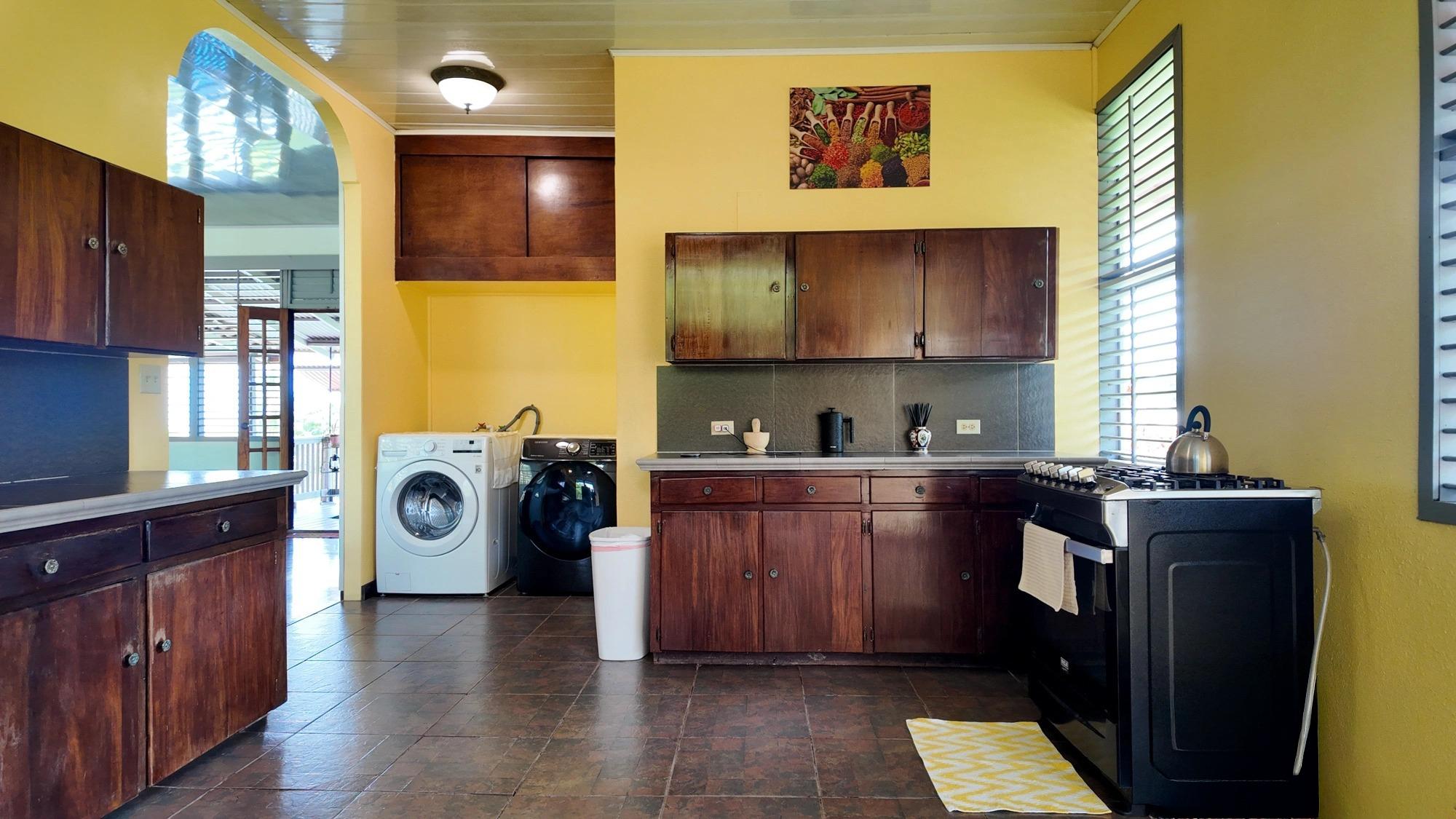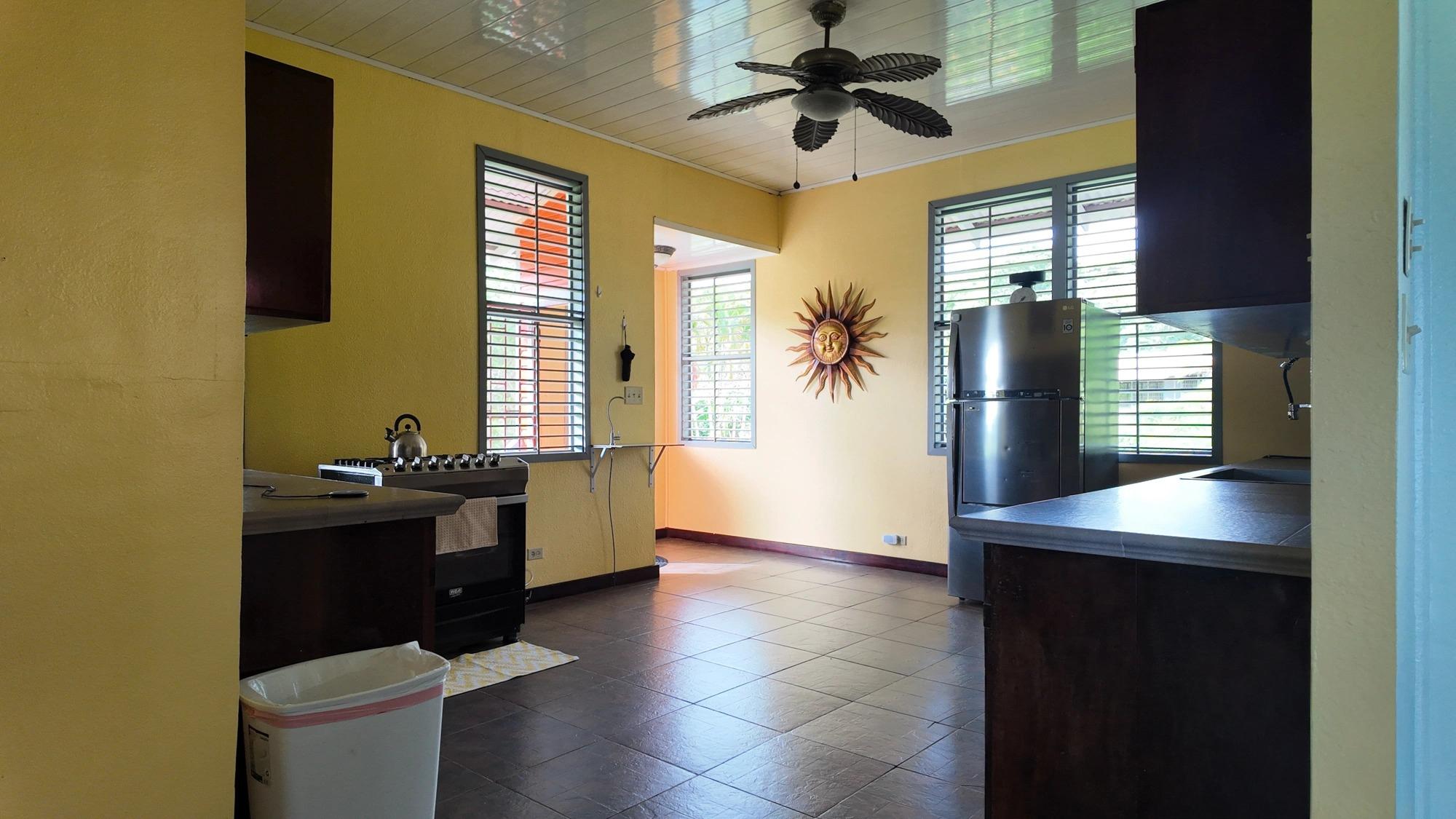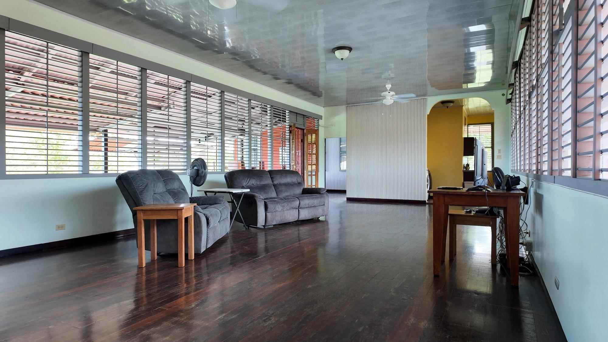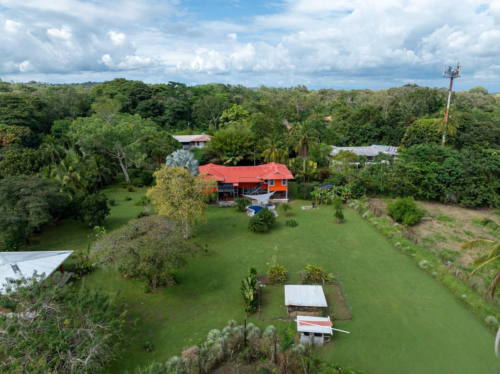 Esta propiedad, titulada y completamente cercada, se encuentra en el barrio Las Palmas de Puerto Armuelles, Chiriquí. El lote cuenta con áreas verdes abiertas, vegetación madura y secciones con vista al mar. Con una casa principal de aproximadamente 3,400 pies cuadrados y una casita de 750 pies cuadrados, la propiedad ofrece múltiples espacios habitables y áreas exteriores funcionales. Se encuentra al final de una calle sin salida, lo que proporciona un entorno más tranquilo dentro del vecindario. La casa principal es una de las históricas Chiquita Executive Plantation Homes de Las Palmas. Su distribución incluye áreas de estar elevadas, amplios patios cubiertos y un diseño al aire libre adaptado al clima local. La casita independiente se construyó en 2021. Está lista para mudarse y es ideal para invitados o para generar ingresos por alquiler. Pocas propiedades en Puerto Armuelles incluyen una segunda estructura de este tamaño y estado. La propiedad incluye una piscina privada y una bañera de hidromasaje. Esta característica es poco común en Las Palmas, donde pocos lotes residenciales cuentan con piscina privada. El área de la piscina recibe la luz del amanecer y ofrece vistas abiertas al océano. El lote cuenta con amplios jardines, palmeras, plantas ornamentales y árboles frutales. Su diseño abierto permite la jardinería, la plantación de plantas adicionales o la posibilidad de construir futuras estructuras. El terreno tiene una suave pendiente natural que facilita la visibilidad del océano desde ciertos puntos. Incluye sistema solar de 1.8 kW, 3 tanques de agua con una capacidad total de aproximadamente 3,400 litros y sistema de seguridad. Estos elementos aportan seguridad a la vida diaria y reducen la dependencia de los servicios públicos.