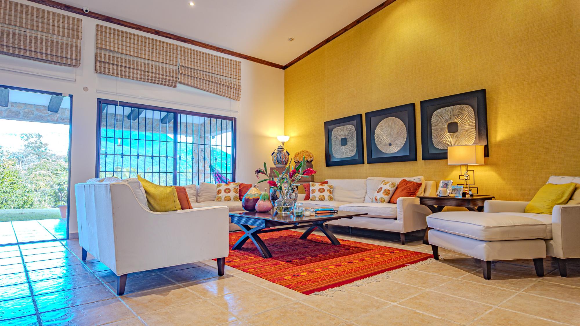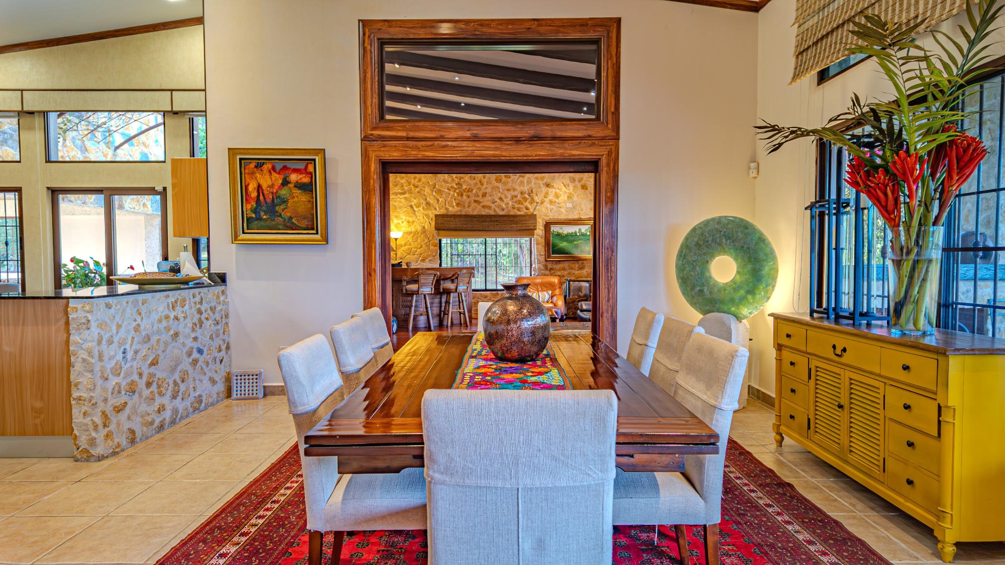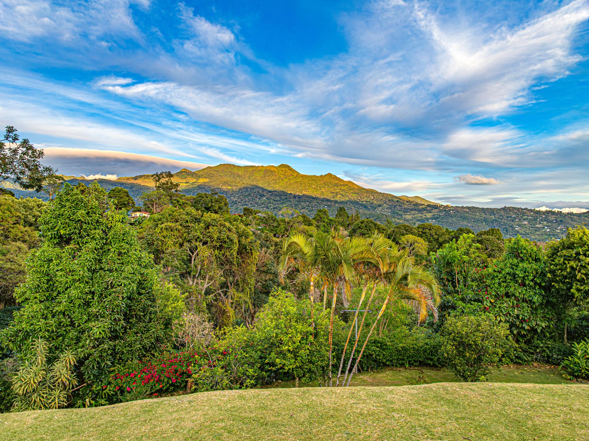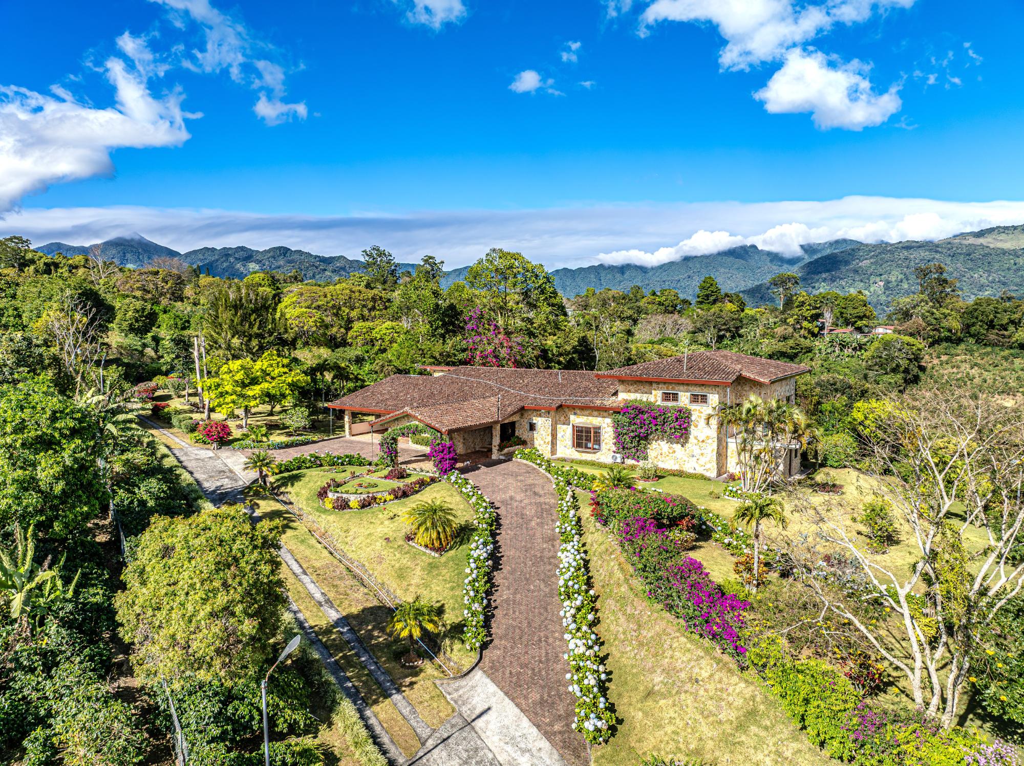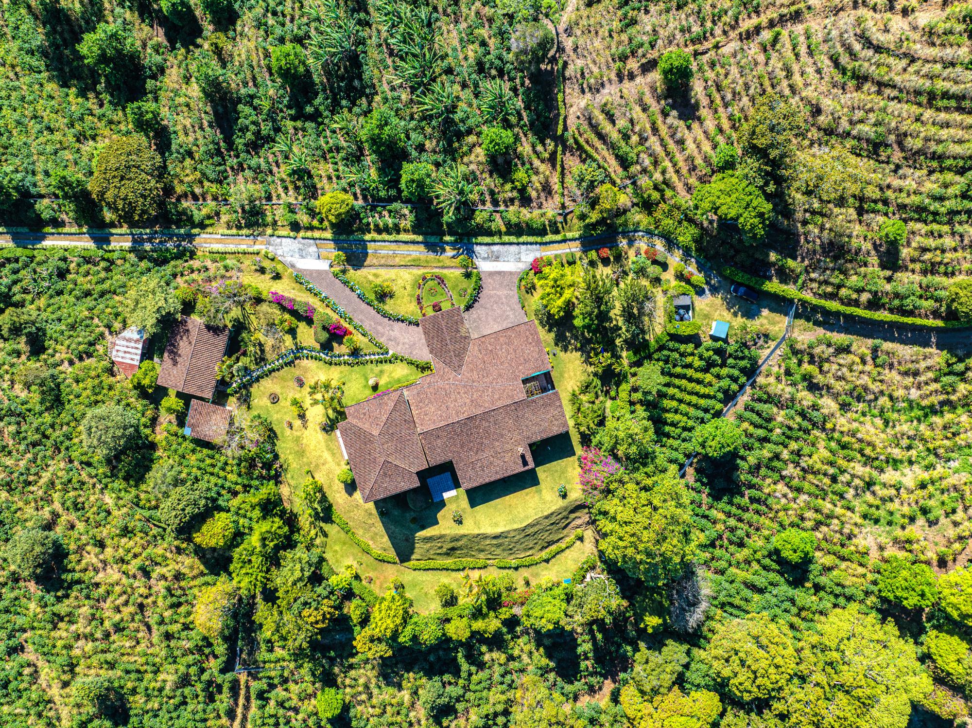 Coffee Farm Estate in Boquete, Panama – Santa Lucía, Volcancito Exceptional investment opportunity in Santa Lucía, Volcancito, one of Boquete’s most desirable residential areas. This 28.5-hectare coffee farm sits at approximately 1,300 meters above sea level and is in full production of specialty coffee varieties including Caturra, Catuai, Geisha, Bourbon, Obatá Rojo, and Pacamara. It is the only coffee farm located within the exclusive Santa Lucía residential complex, just five minutes from downtown Boquete. The estate includes a spacious main residence with floor-to-ceiling windows capturing panoramic mountain and valley views, three bedrooms, maid’s quarters, and outdoor living areas. A separate guest house offers two additional bedrooms, along with storage facilities and operational infrastructure. The property enjoys a pleasant year-round mountain climate, exceptional privacy, shaded seating areas, and sunrise and sunset views over the valley. Ideal for continued agricultural use, boutique tourism, or future residential development in one of Panama’s premier highland locations.