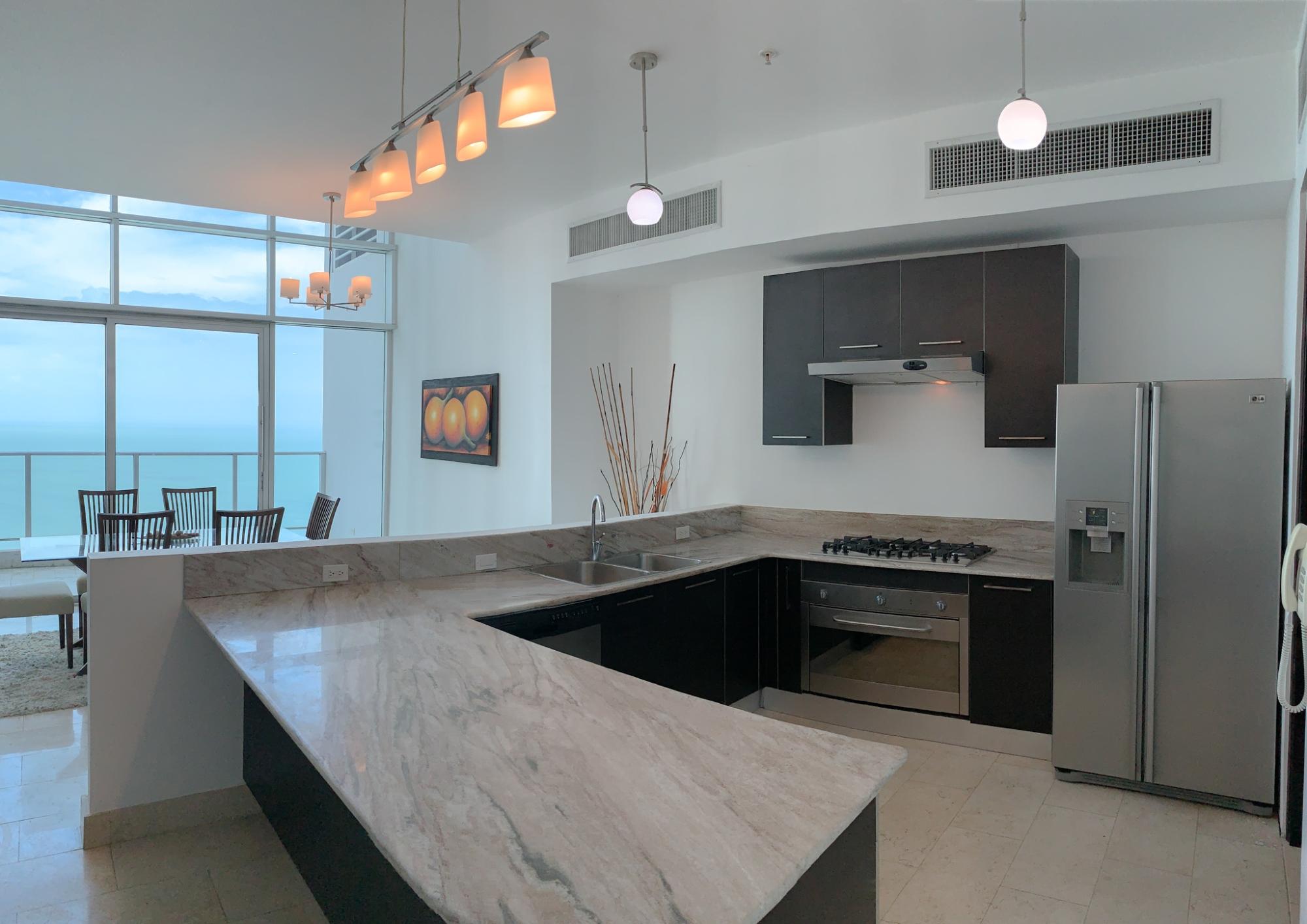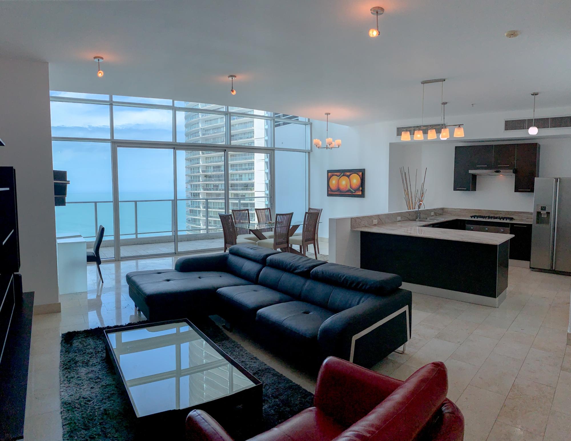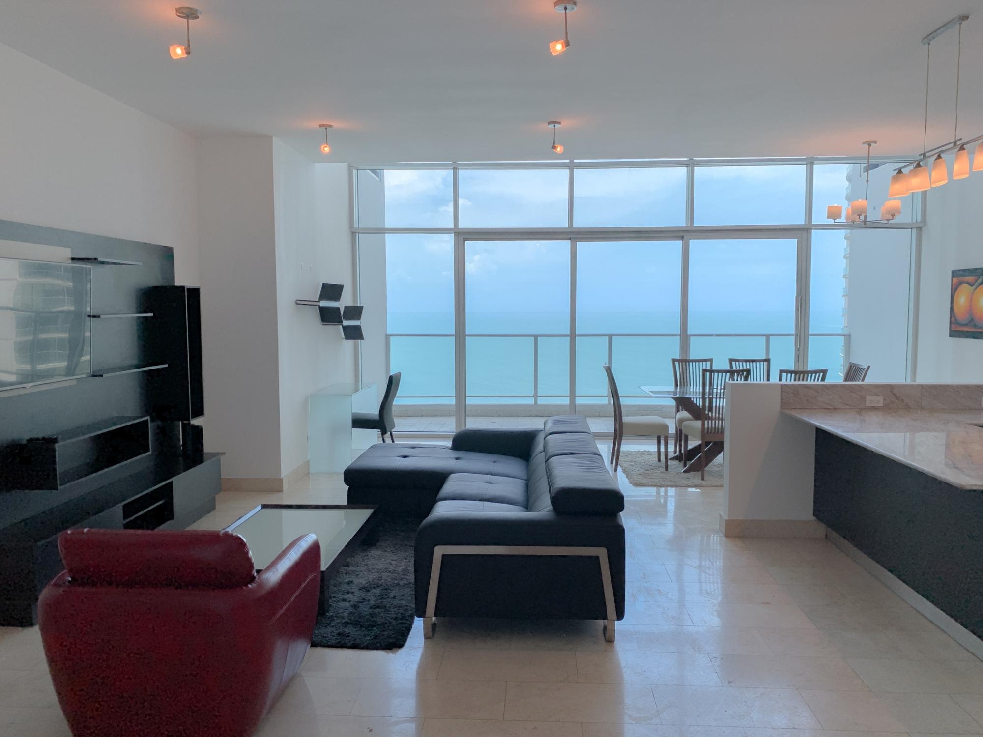 For sale or rent: a spectacular loft-style apartment in PH Pacific Village, located in Punta Pacifica. The apartment is distributed over two levels and offers a spacious, double-height living and dining area with excellent natural light, ocean views, and access to a balcony. It also features a spacious master bedroom with an integrated sitting area, a full bathroom, and a walk-in closet, providing a comfortable, private, and sophisticated ambiance. Additionally, it includes a guest half-bathroom, laundry room, two parking spaces, and a storage unit. Pacific Village boasts a complete social area that includes a swimming pool for adults and children, a fully equipped gym, a spa with a jacuzzi, sauna, and Turkish bath, a game room, a soccer field, green areas, a luxurious double-height lobby, a security gate, and 24/7 surveillance. An excellent option for those seeking a prime location, modern design, and high-end amenities in one of the city's most exclusive areas.