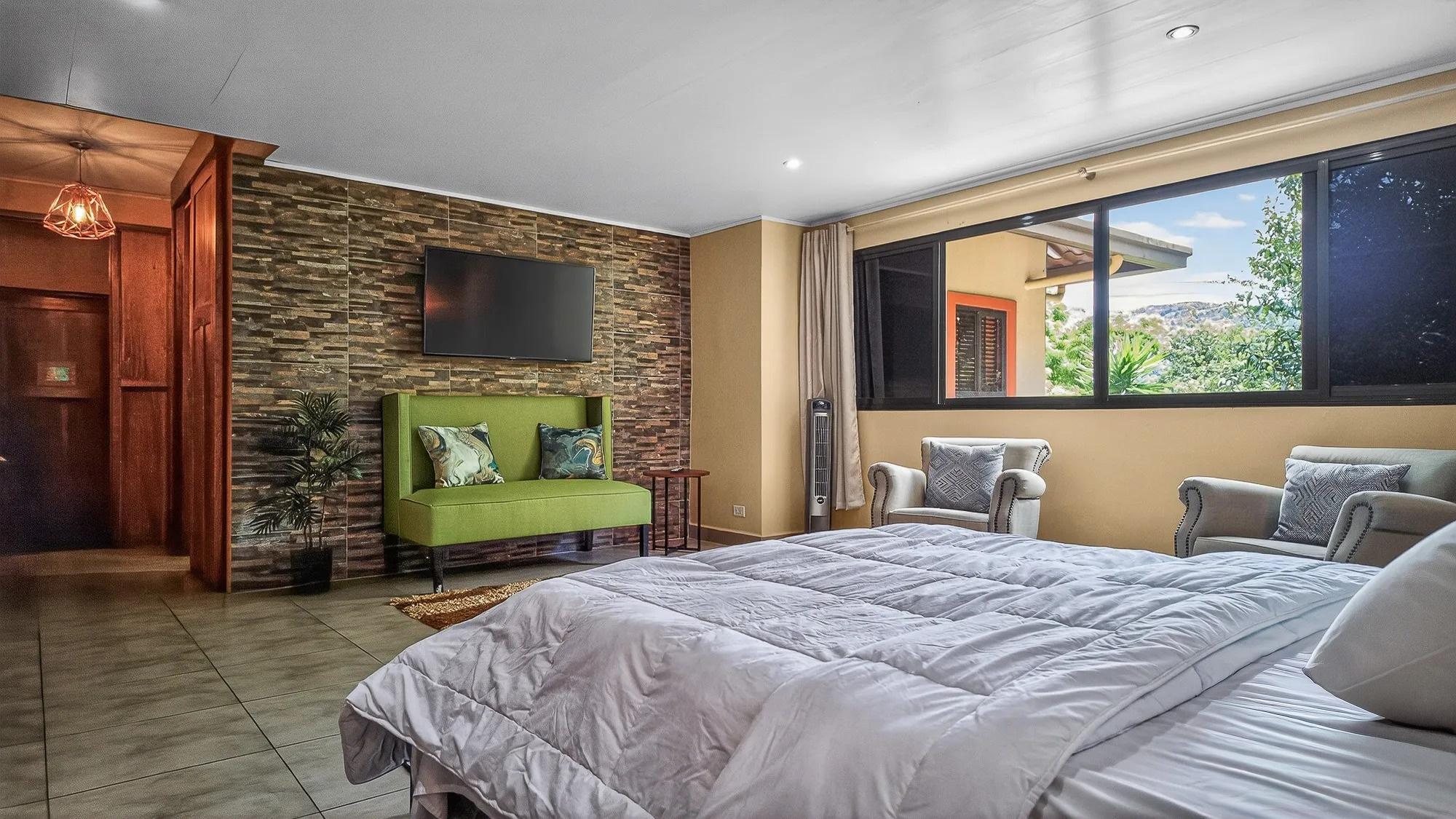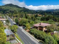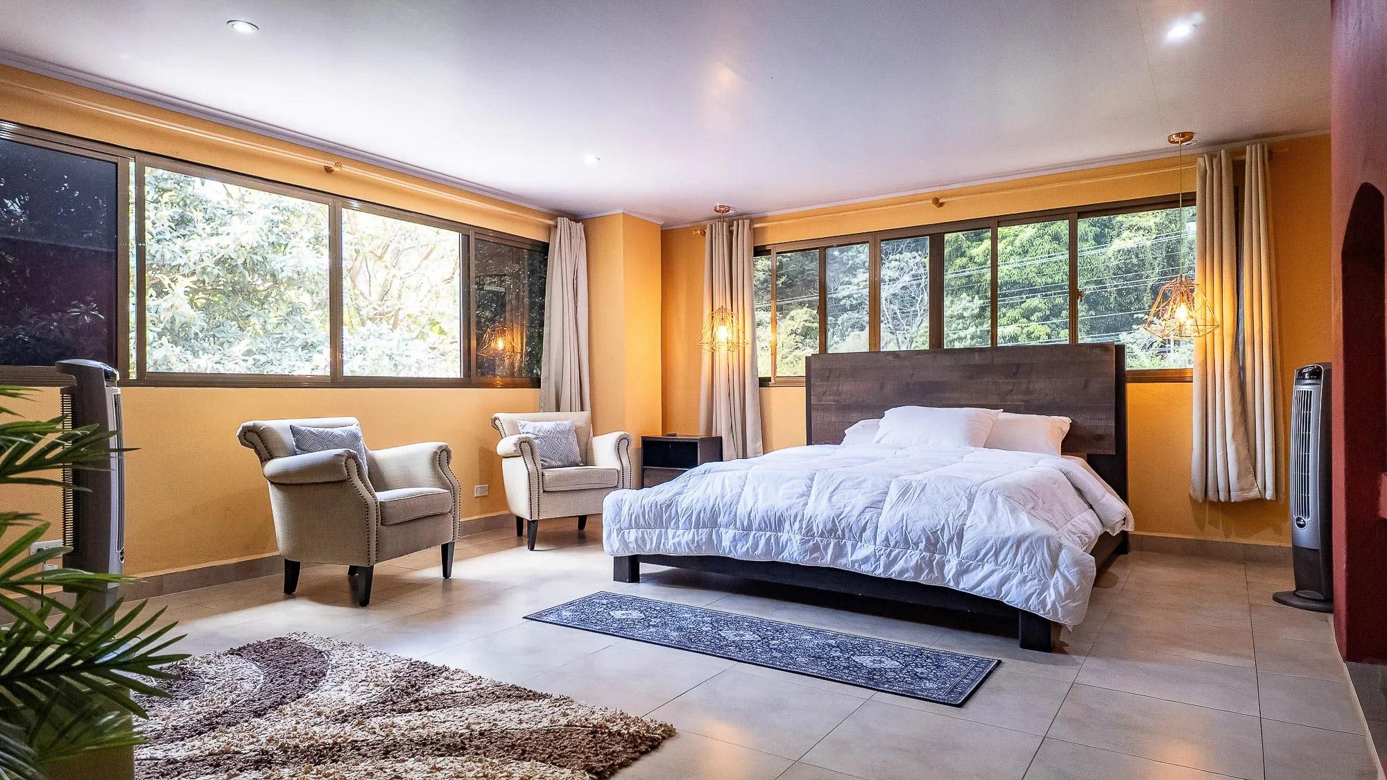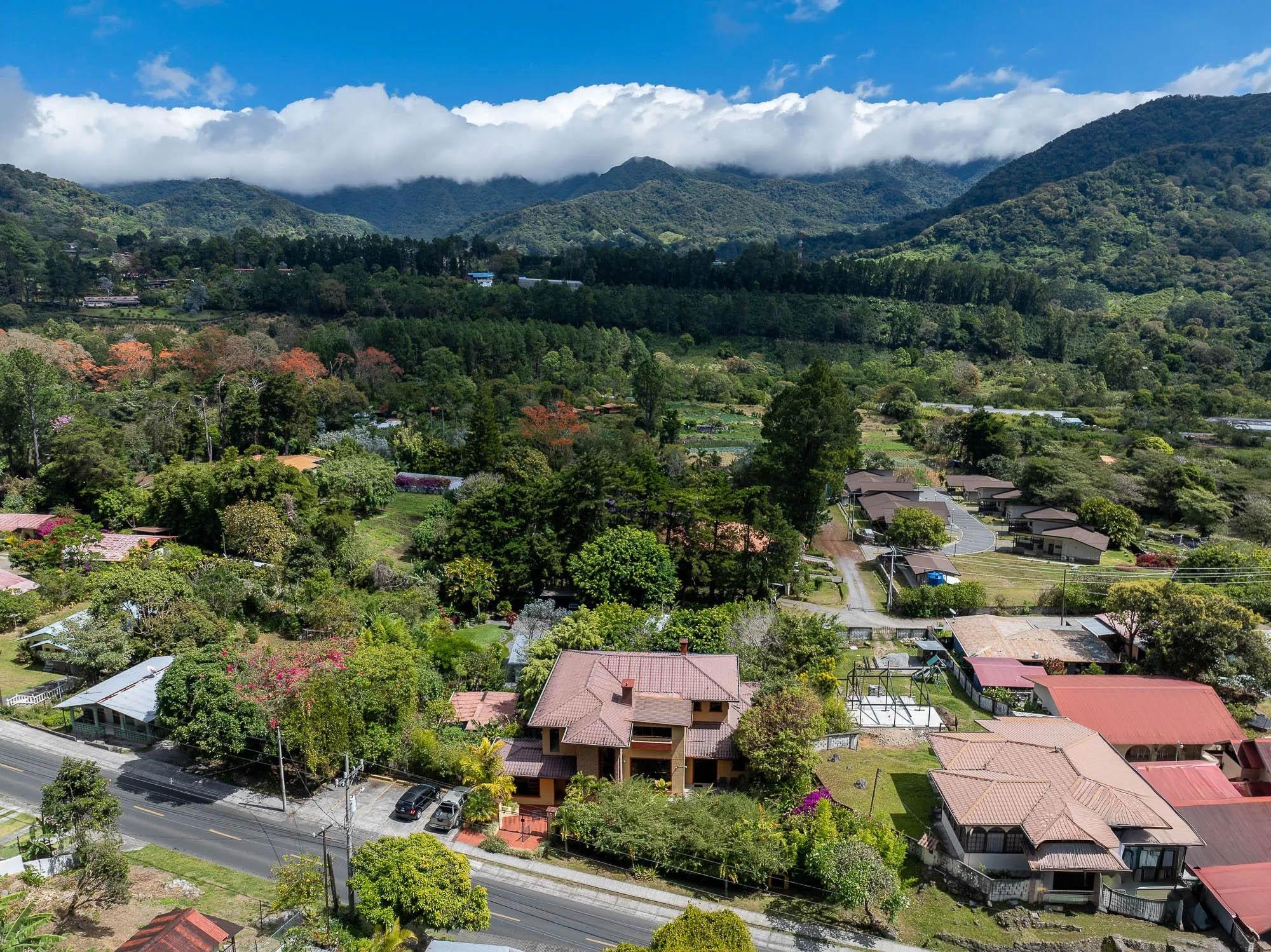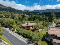 This property stands apart in Boquete for its scale and flexibility as a residence. Located in Los Cabezos along the main road, just three minutes from downtown, this Luxury Mountain Villa functions equally well as a spacious private home or a boutique-style bed and breakfast. Its suite-based design balances shared living areas and individual privacy without compromising comfort. Set on a 1,102 m² lot with 599 m² of construction, the villa holds a prominent position in one of Boquete’s closest hillside neighborhoods, known for its green microclimate and quick access to town. Mountain views extend across the valley, and nearby attractions include The Lost Waterfalls, Los Ladrillos, The Pipeline Trail, Piedra de Lino, and local coffee tours. The home includes eight bedrooms, each with a private bathroom, plus a half bath for guests. Each suite features built-in closets and a television, supported by eight mini refrigerators throughout the property. The main level opens from a formal foyer into a large living and dining area with double-height ceilings. Sliding glass doors connect to a generous glass-enclosed terrace with a fireplace, creating an expansive indoor-outdoor living space. The fully equipped kitchen can be separated by wooden sliding doors and connects to the terrace through service windows with a breakfast bar. Upstairs suites include balconies, private baths, and sitting areas. The property also offers five parking spaces, a water filtration system, and a large gas tank.