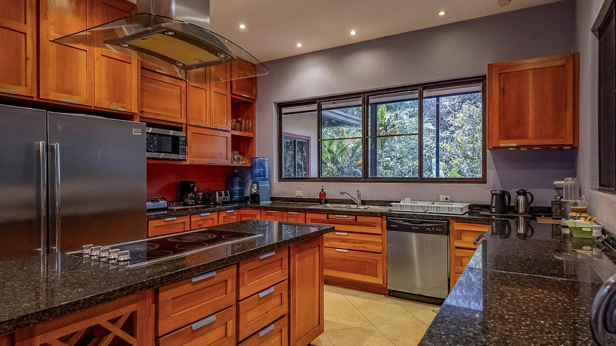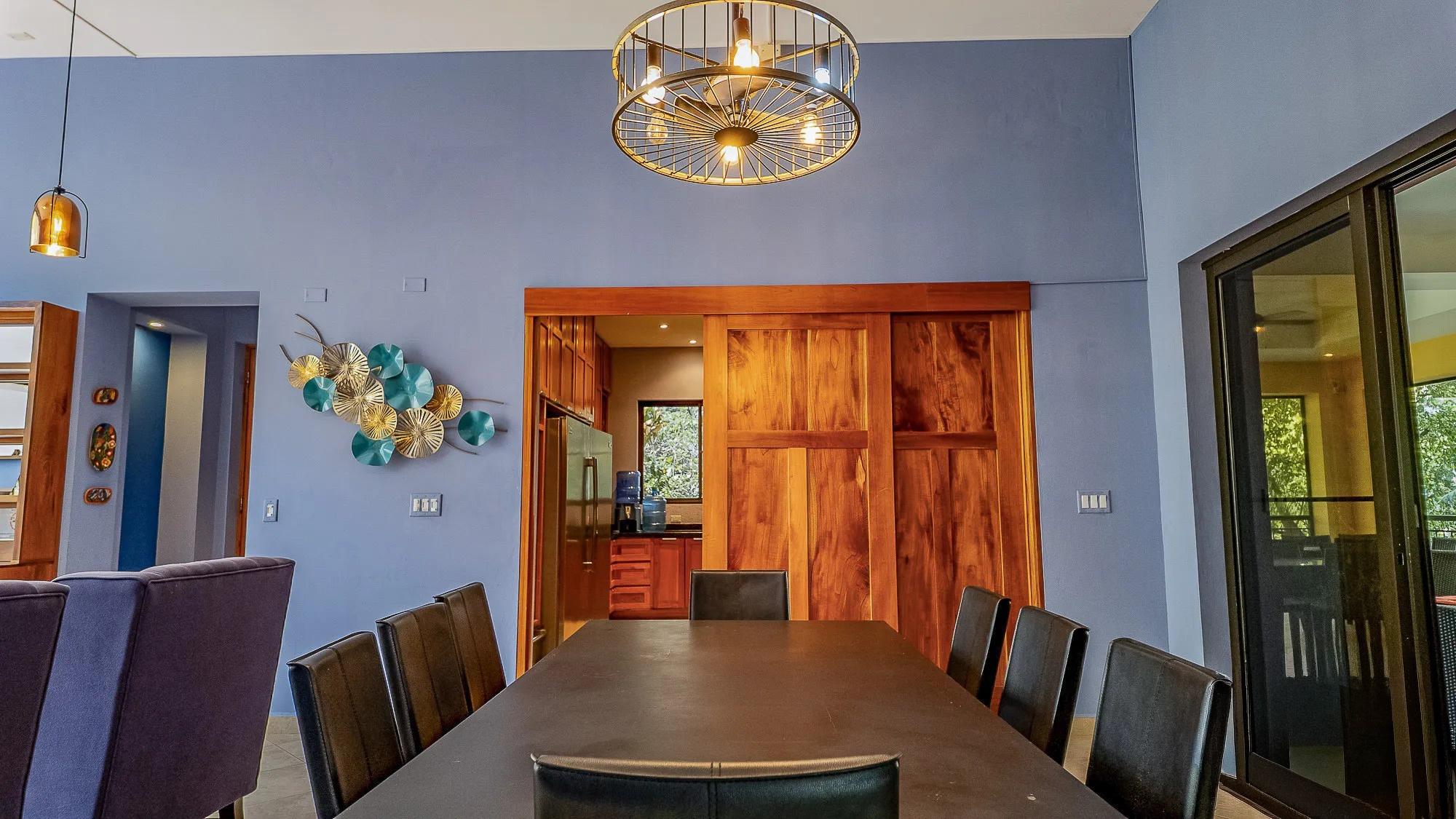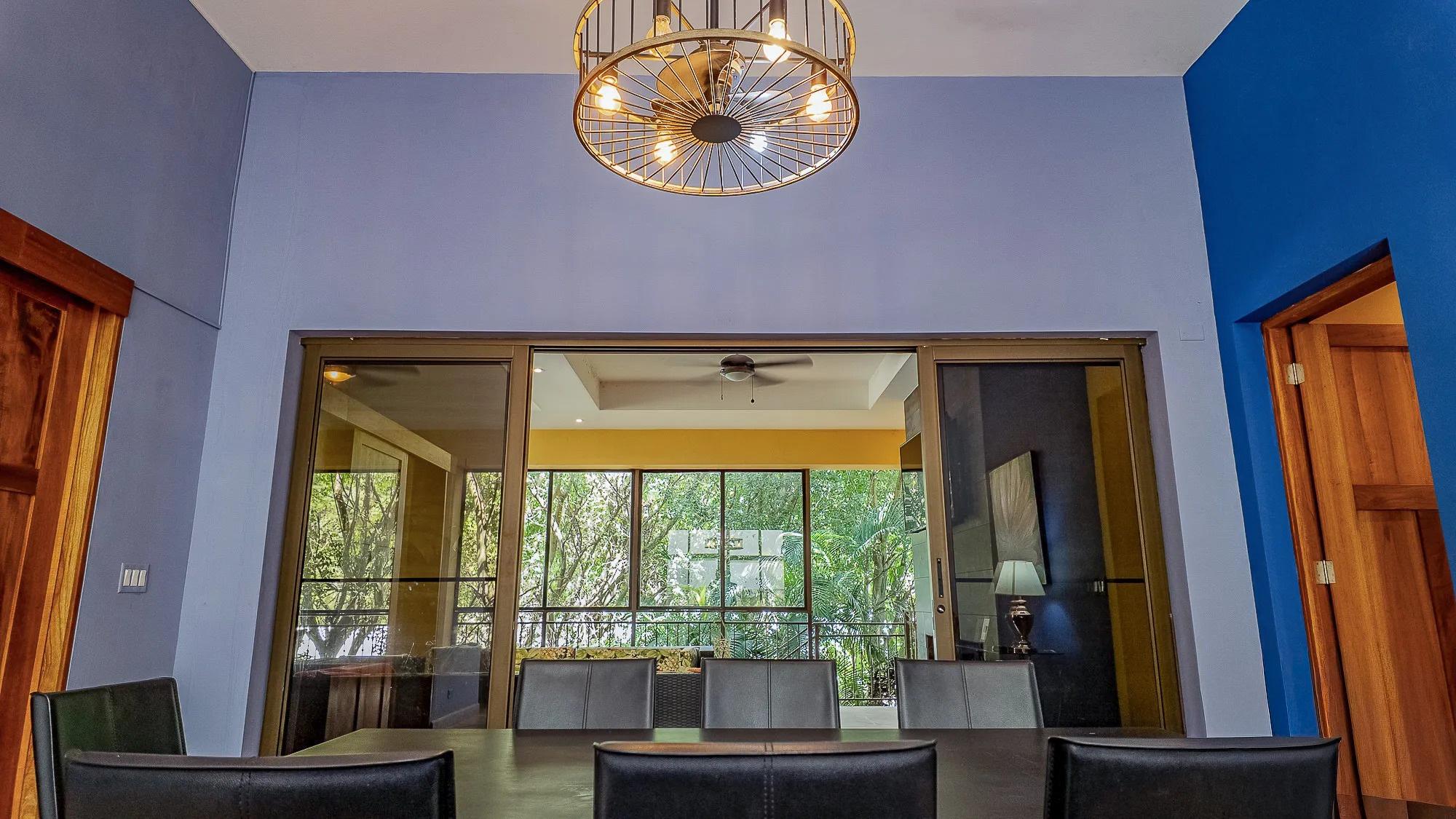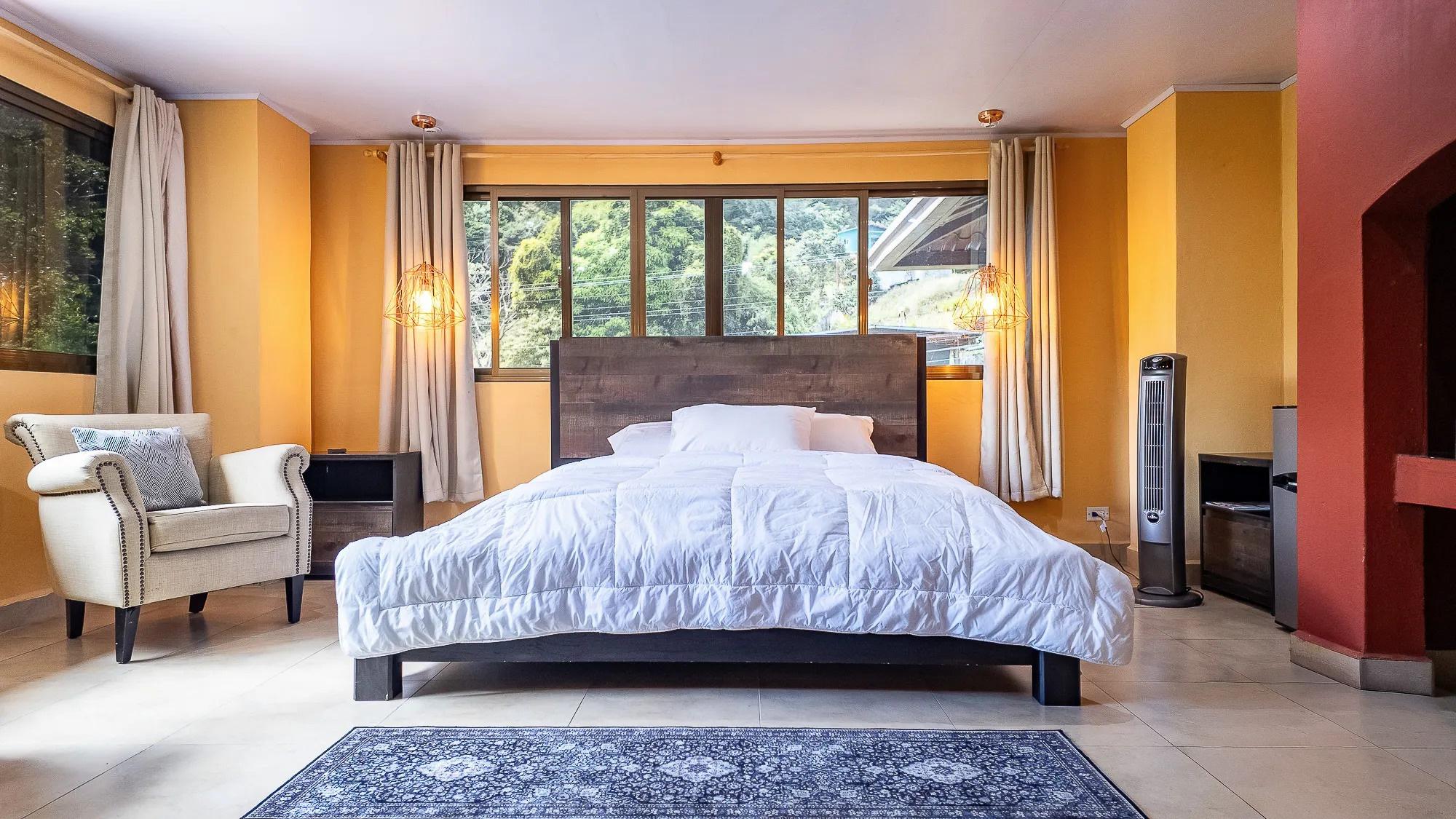 This property stands apart in Boquete for its scale and flexibility as a residence. Located in Los Cabezos along the main road, just three minutes from downtown, this Luxury Mountain Villa functions equally well as a spacious private home or a boutique-style bed and breakfast. Its suite-based design balances shared living areas and individual privacy without compromising comfort. Set on a 1,102 m² lot with 599 m² of construction, the villa holds a prominent position in one of Boquete’s closest hillside neighborhoods, known for its green microclimate and quick access to town. Mountain views extend across the valley, and nearby attractions include The Lost Waterfalls, Los Ladrillos, The Pipeline Trail, Piedra de Lino, and local coffee tours. The home includes eight bedrooms, each with a private bathroom, plus a half bath for guests. Each suite features built-in closets and a television, supported by eight mini refrigerators throughout the property. The main level opens from a formal foyer into a large living and dining area with double-height ceilings. Sliding glass doors connect to a generous glass-enclosed terrace with a fireplace, creating an expansive indoor-outdoor living space. The fully equipped kitchen can be separated by wooden sliding doors and connects to the terrace through service windows with a breakfast bar. Upstairs suites include balconies, private baths, and sitting areas. The property also offers five parking spaces, a water filtration system, and a large gas tank.
