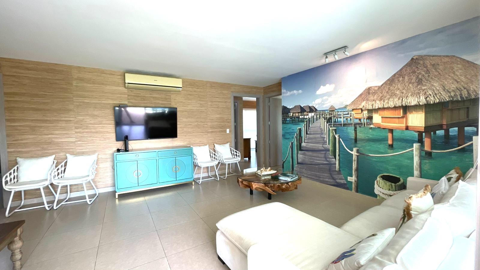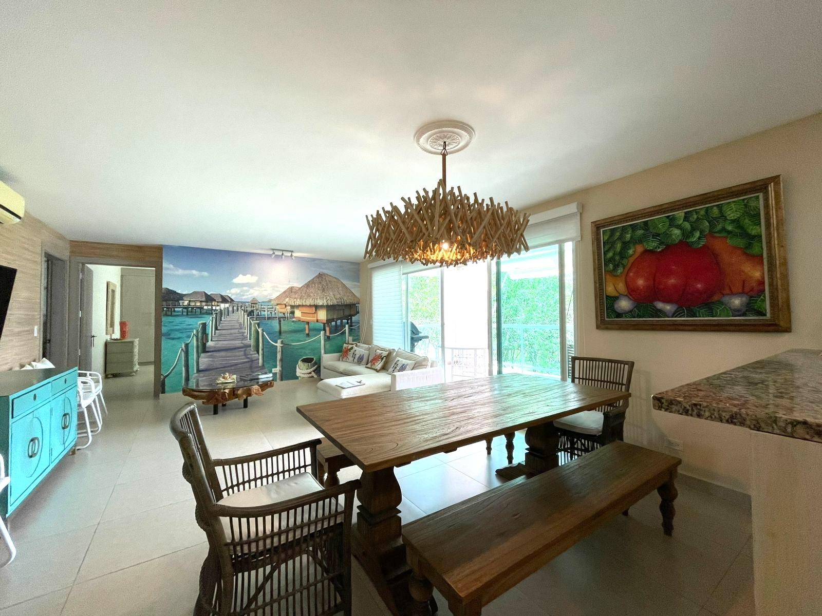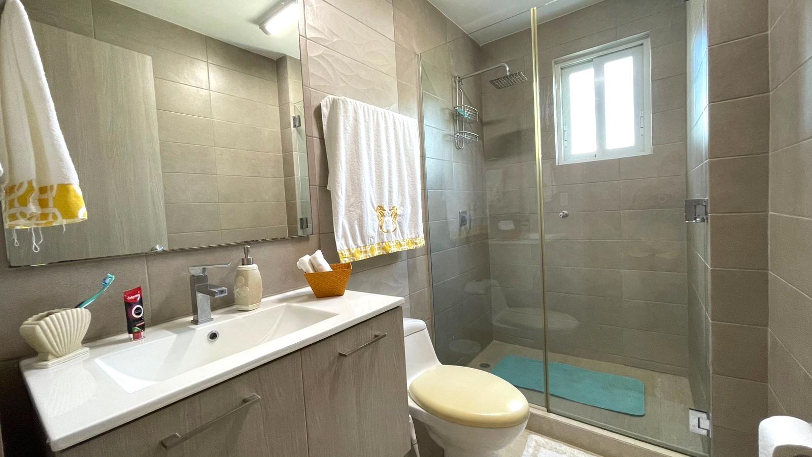 The apartment is in excellent condition, featuring three spacious bedrooms, each with its own bathroom, a maid's quarters with bathroom, an open kitchen, a living/dining room, a laundry area, and a balcony terrace. The apartment is finely furnished, with five Panasonic inverter split air conditioners, and the price includes all appliances, curtains, and furniture. Bijao Beach Club & Residences is a residential, vacation, and tourist complex located on Panama's Pacific coast. It offers a mix of apartments, houses, and villas, along with exclusive access to beaches, golf courses, swimming pools, and various recreational facilities. It is a popular destination for both residents and visitors seeking a beach setting with high-end services and amenities.
