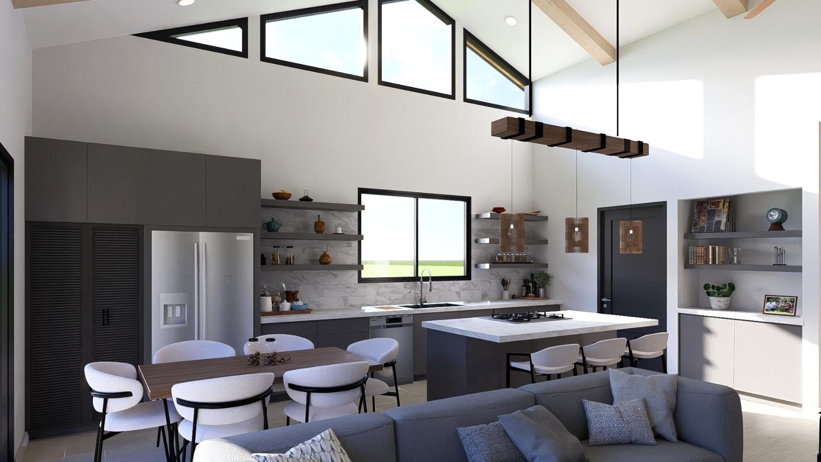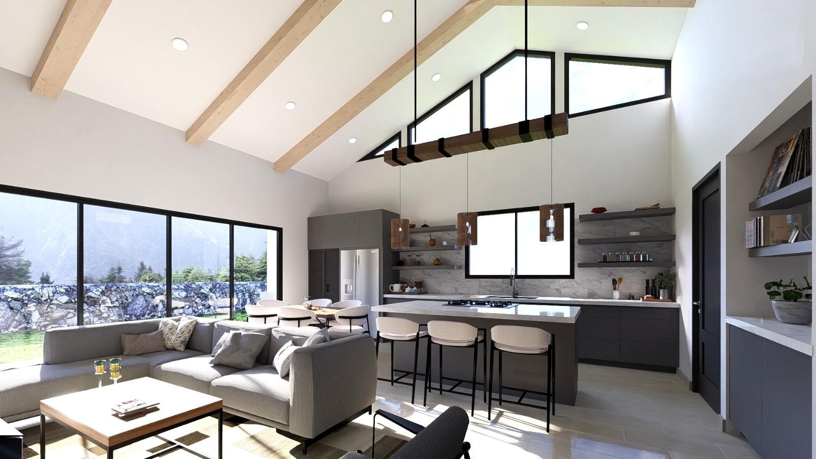 Spectacular modern home for sale in Alto Boquete, located in the exclusive Valle Boquete Canyon community, one of the few remaining areas offering panoramic views toward David, the Pacific Ocean, and Volcán Barú. Built on a 601 m² lot, this contemporary single-level residence offers 163.45 m² of thoughtfully designed living space. The home features 3 bedrooms, 2.5 bathrooms, and a functional layout that combines comfort with architectural character. The open-concept living and dining area is highlighted by vaulted ceilings with exposed beams, a dramatic full-height stone accent wall, and oversized sliding glass doors that frame the canyon views and fill the home with natural light. The covered terrace extends the living space outdoors, creating the perfect setting to enjoy Boquete’s year-round mild climate. The kitchen includes a central island with breakfast bar, granite countertops, pantry storage, and an enclosed laundry area. The primary bedroom features large sliding doors opening to the garden and landscape, along with a private bathroom with dual sinks. The property also includes covered parking for two vehicles and a durable PEX water and gas piping system. Developed by the team behind the fully sold-out Valle Boquete subdivision (23 homes), this property represents a rare opportunity to secure a view-driven residence in a location where canyon and ocean visibility are increasingly limited. Ideal for retirement, full-time living, or long-term investment.