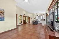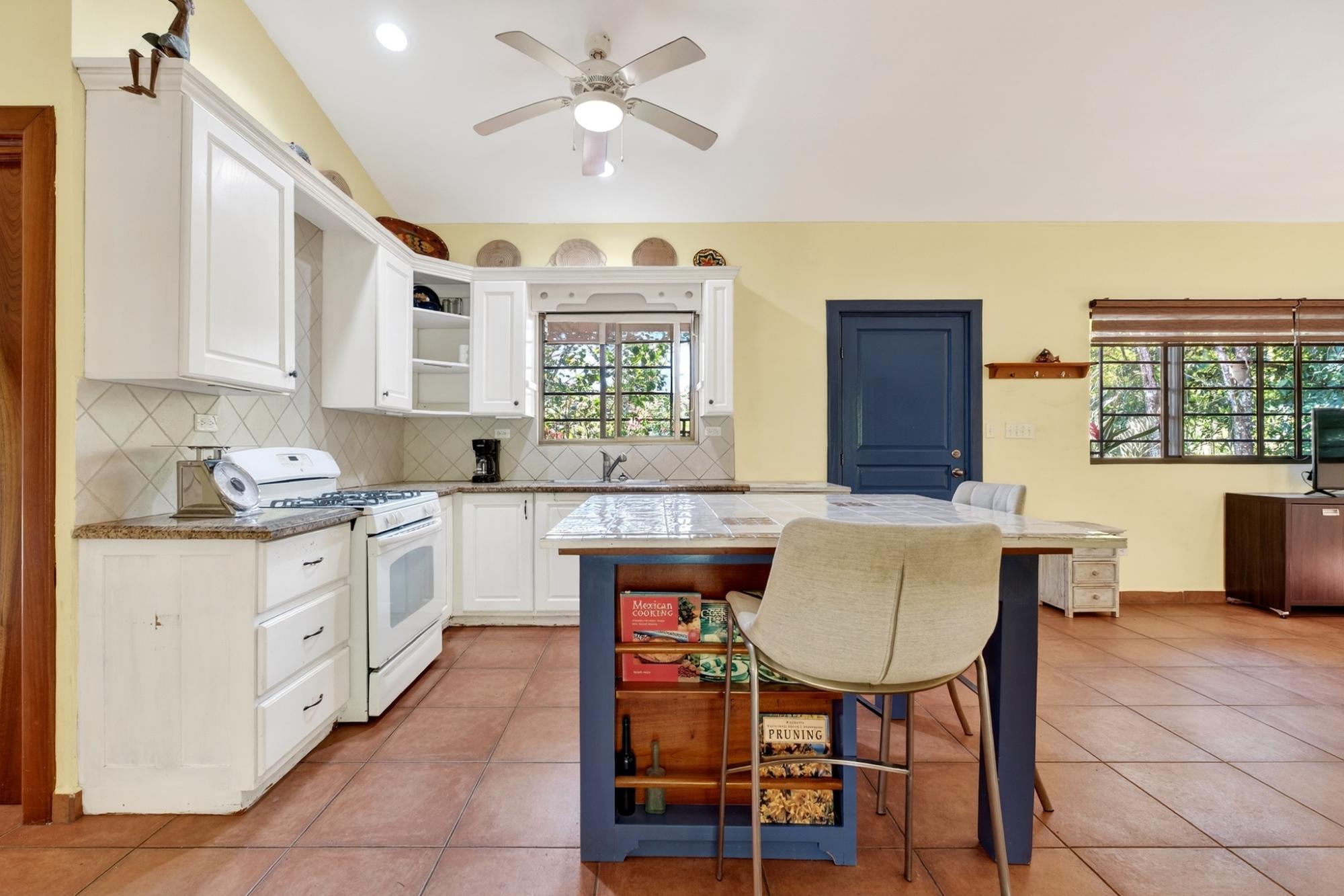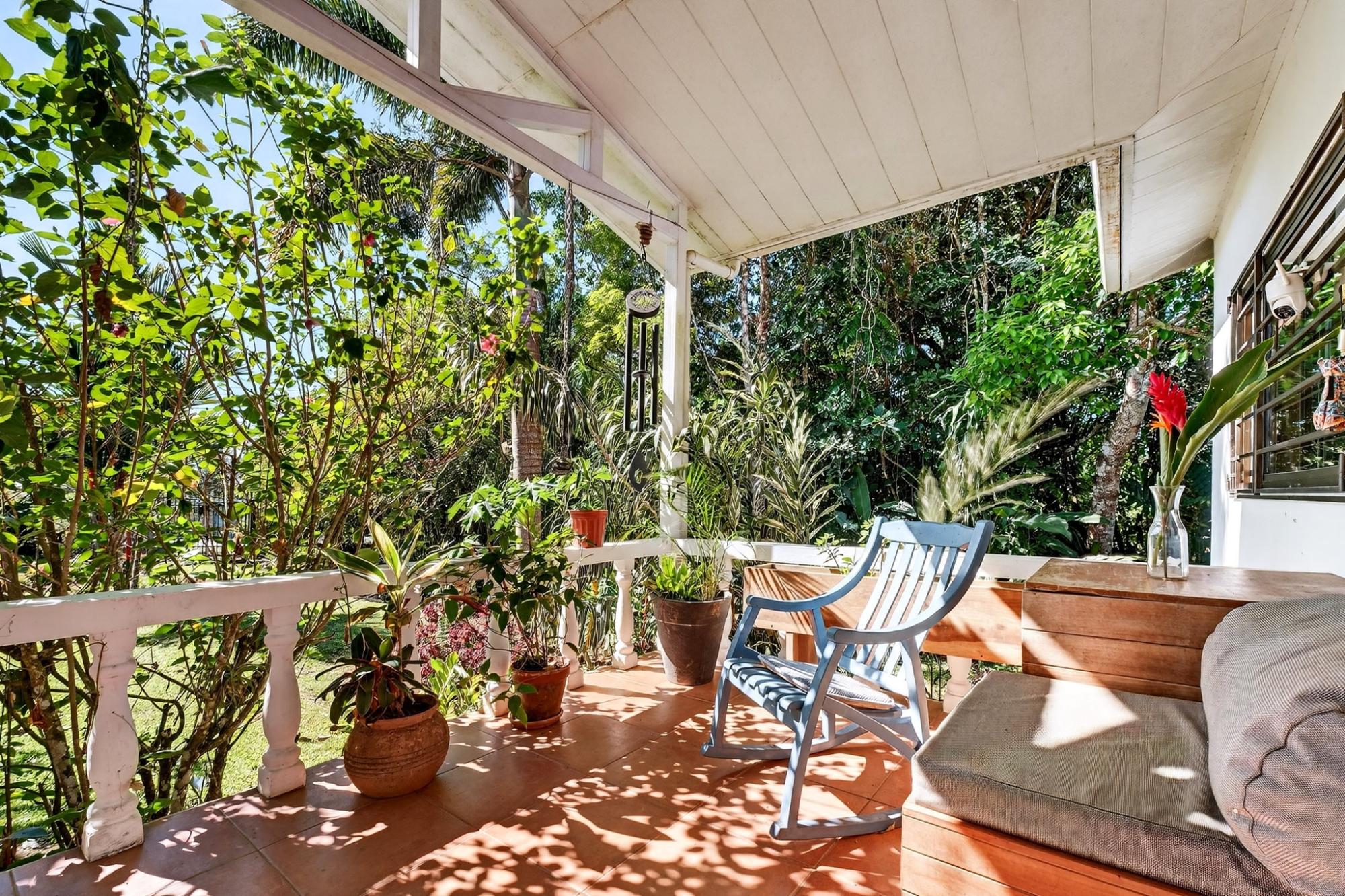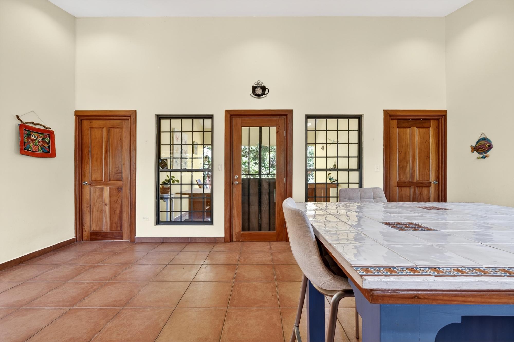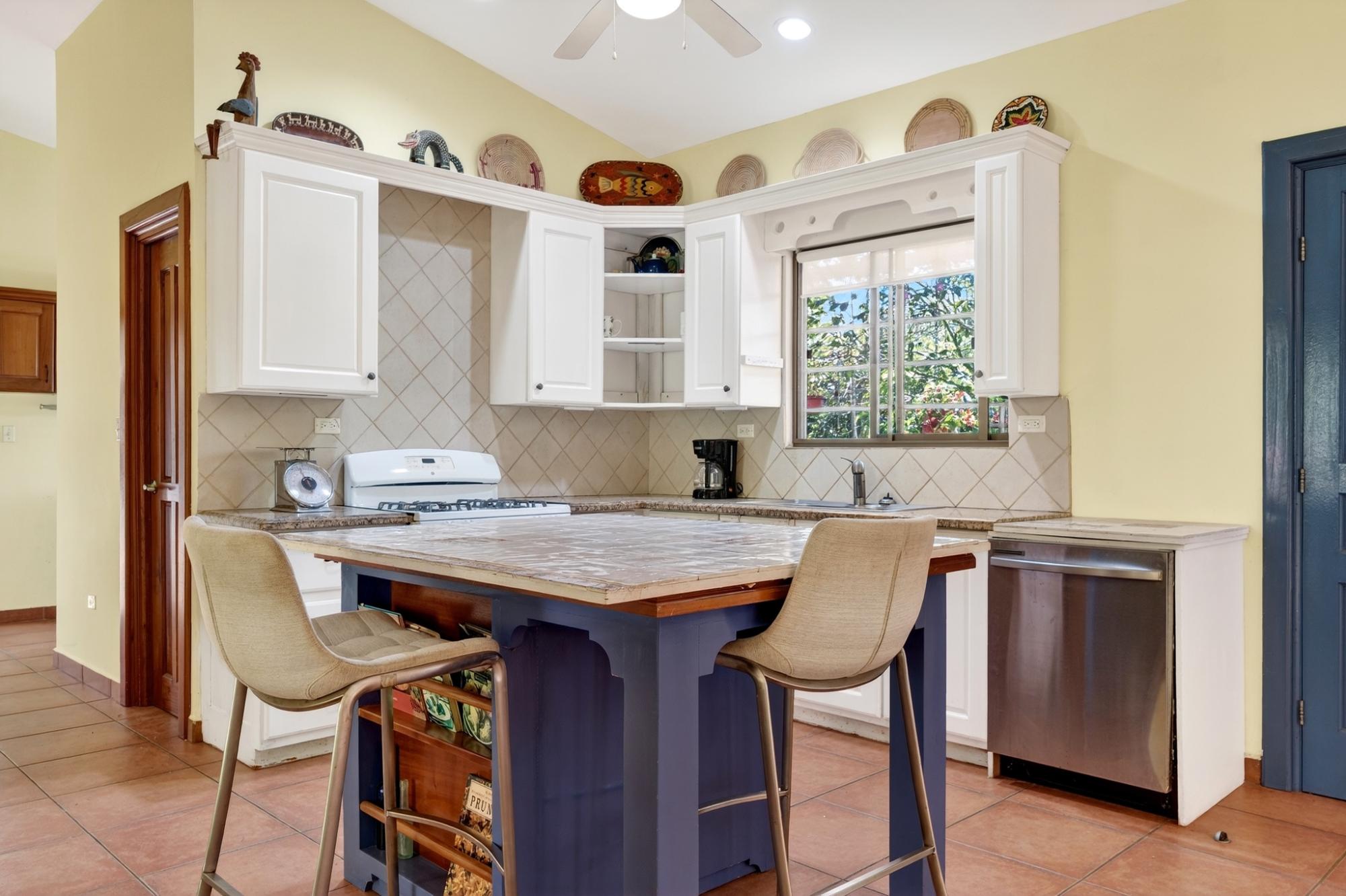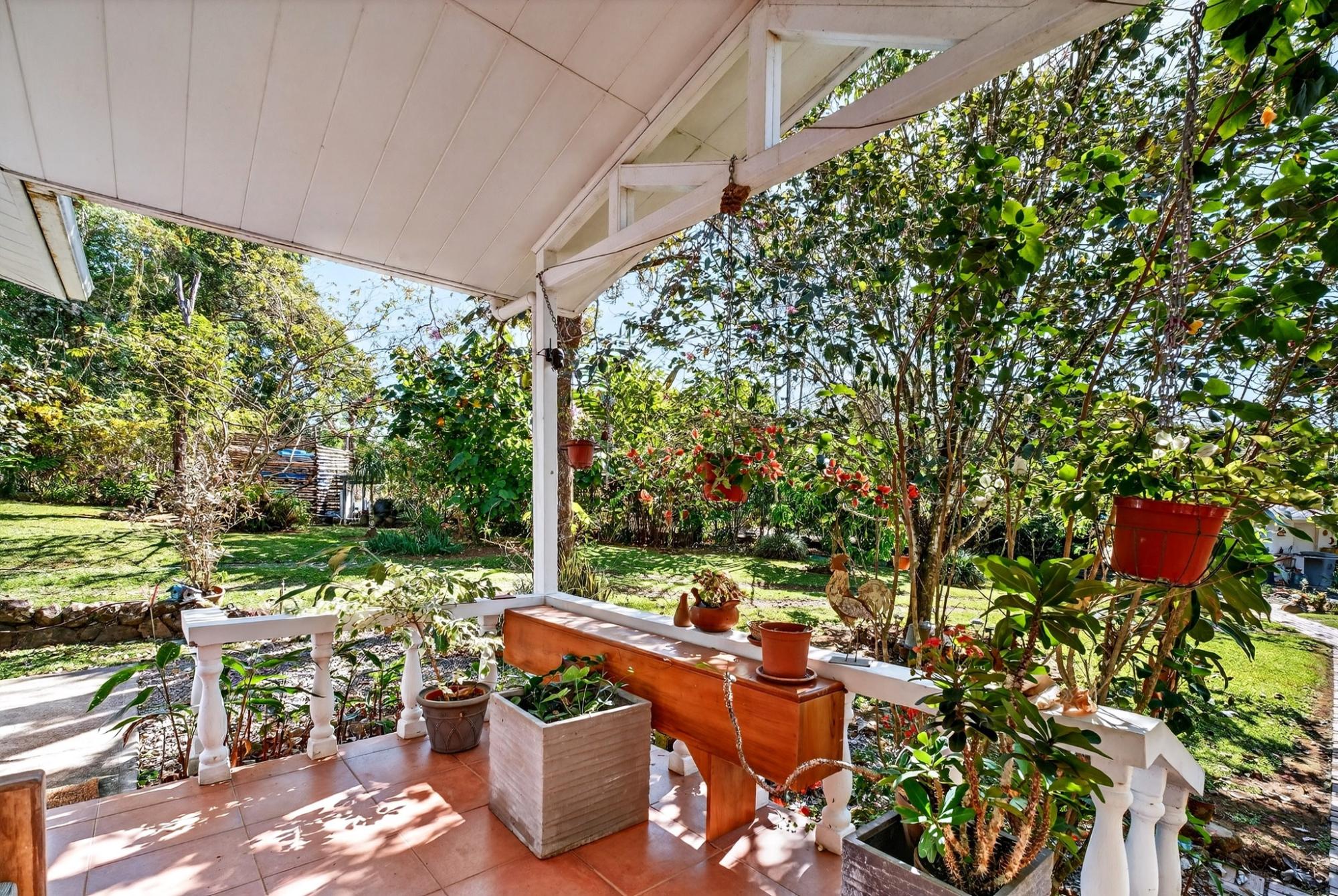 Charming 2BR/2BA garden home in desirable Potrerillos, set on a fully usable 1,000 m² lot surrounded by mature tropical landscaping and mountain views. The wide covered front veranda, wrapped in flowering vines, offers ideal year-round outdoor living. Inside, approximately 1,145 sq ft of open-concept living connects the kitchen, dining, and living areas, filled with natural light and garden views. The kitchen features ample cabinetry, tiled counters, and a central island. Two spacious bedrooms provide flexibility for guests or home office use. A large covered side terrace adds additional outdoor entertaining space, and a detached storage structure offers practical convenience. Located in a welcoming area known for its strong international presence and established expat community, just minutes from town amenities. Ideal as a full-time residence, retreat, or investment opportunity.