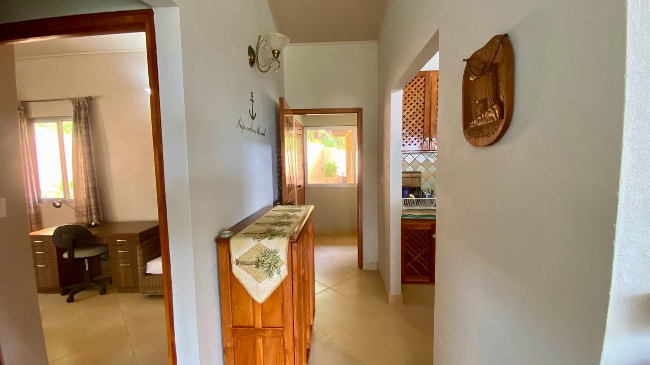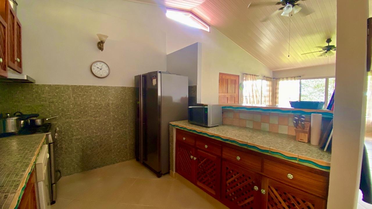 Escape to the breathtaking Altos del Maria with this remarkable mountain retreat now available for sale. This property offers the perfect combination of indoor and outdoor living spaces. The 145 square meter home is situated on a spacious 1,720 square meter lot, providing ample space to unwind and appreciate the surrounding nature. Previously owned and upgraded by the current owner, this mountain retreat features a well-thought-out layout. The kitchen flows into a bright living and dining area, ideal for hosting gatherings. Additionally, there is a pantry and indoor laundry area equipped with a washer and dryer for added convenience. The lush and thriving nature that envelops the property creates a peaceful ambiance, perfect for relaxation. Outside, there is a 46 square meter terrace ideal for enjoying the picturesque surroundings. Equally important are the views of the hills and the ocean from the gazebo/mirador. Inside the 99 square meter living space, there are two bedrooms. The first bedroom includes a generous walk-in closet and a private bathroom, offering a serene retreat for relaxation. At the present time, the second bedroom serves as a bright home office. It is providing a comfortable workspace for those who work remotely. This mountain retreat also includes a garden shed for storage, two covered parking spaces, and two open-air parking spaces for guests. Altos del Maria is conveniently located just 30 minutes away from Coronado Beach, boasting a variety of amenities and entertainment options. To conclude, do not let this opportunity pass you by to own this stunning mountain retreat in Altos del Maria, where you can immerse you
