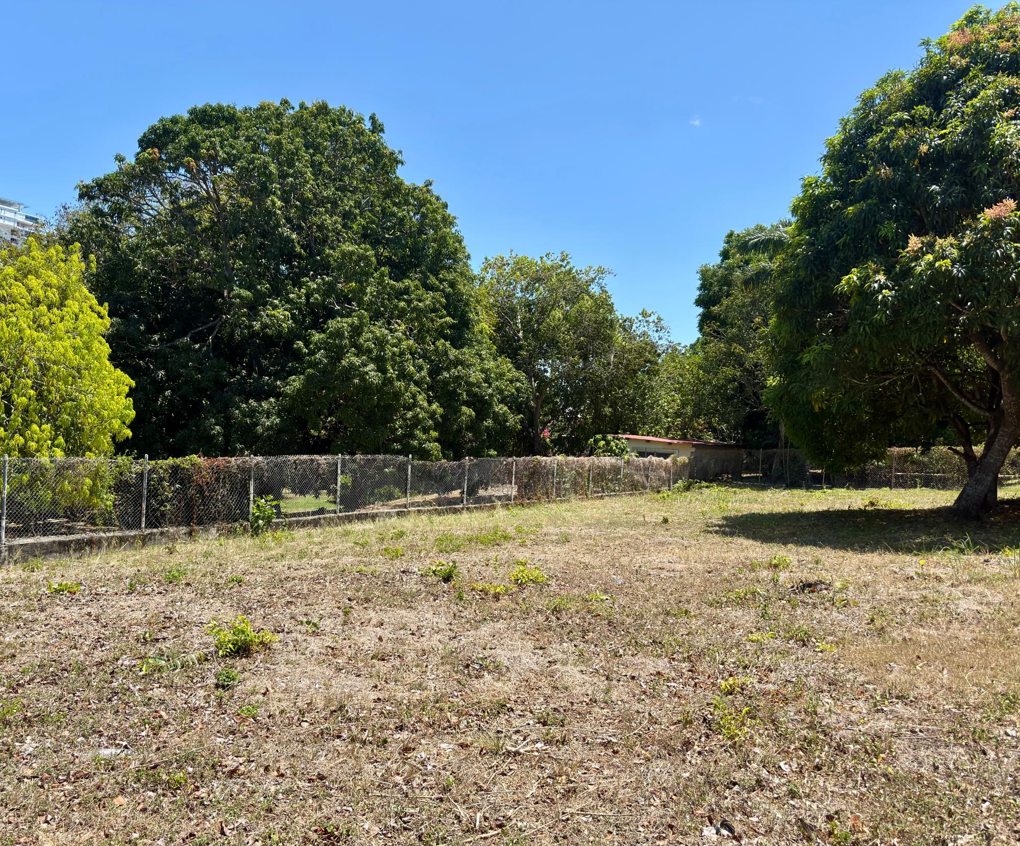 Flat, rectangular lot, 20m wide x 45m deep. 3 blocks from the beach.
