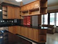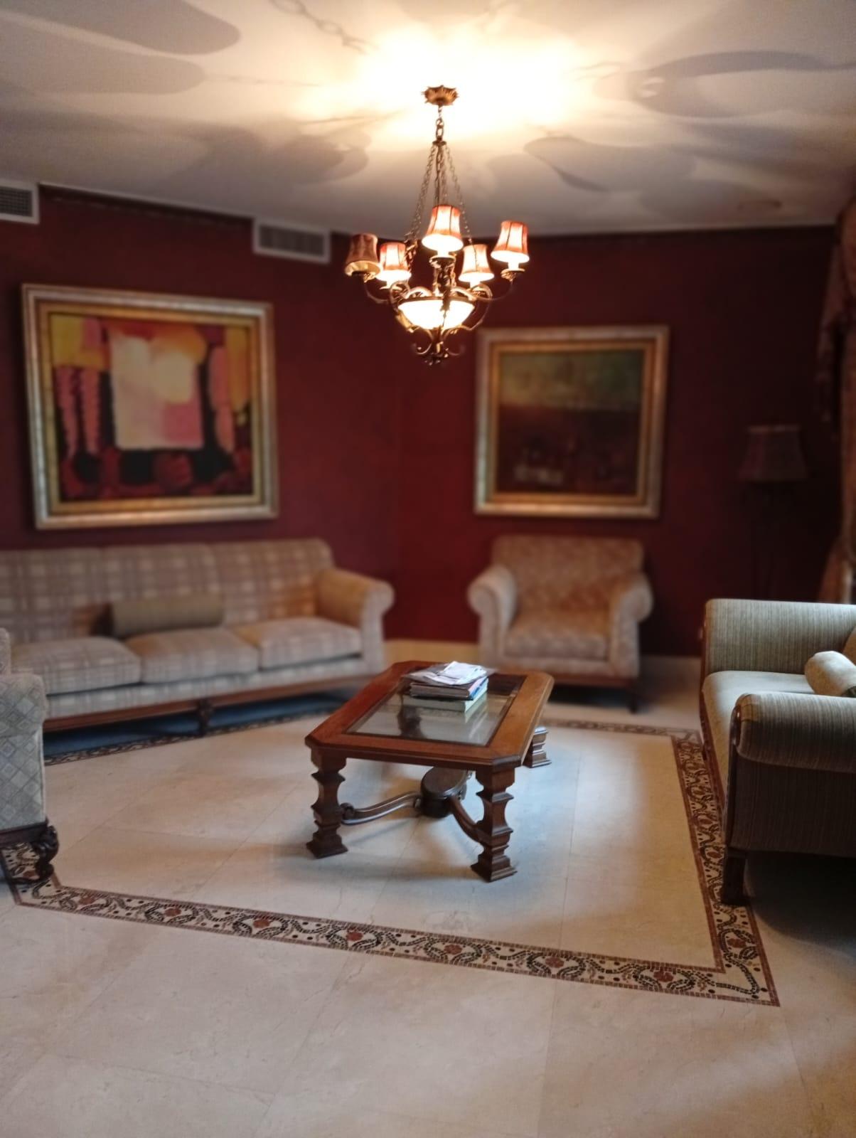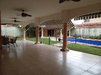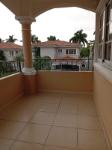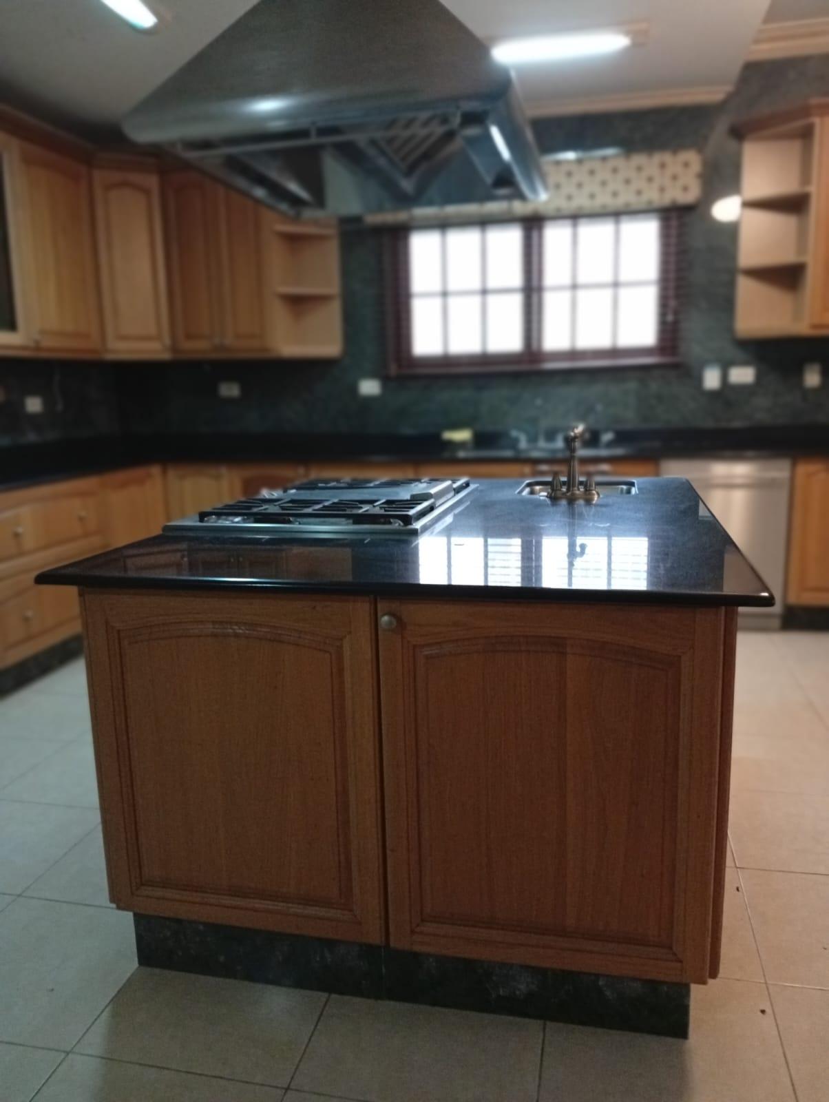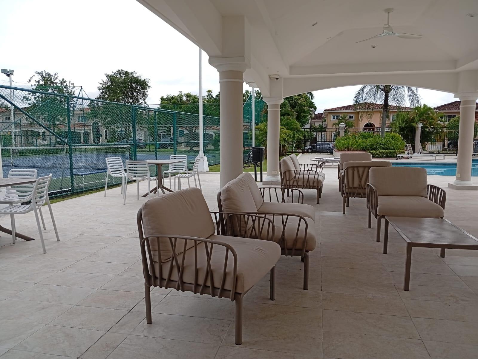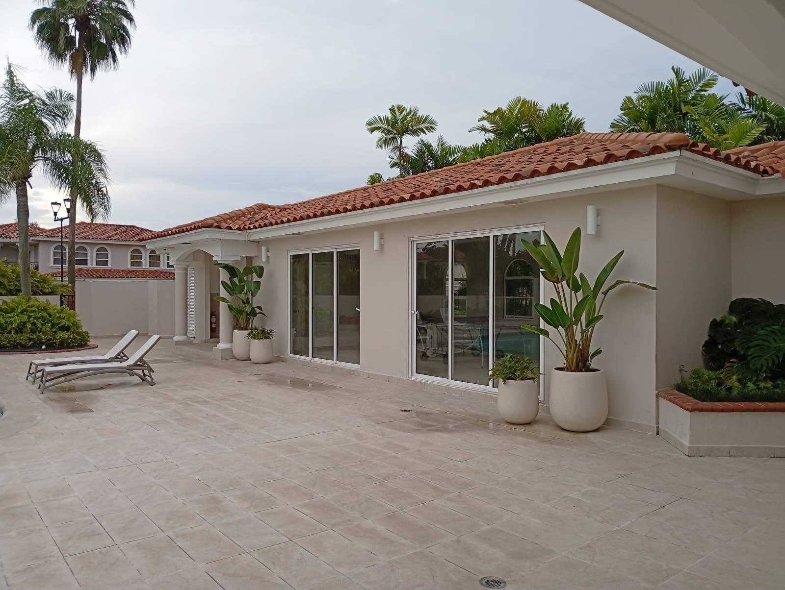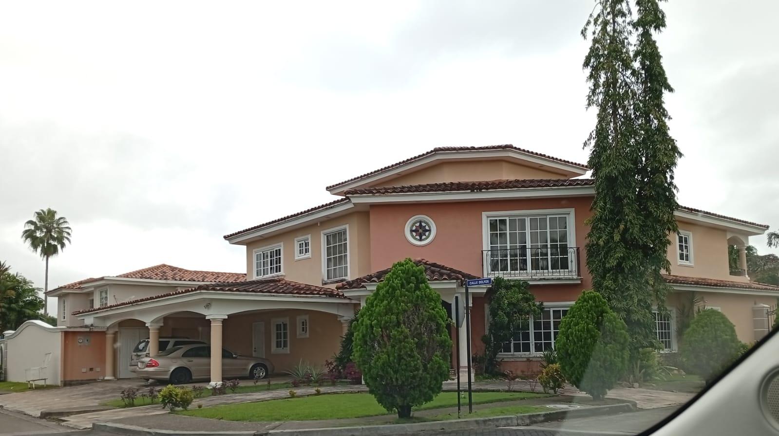 This three-level residence features a living and dining room, a spacious kitchen, a den/bar, a recreation area, five bedrooms, six bathrooms, a jacuzzi, a sauna, storage rooms, and a study. It is the only three-story home in this exclusive gated community. The property includes an indoor pool that requires maintenance. The community also offers a social area with soccer and basketball courts, a swimming pool, and a party area.