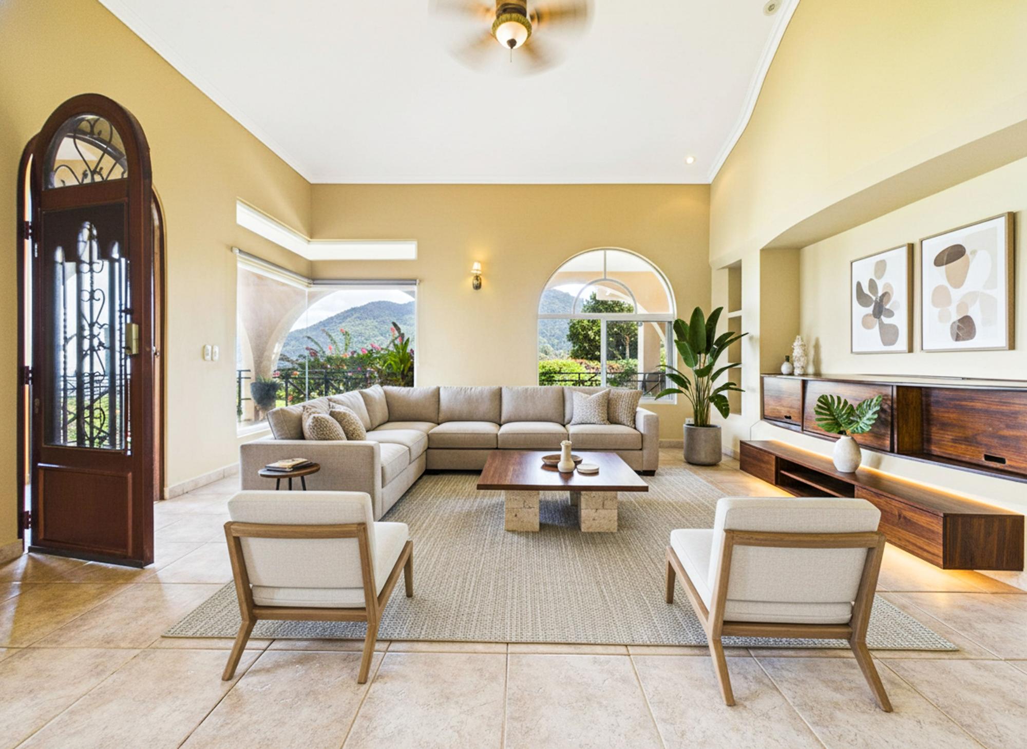 Casa en la cima de una colina en Sorá con impresionantes vistas a la montaña y al océano Pacífico. La propiedad cuenta con techos altos de 5,5 metros, una espaciosa sala de estar abierta, un porche que rodea la casa y un gran patio cubierto, ideal para disfrutar del aire libre y recibir invitados. Una suite privada para huéspedes con entrada independiente ofrece flexibilidad para visitas o para obtener ingresos por alquiler. La venta incluye un segundo lote completamente cercado, que brinda privacidad y potencial de expansión. Tranquilidad en la montaña a solo 30 minutos de Coronado.